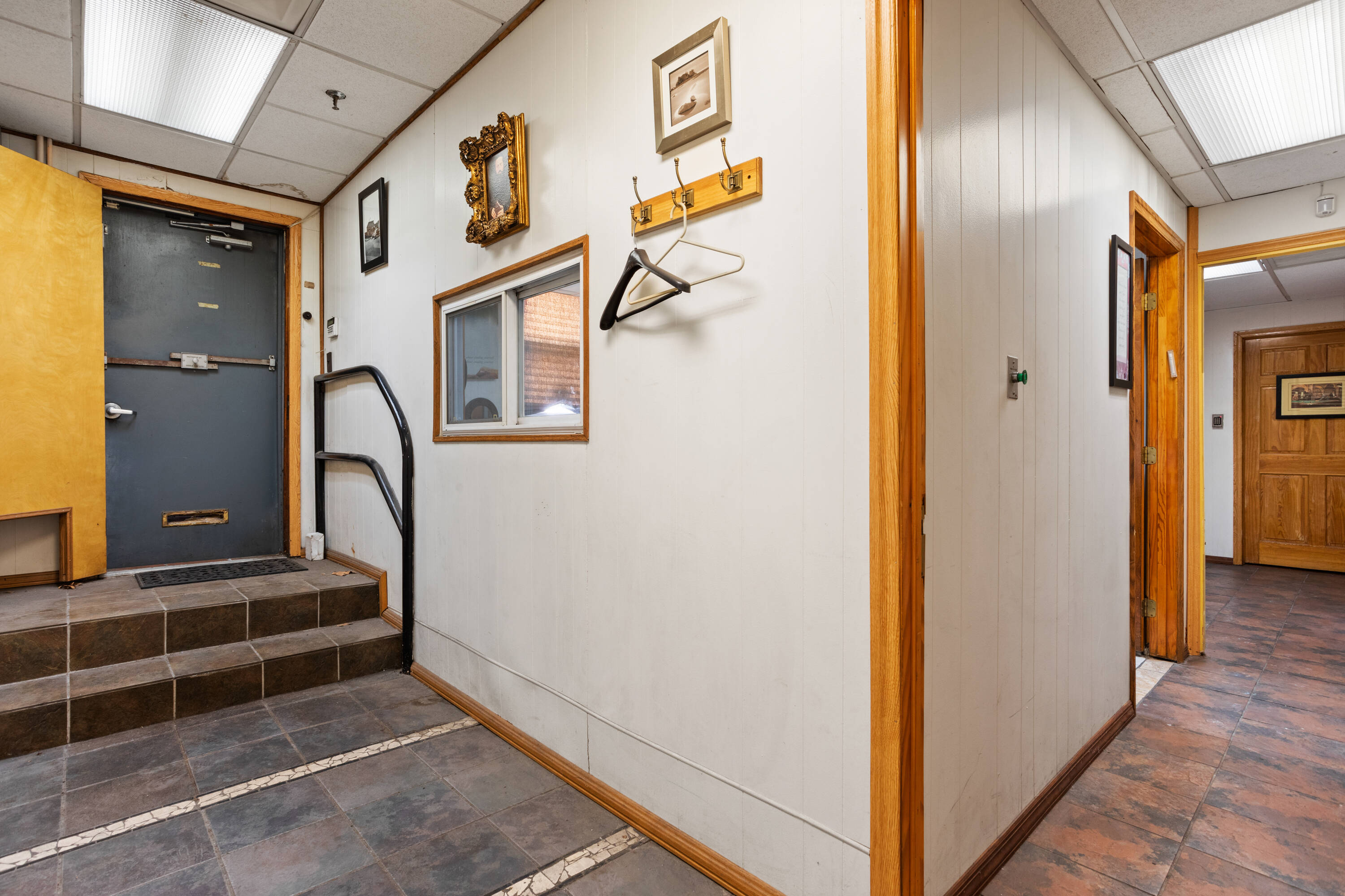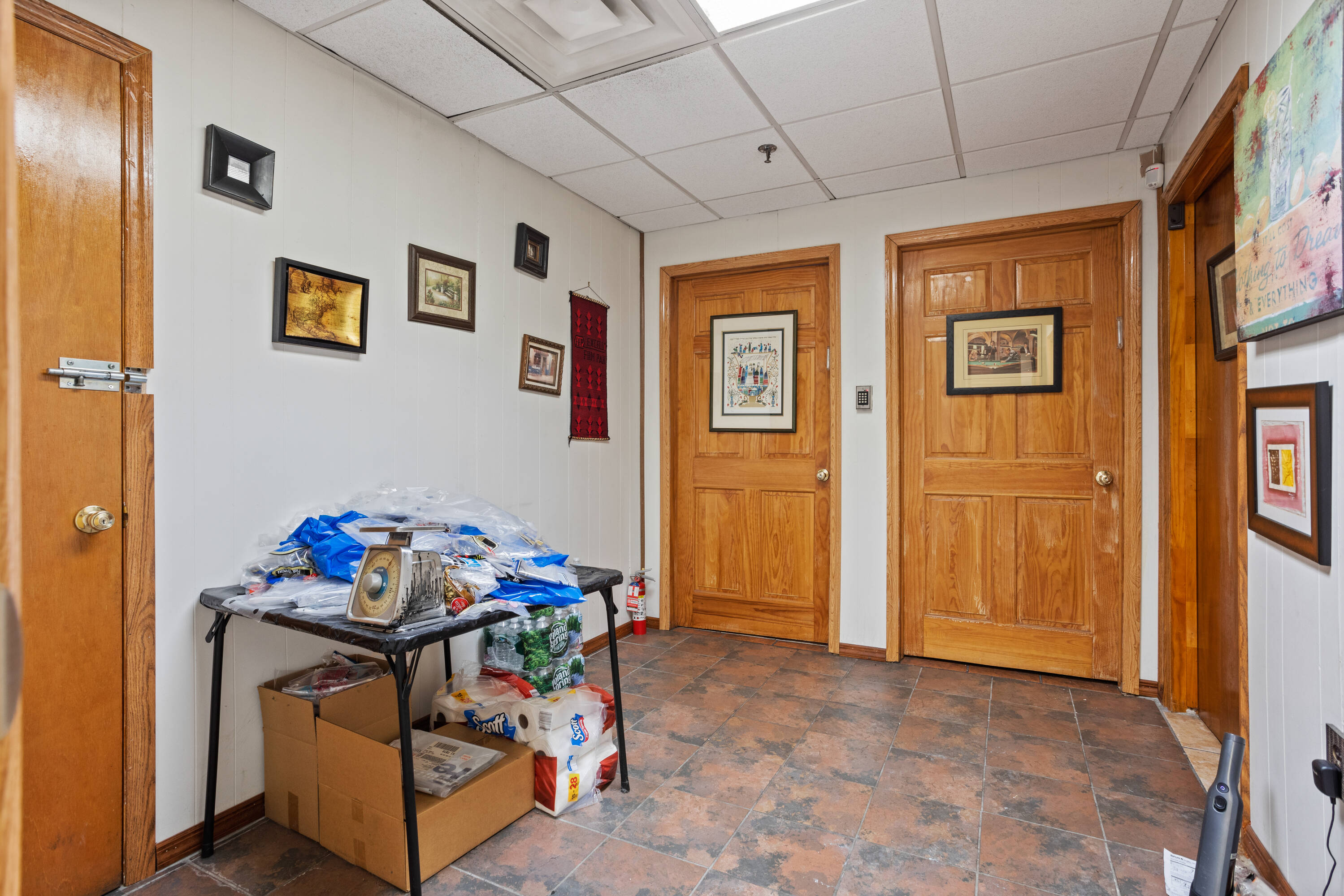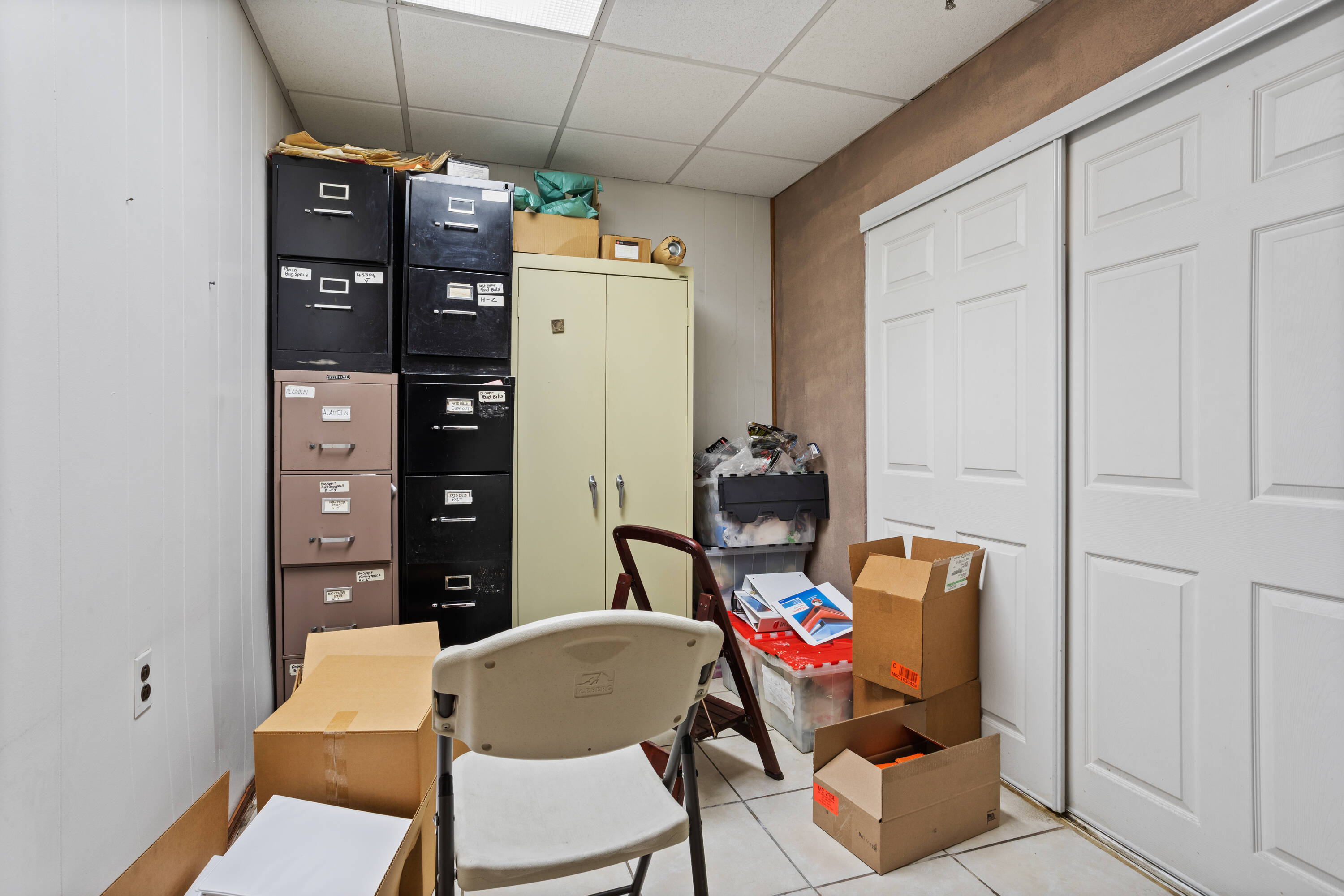 Flex space with loading dock, parking, and private offices.