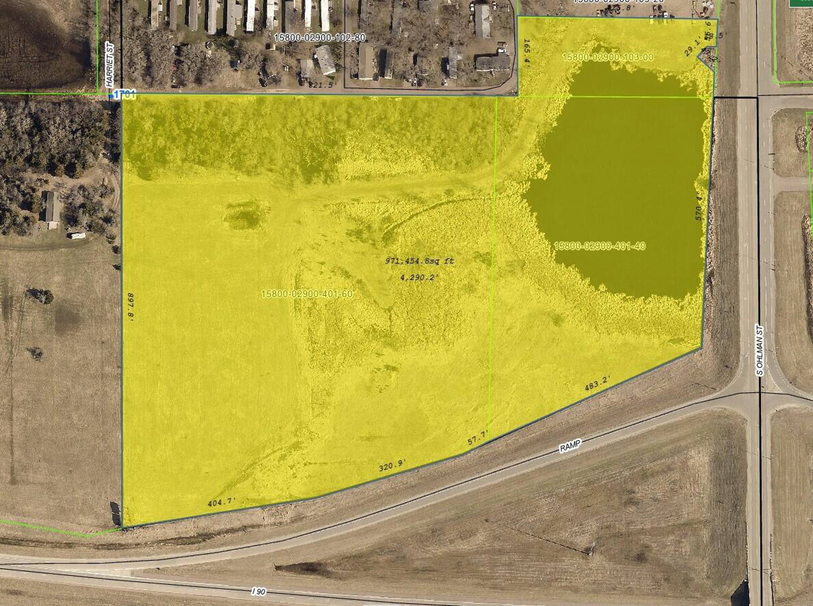 This property features: Huge 22+ acre commercial development site with I‑90 visibility.; Located at the NW corner of Exit 330 of I‑90 & Hwy 37 (S Ohlman St) in Mitchell.; High traffic volume: 3.7 million vehicles per year on I‑90.