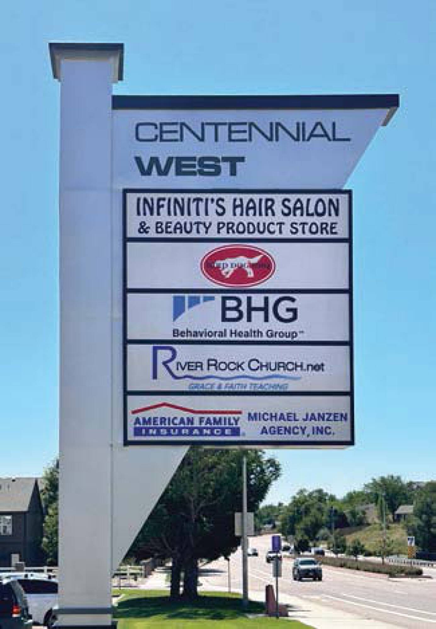 Retail spaces available for lease on Centennial Boulevard.