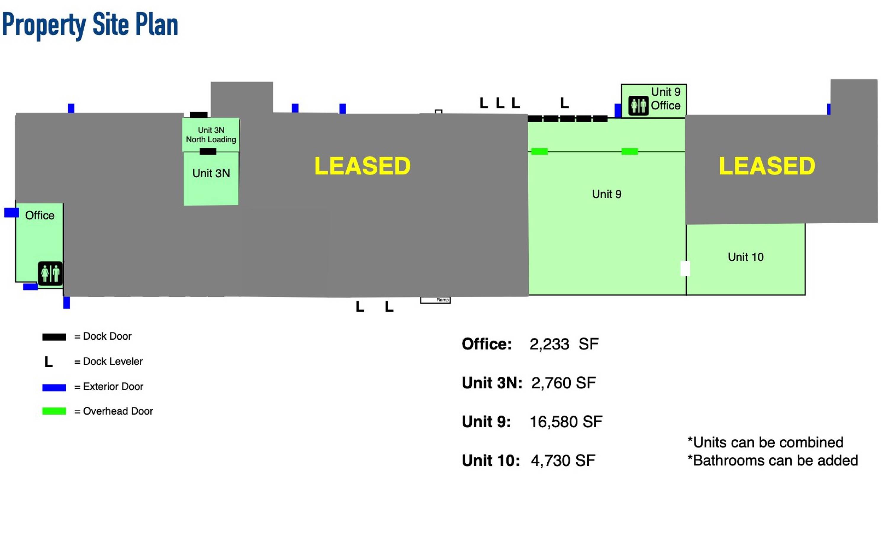 Industrial warehouse space for lease with multiple options.