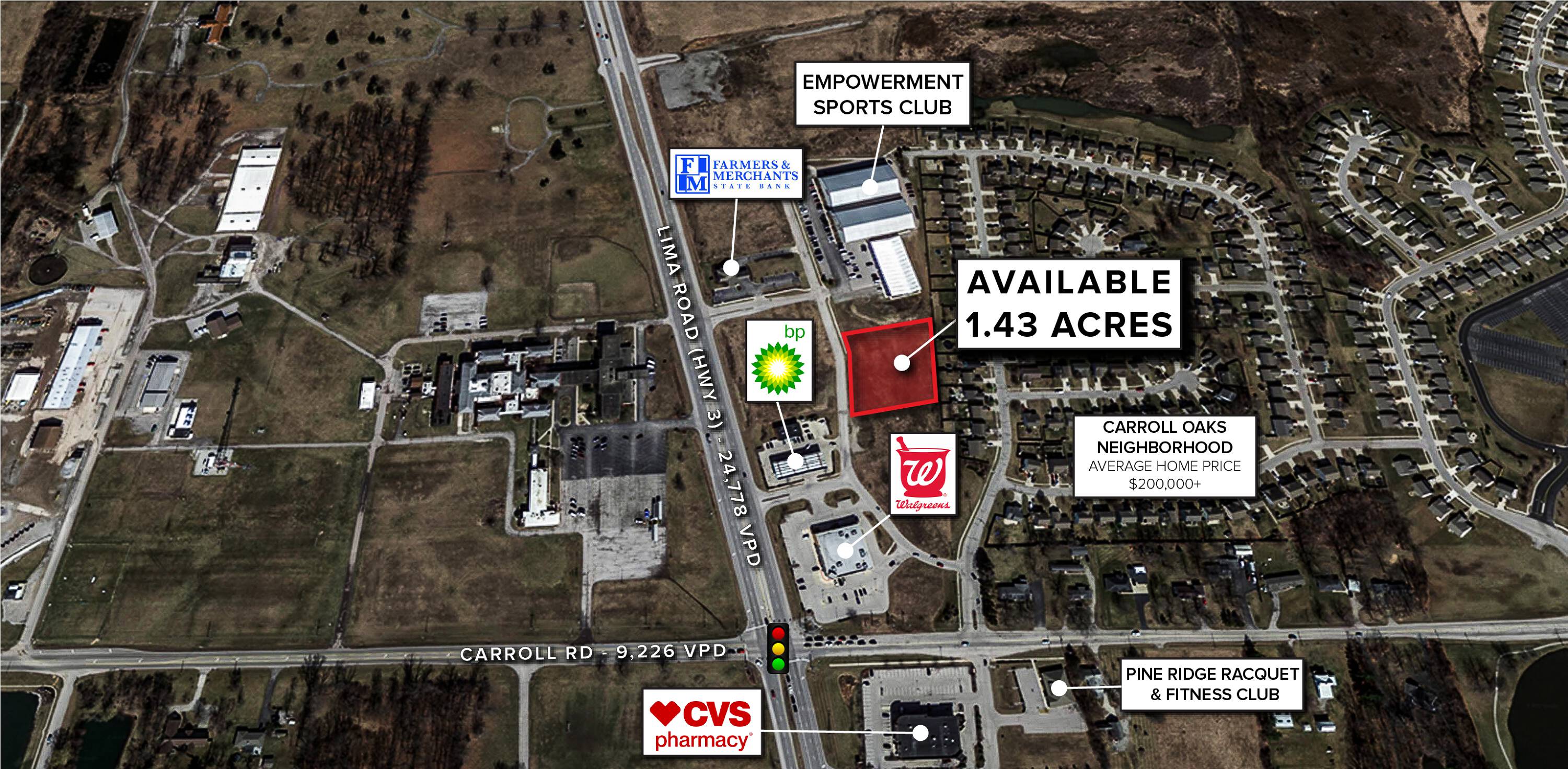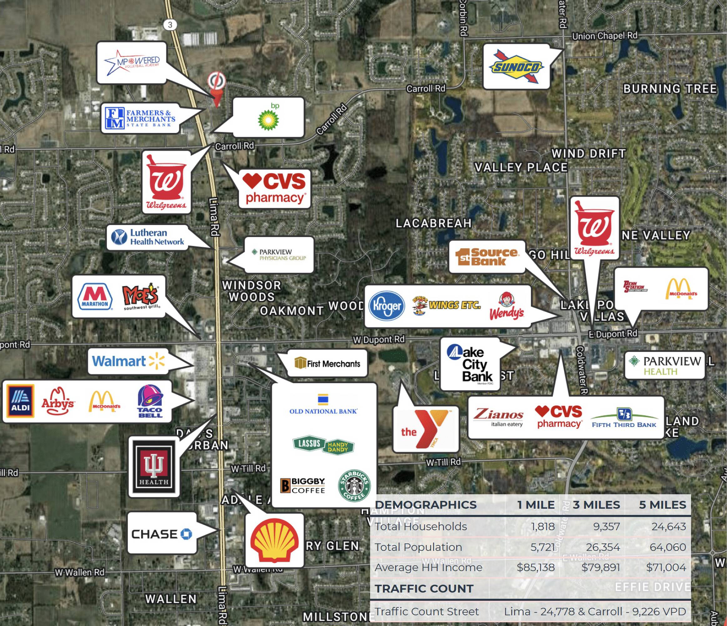 This property features: High traffic volume on Lima Road with 24,778 vehicles per day.; Proximity to Carroll Road intersection with 9,226 vehicles per day.; Located in a rapidly developing area of Fort Wayne.