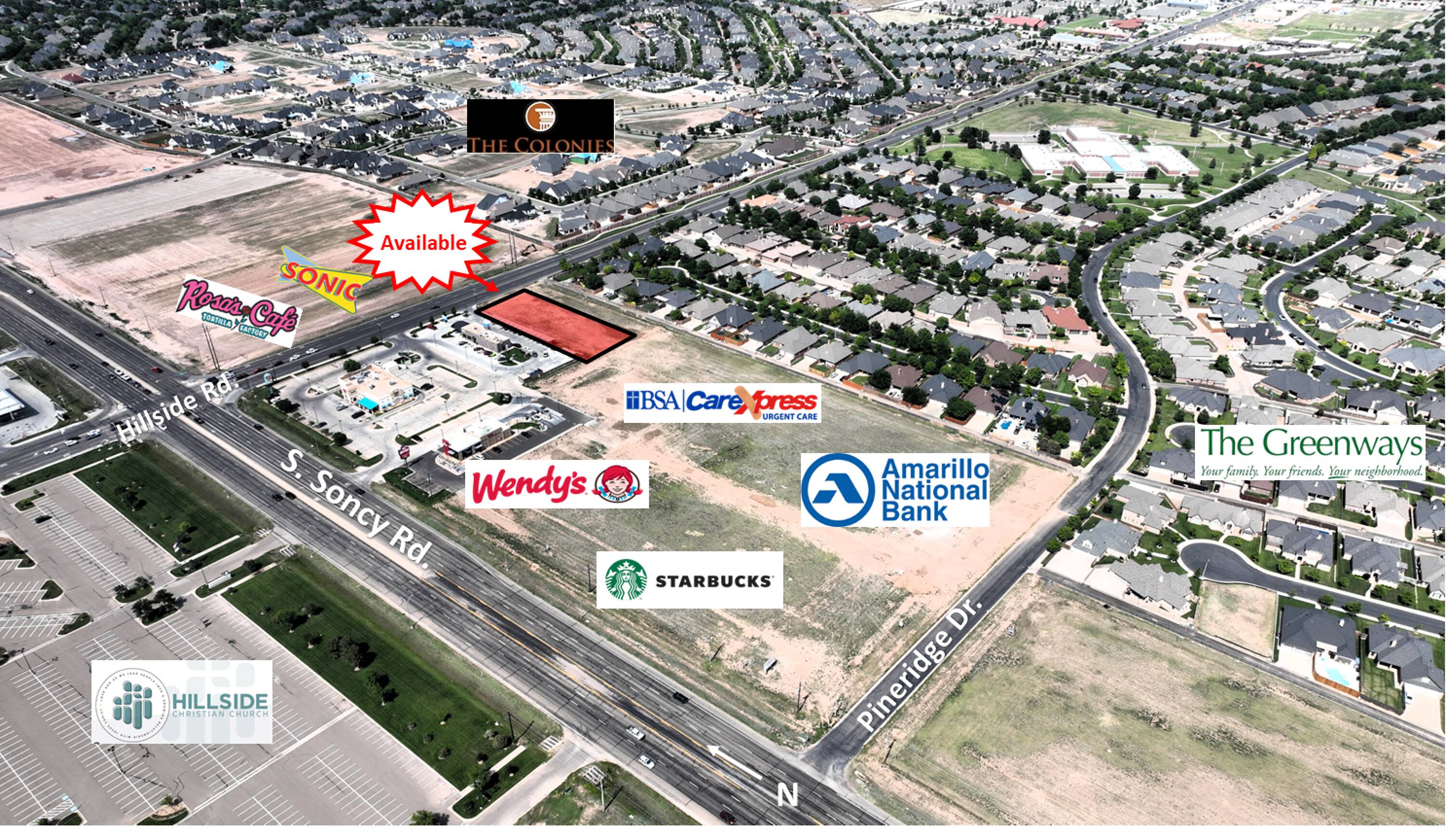Commercial land available for retail development.