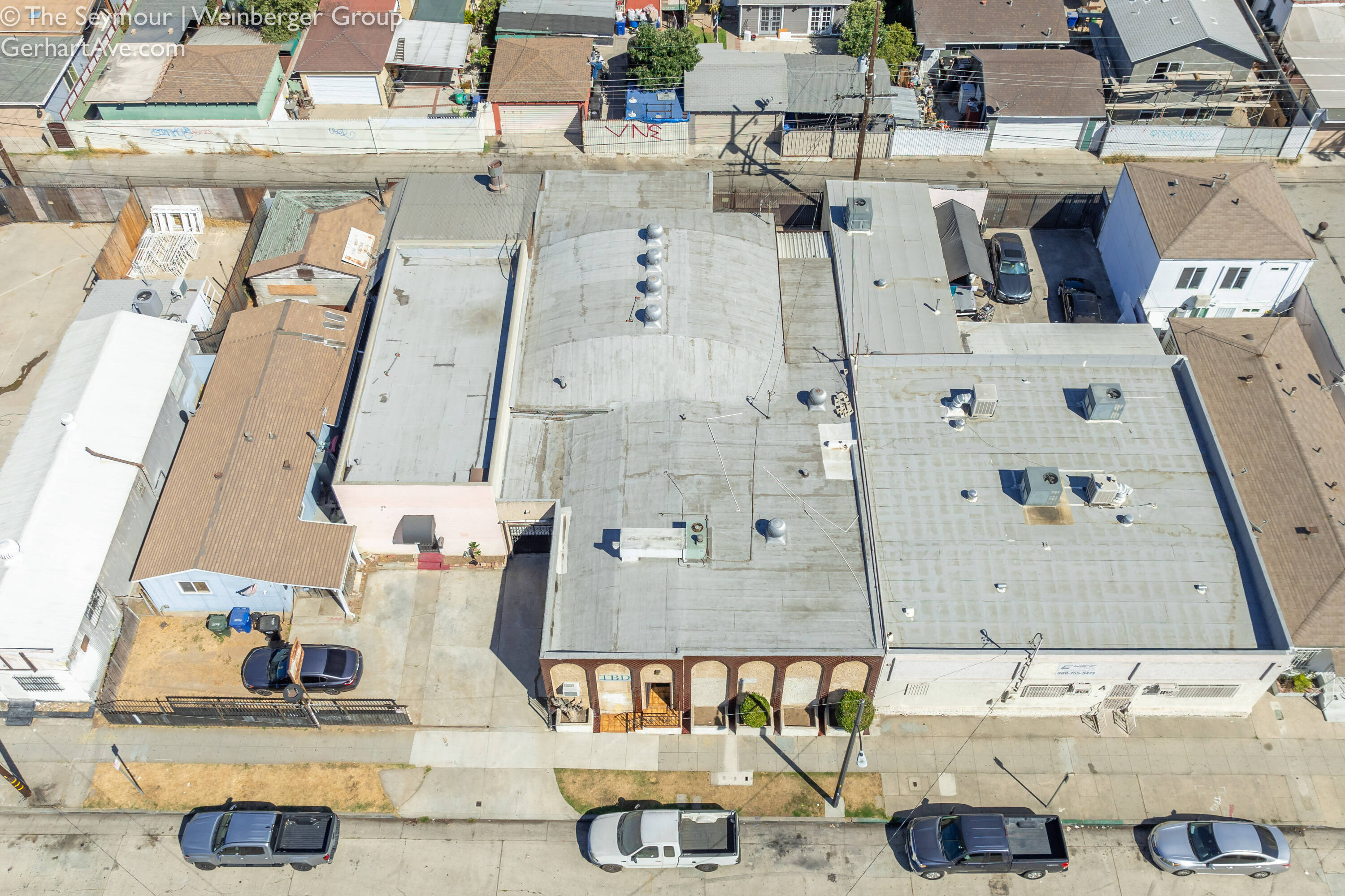 Freestanding industrial building in Commerce, CA, suitable for manufacturing.