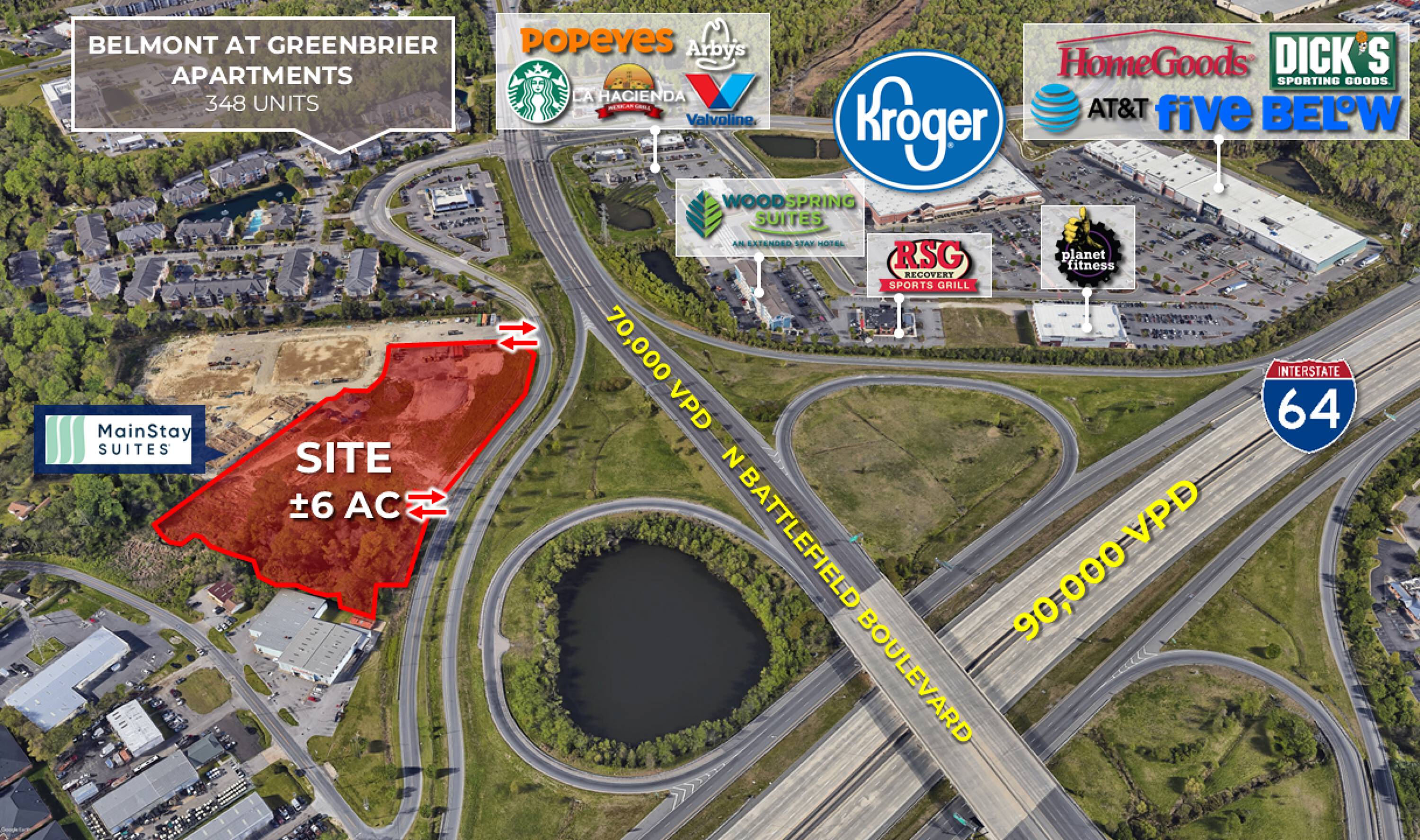 Approximately 6 acres of land available for development in Chesapeake.
