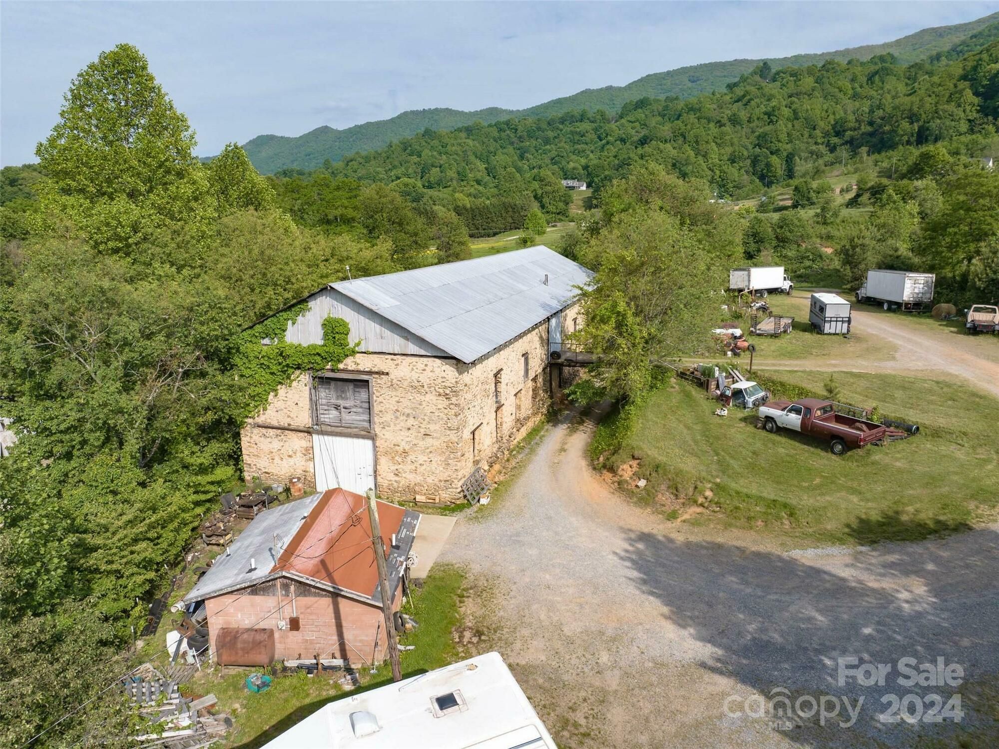 This property features: Large 9,600+ sqft historic 1918 stone building.; 3.99 acres of land with development potential.; Detached 576 sqft workshop/residential building.