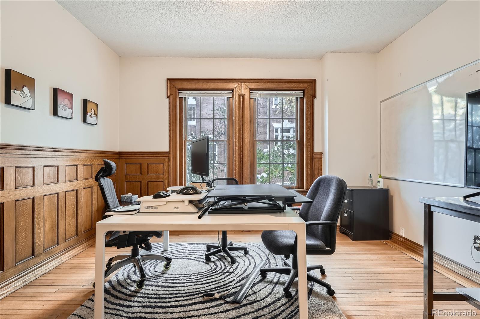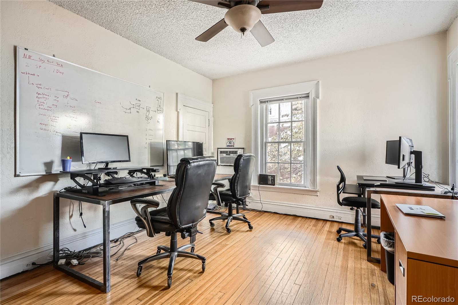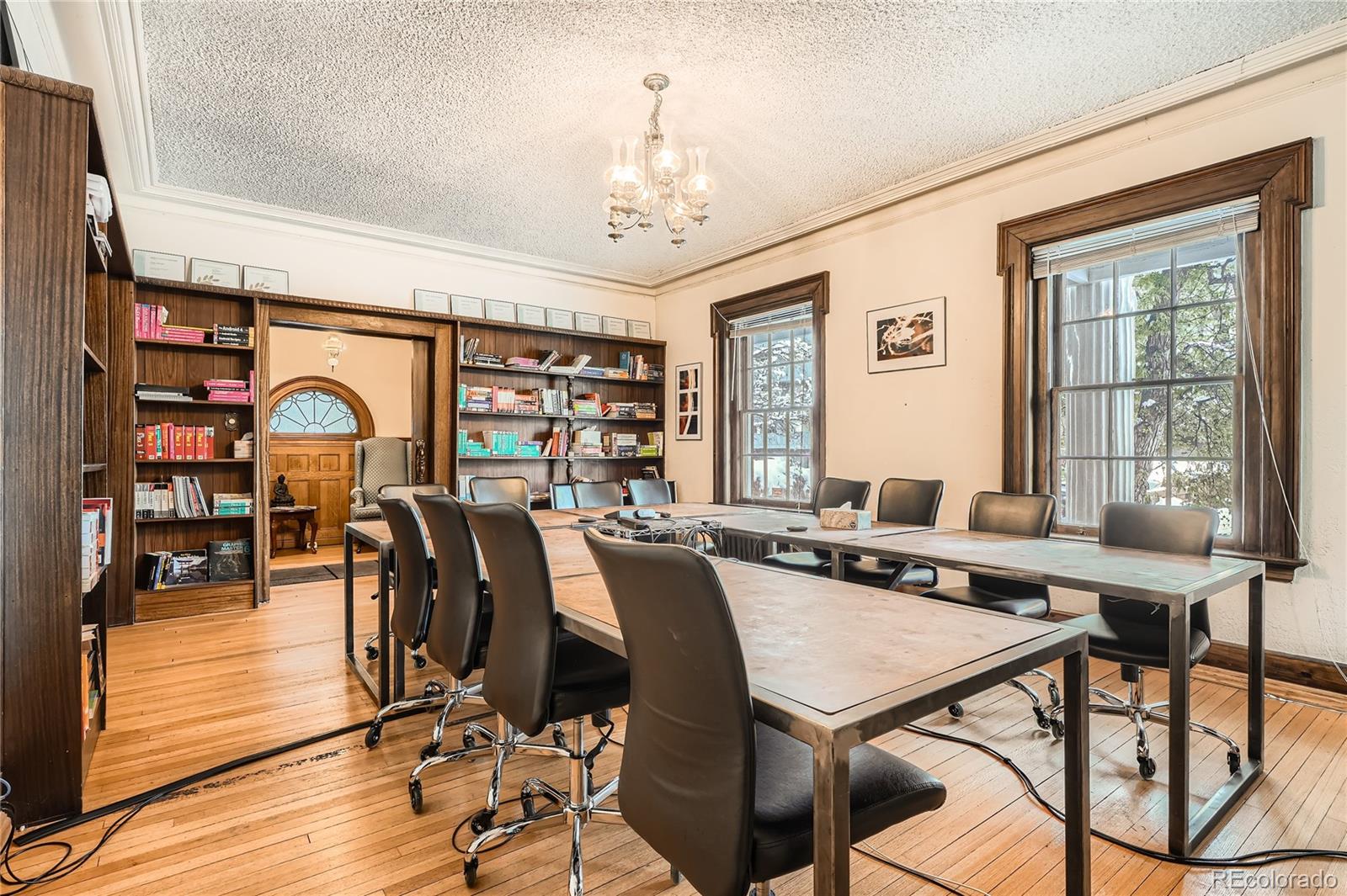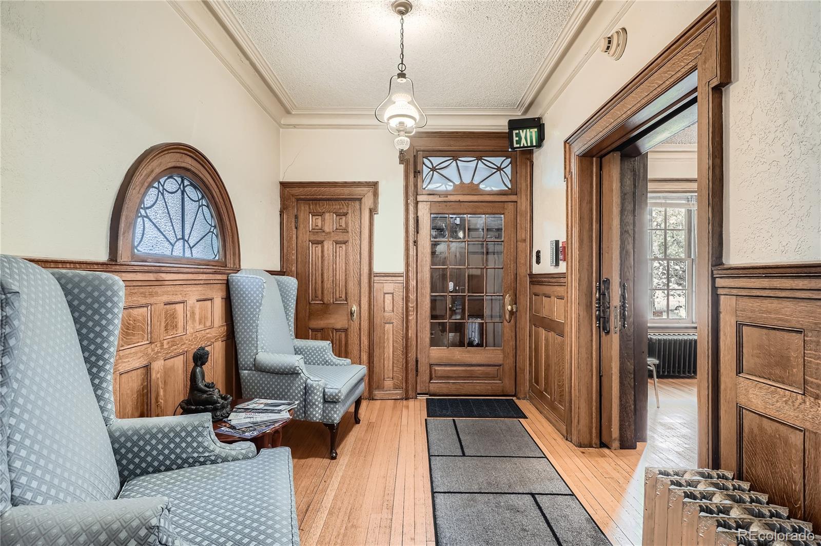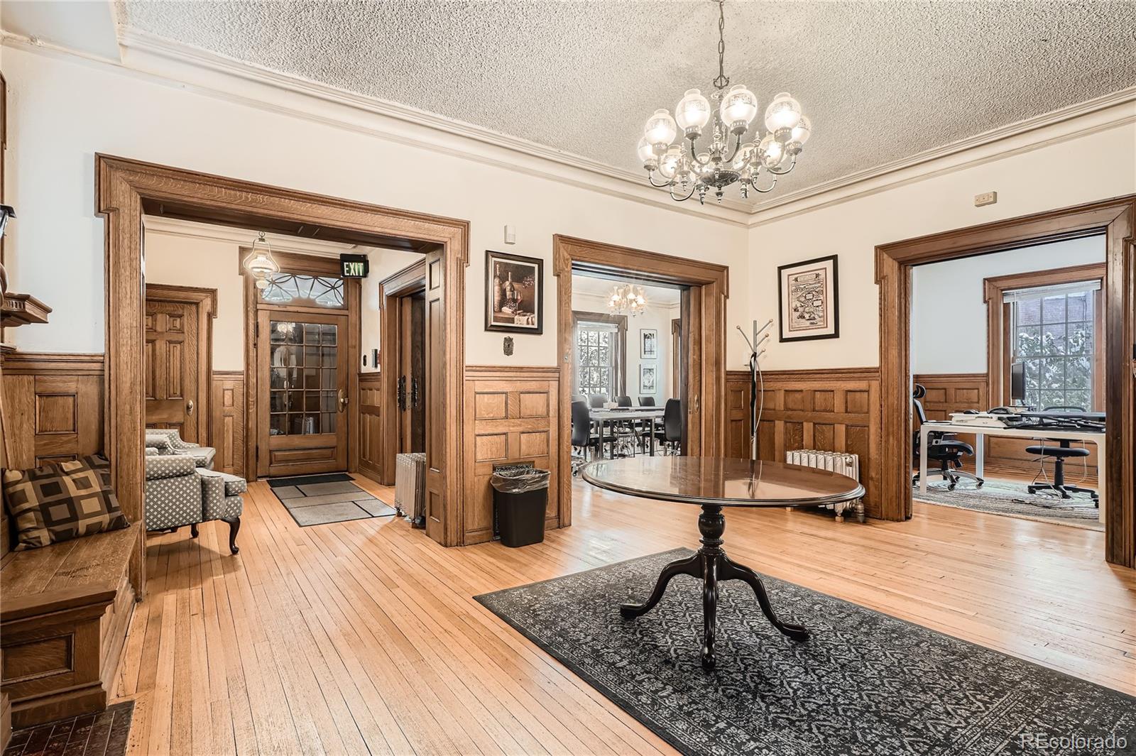 Historic office building with original finish, suitable for various uses.