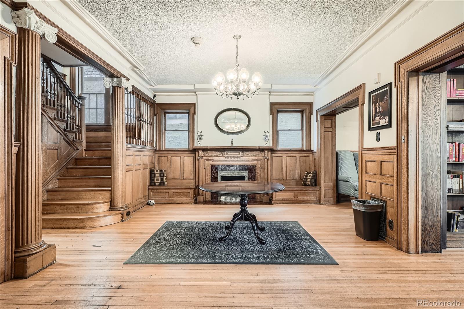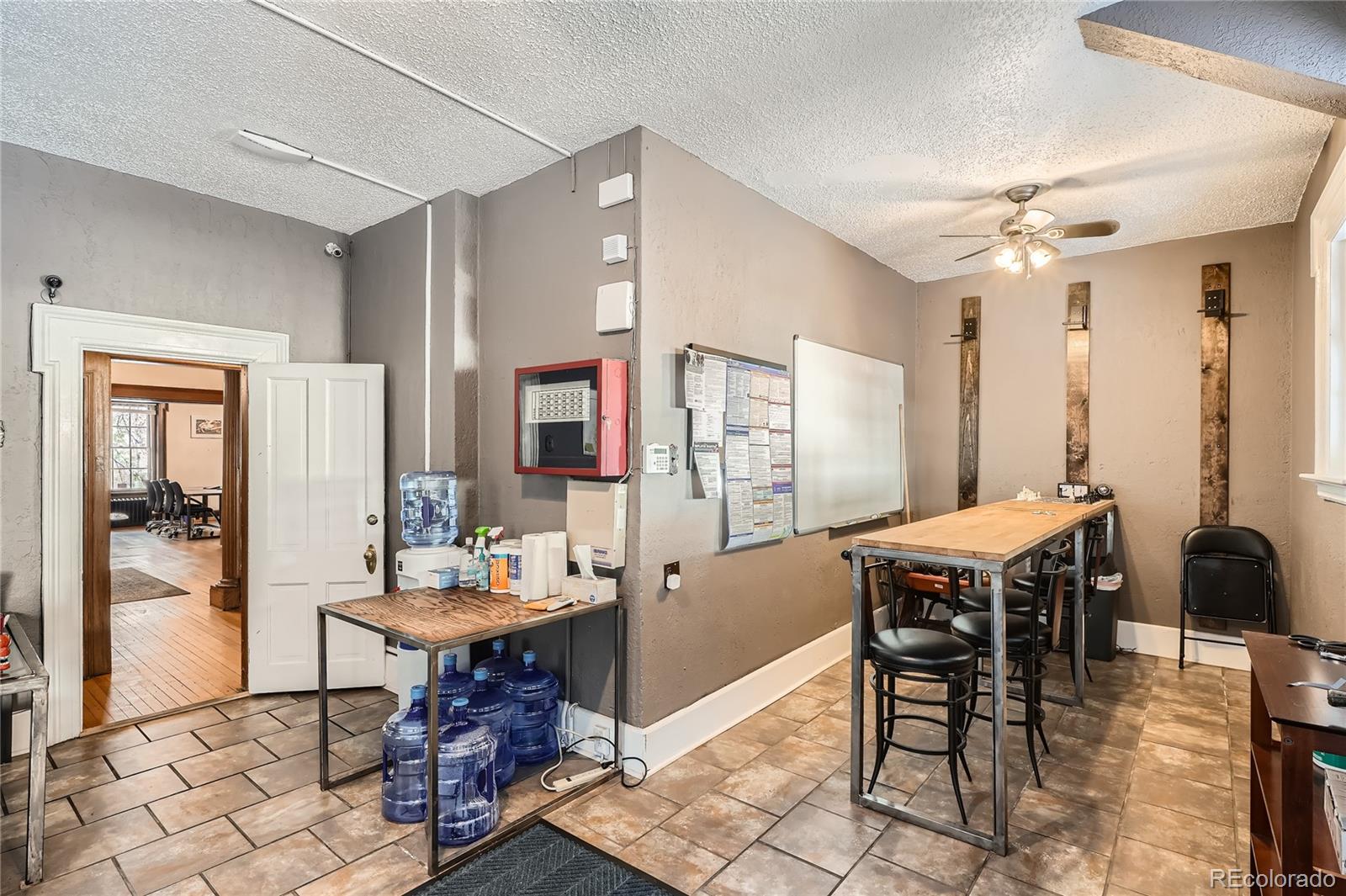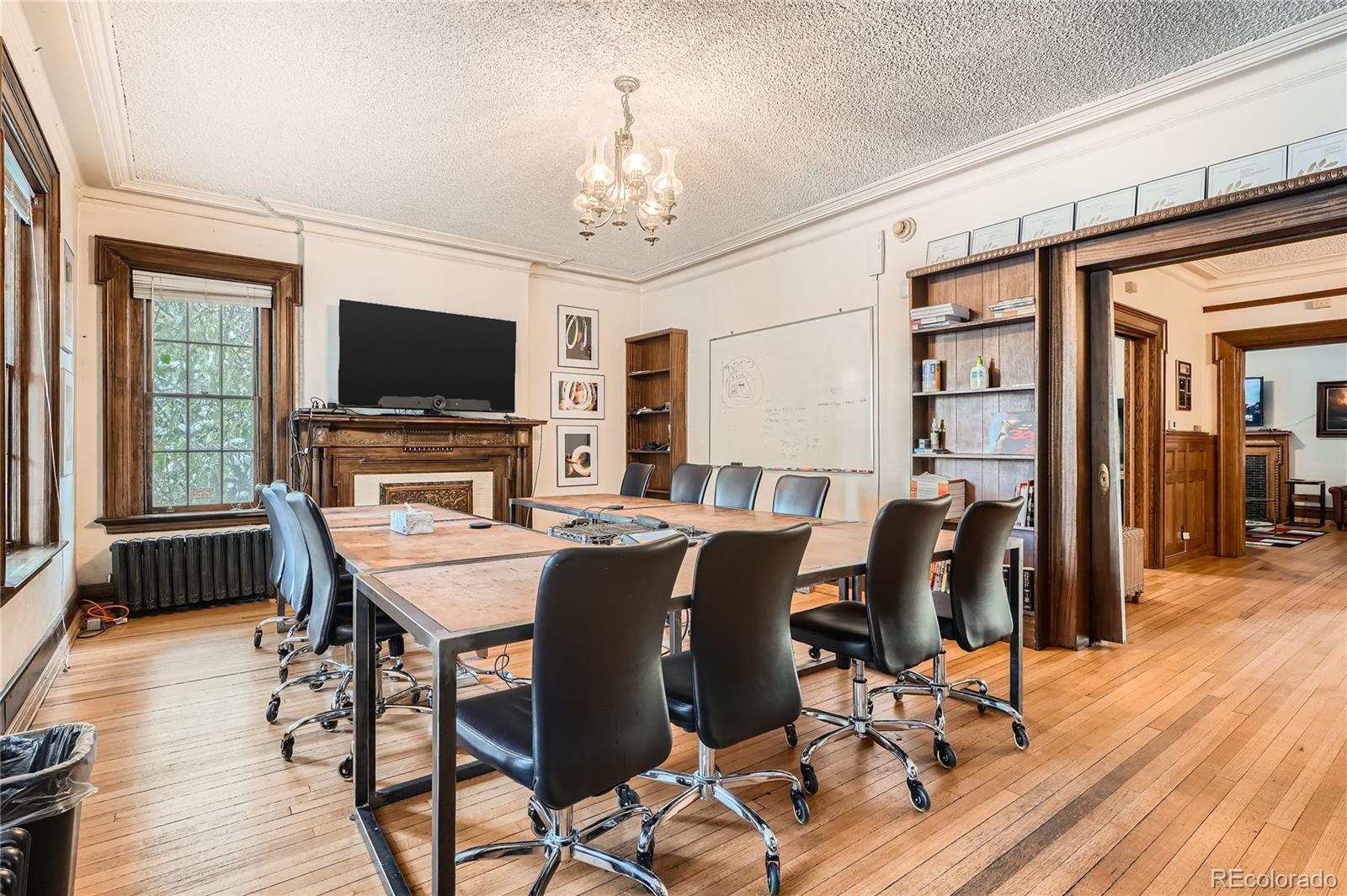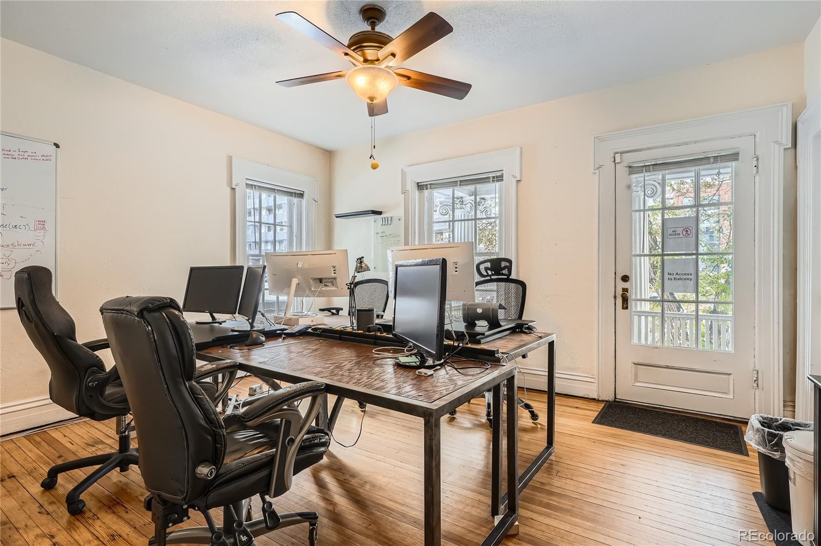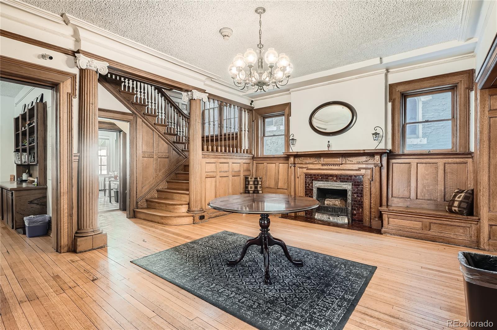 Historic office building with original finish, suitable for various uses.
