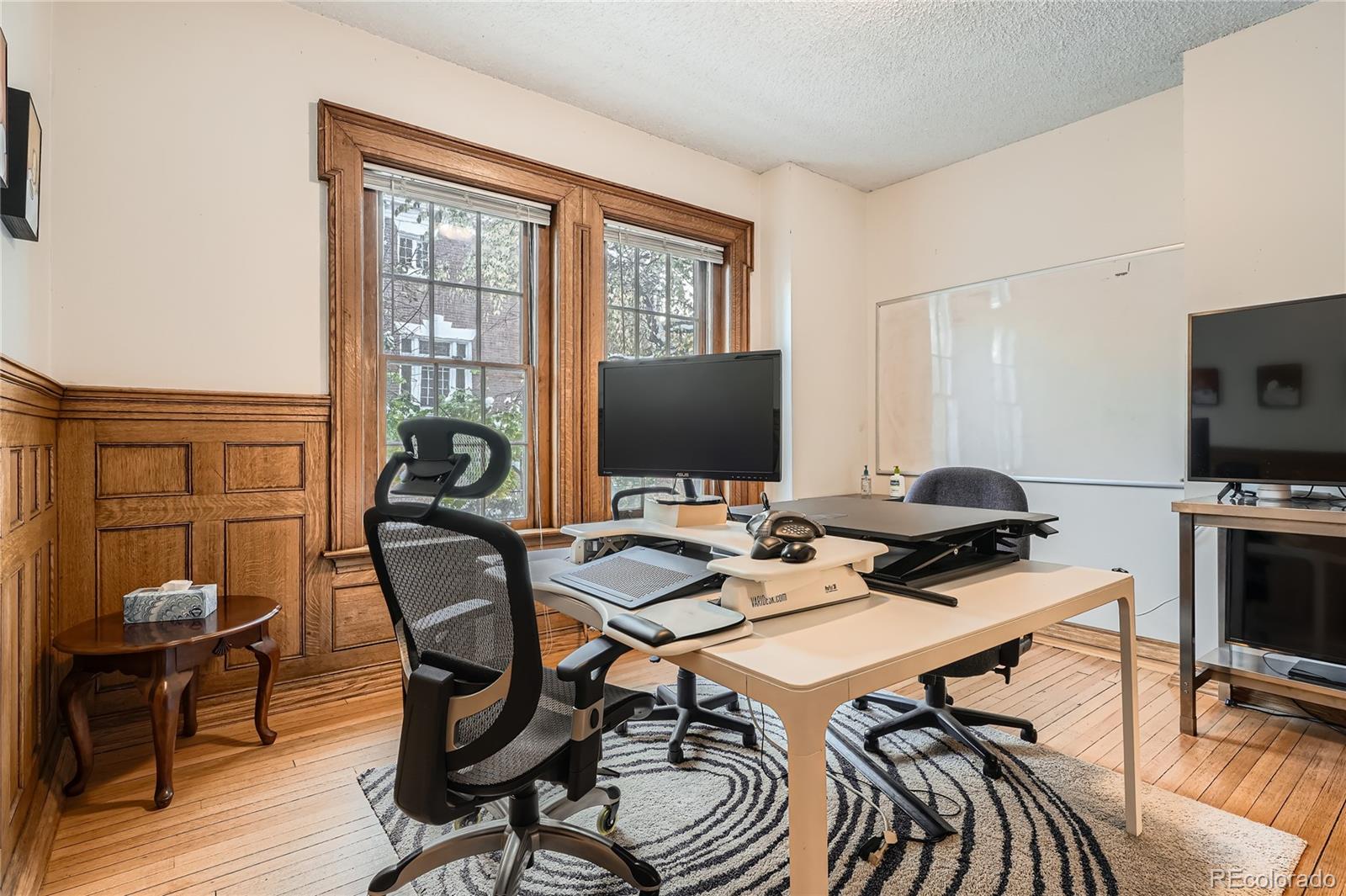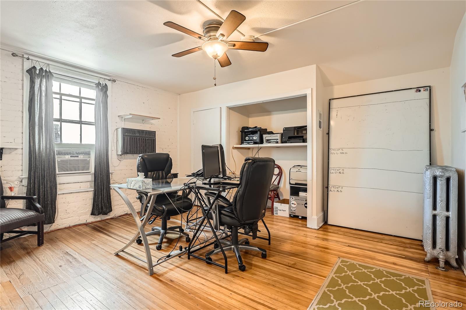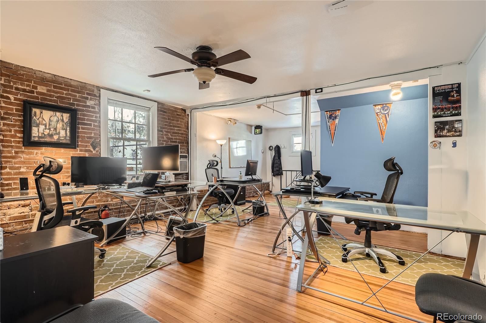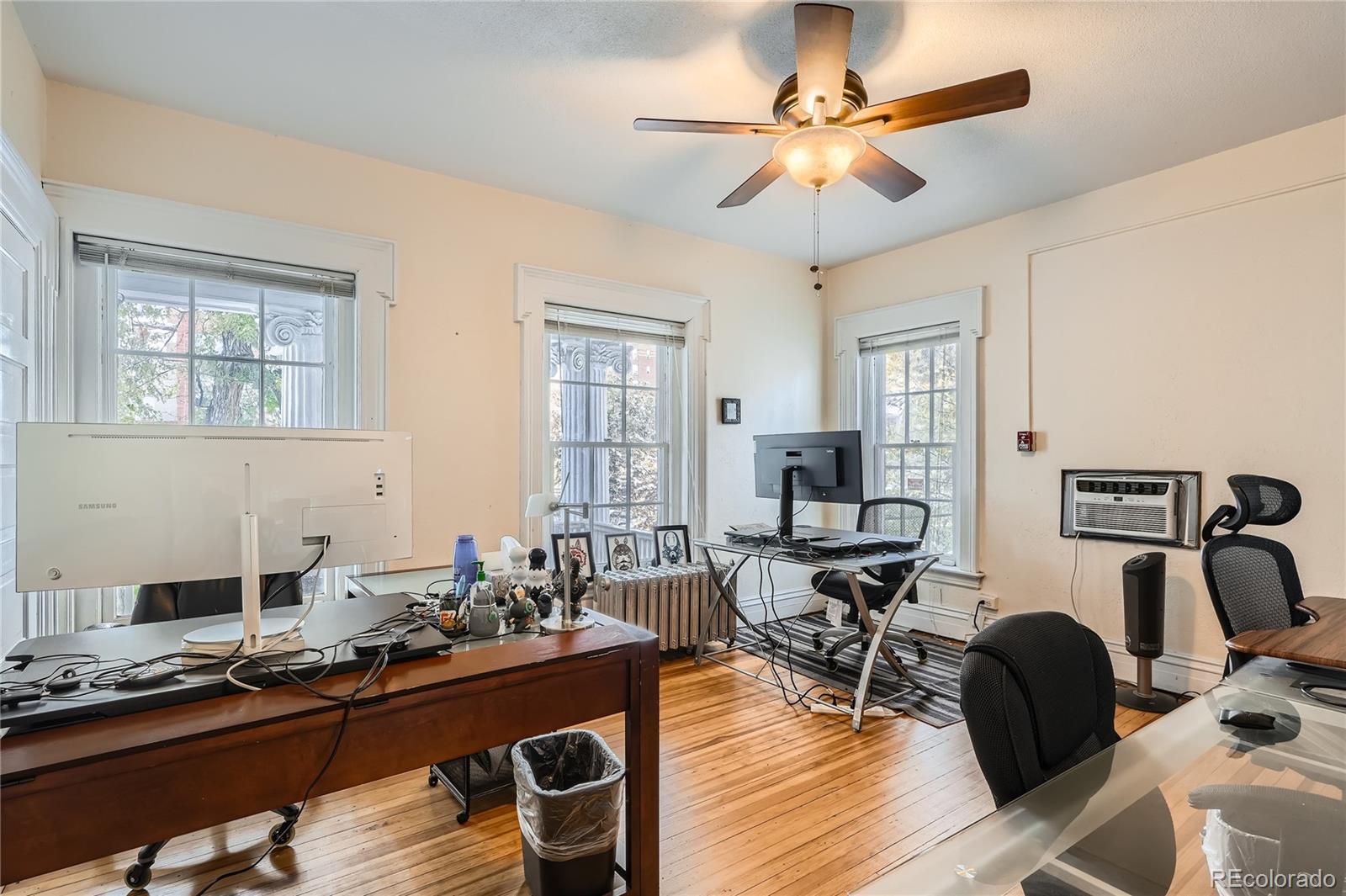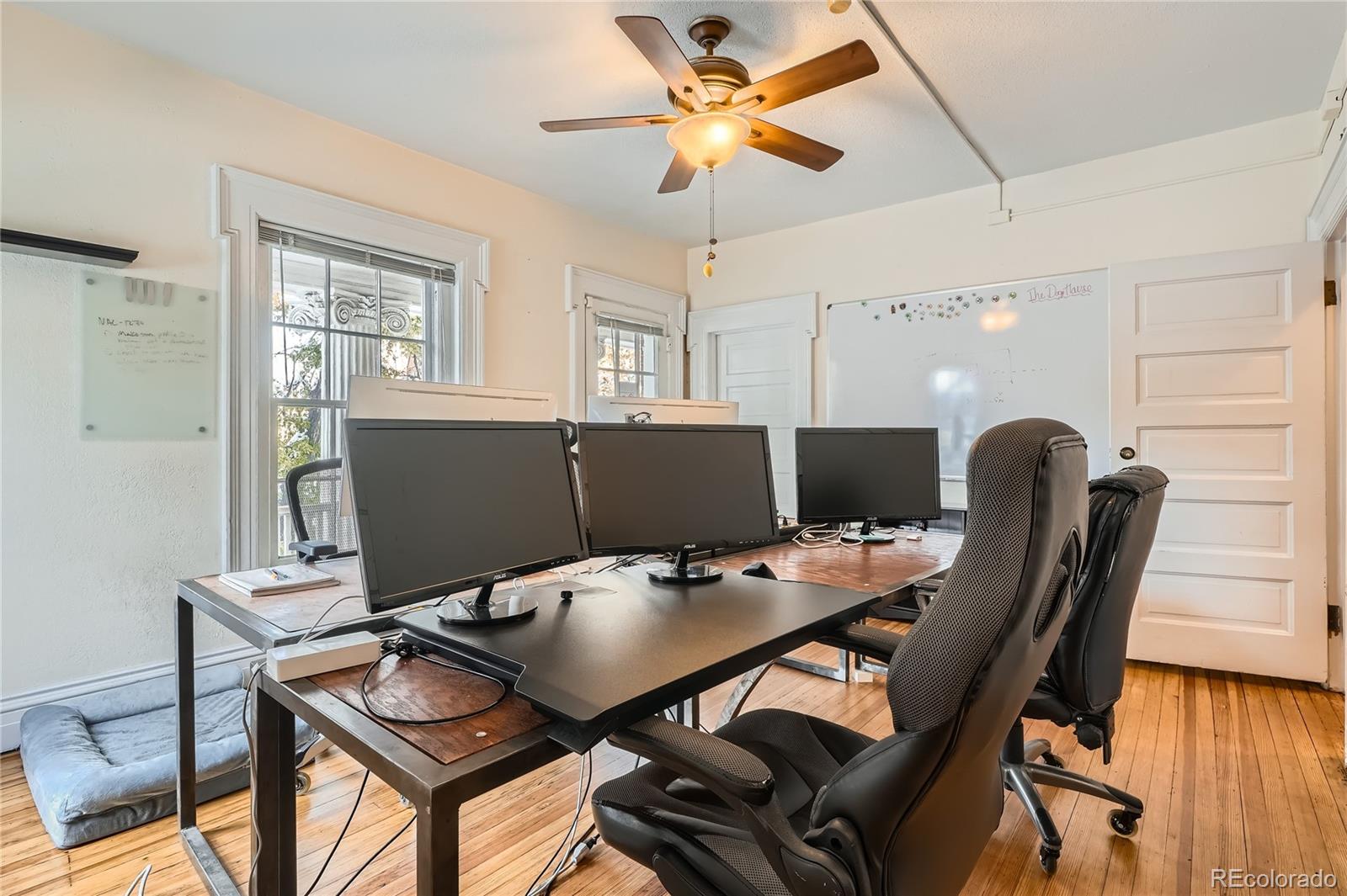 Historic office building with original finish, suitable for various uses.