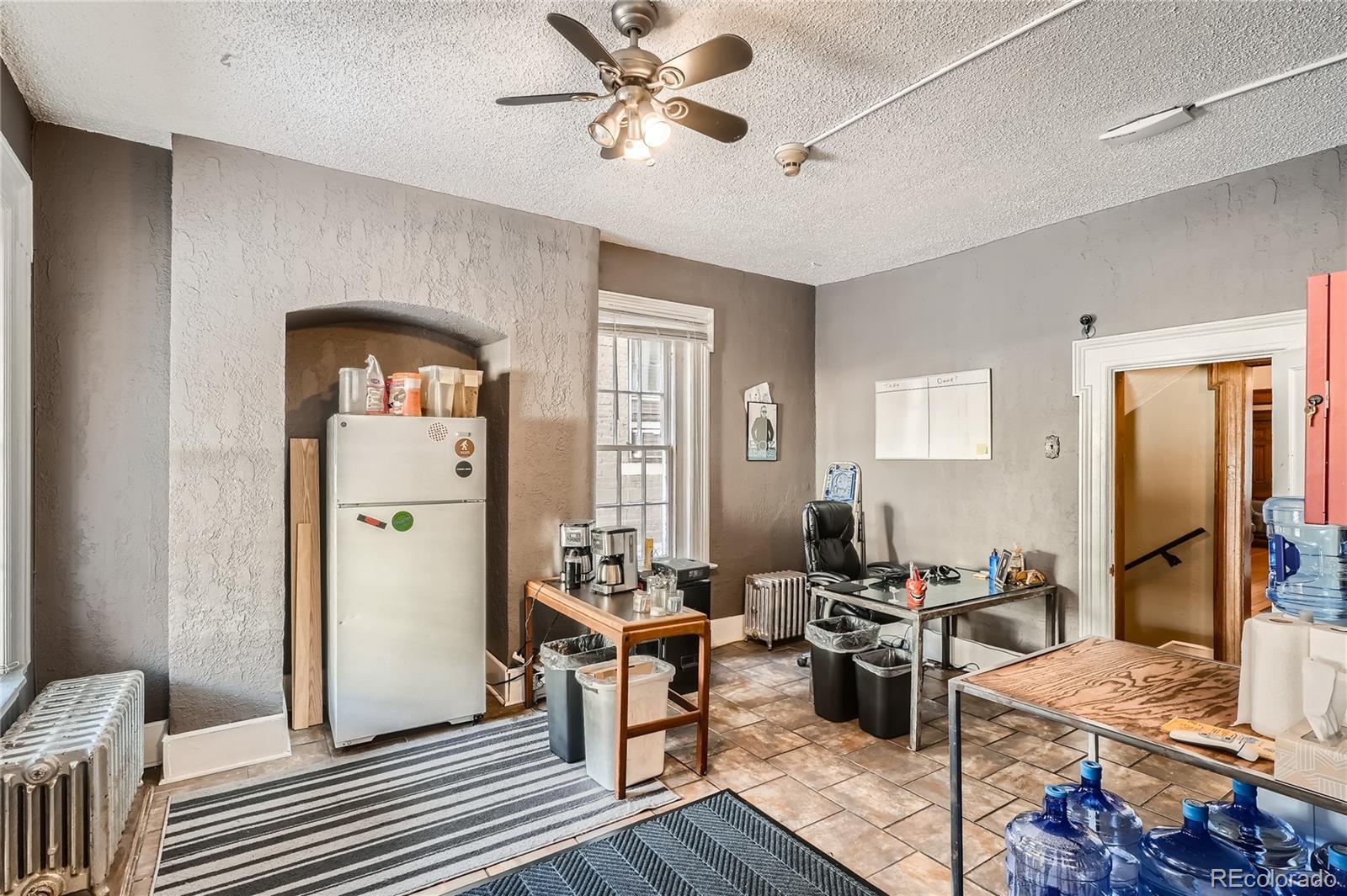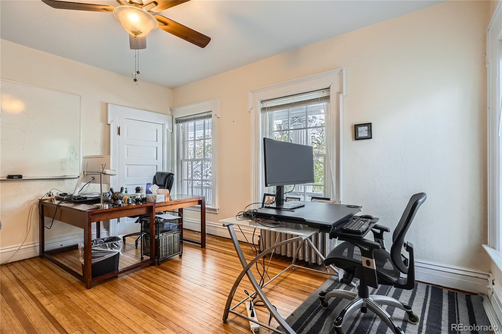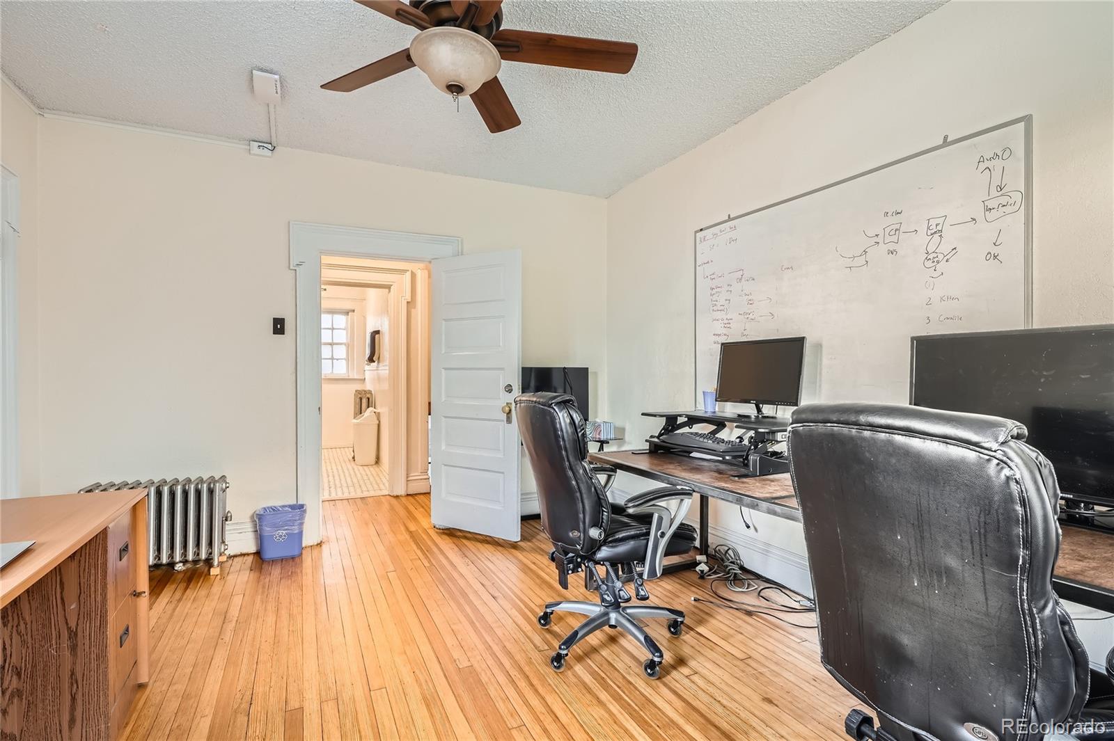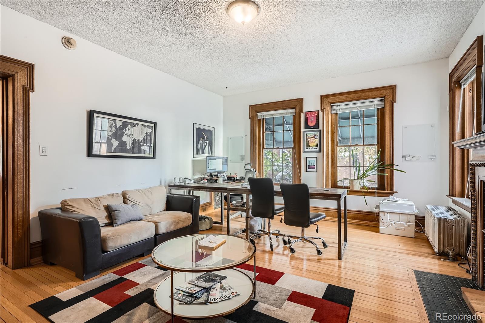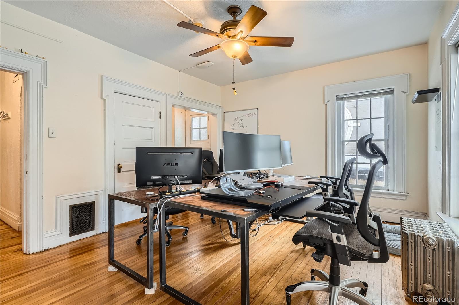 Historic office building with original finish, suitable for various uses.