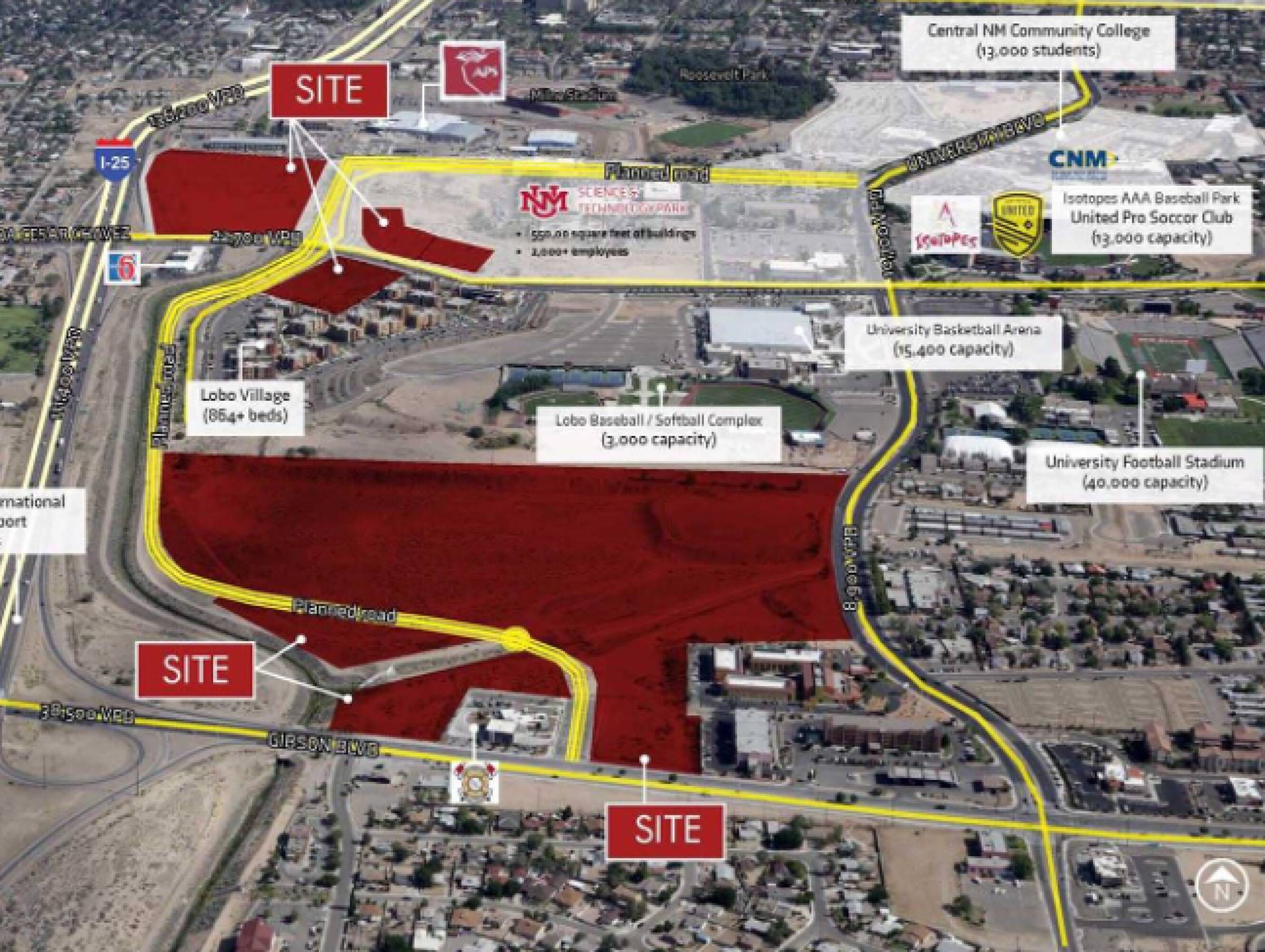Land parcels available for purchase near the University of New Mexico.