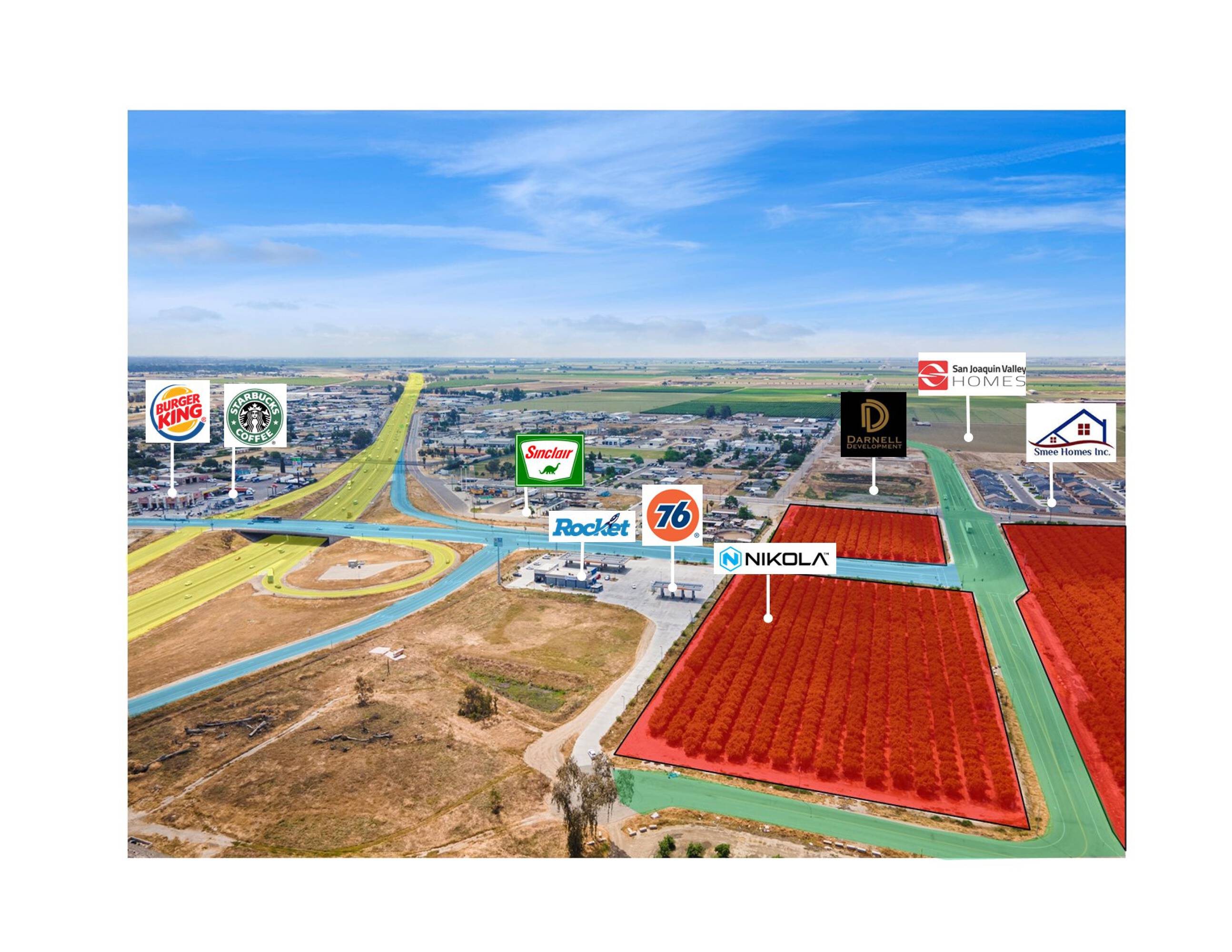 This property features: High‑traffic location at Highway 99 and Betty Drive interchange, with approximately 163,722 cars per day.; Shovel‑ready development land with existing utility improvements (water, power, gas) and curb/gutter.; Flexible zoning allowing for a variety of commercial uses.