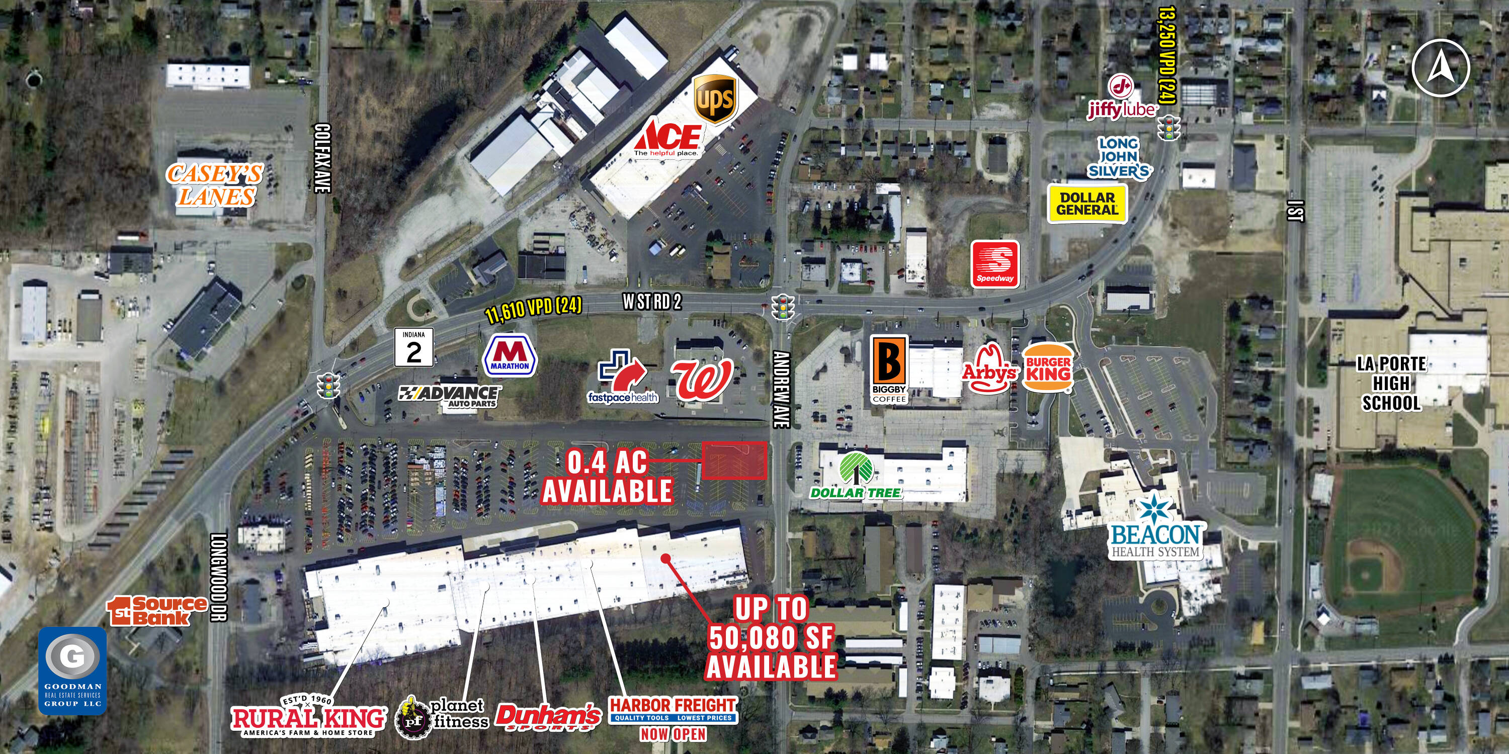 This property features: Anchored by major retailers including Rural King, Dunham’s Sports, Planet Fitness, and Harbor Freight.; Redeveloped and remodeled in 2020 with significant upgrades.; High traffic location with over 11,000 vehicles passing the site daily.