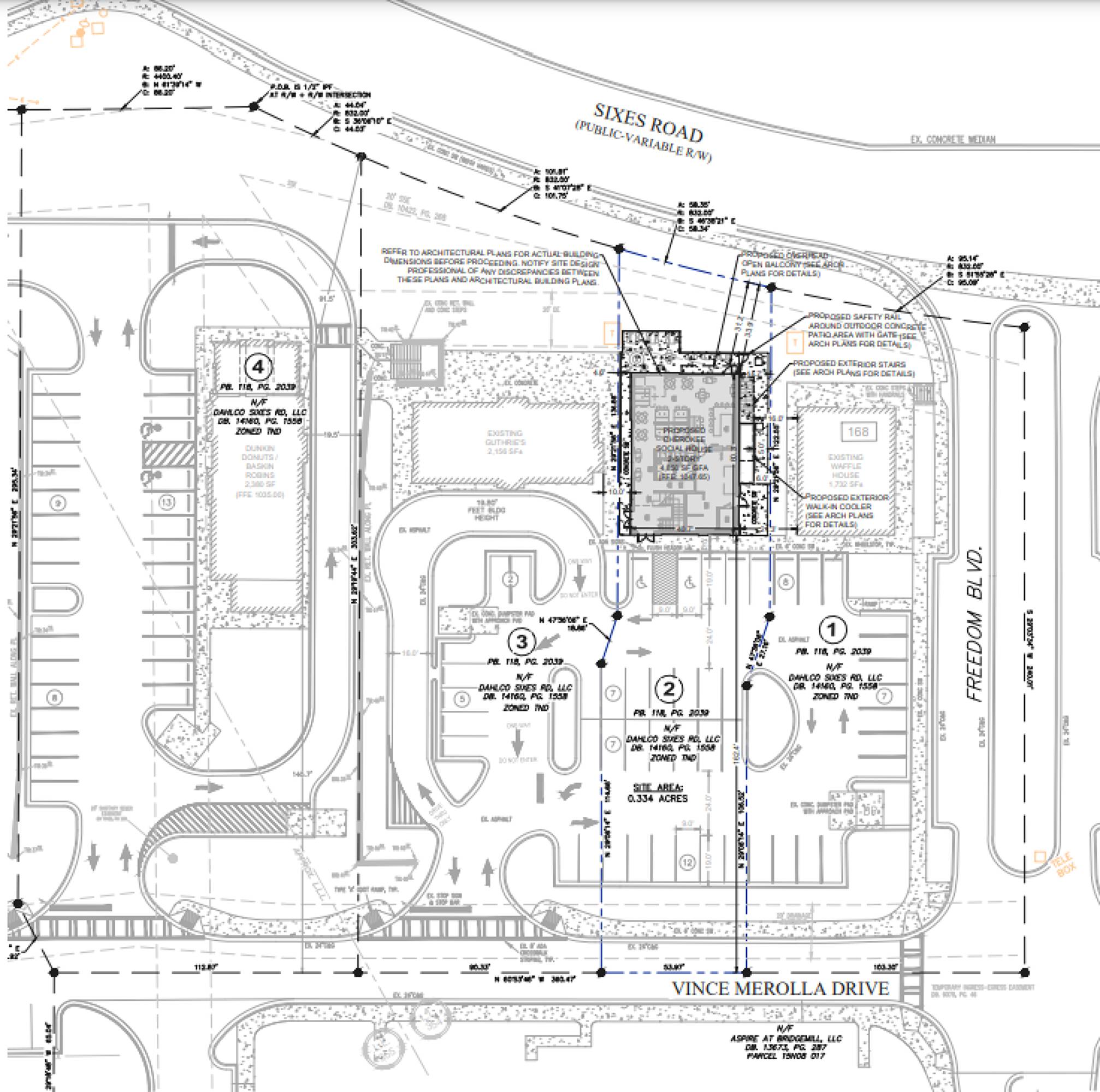 Permitted restaurant lot with completed site work and utilities.