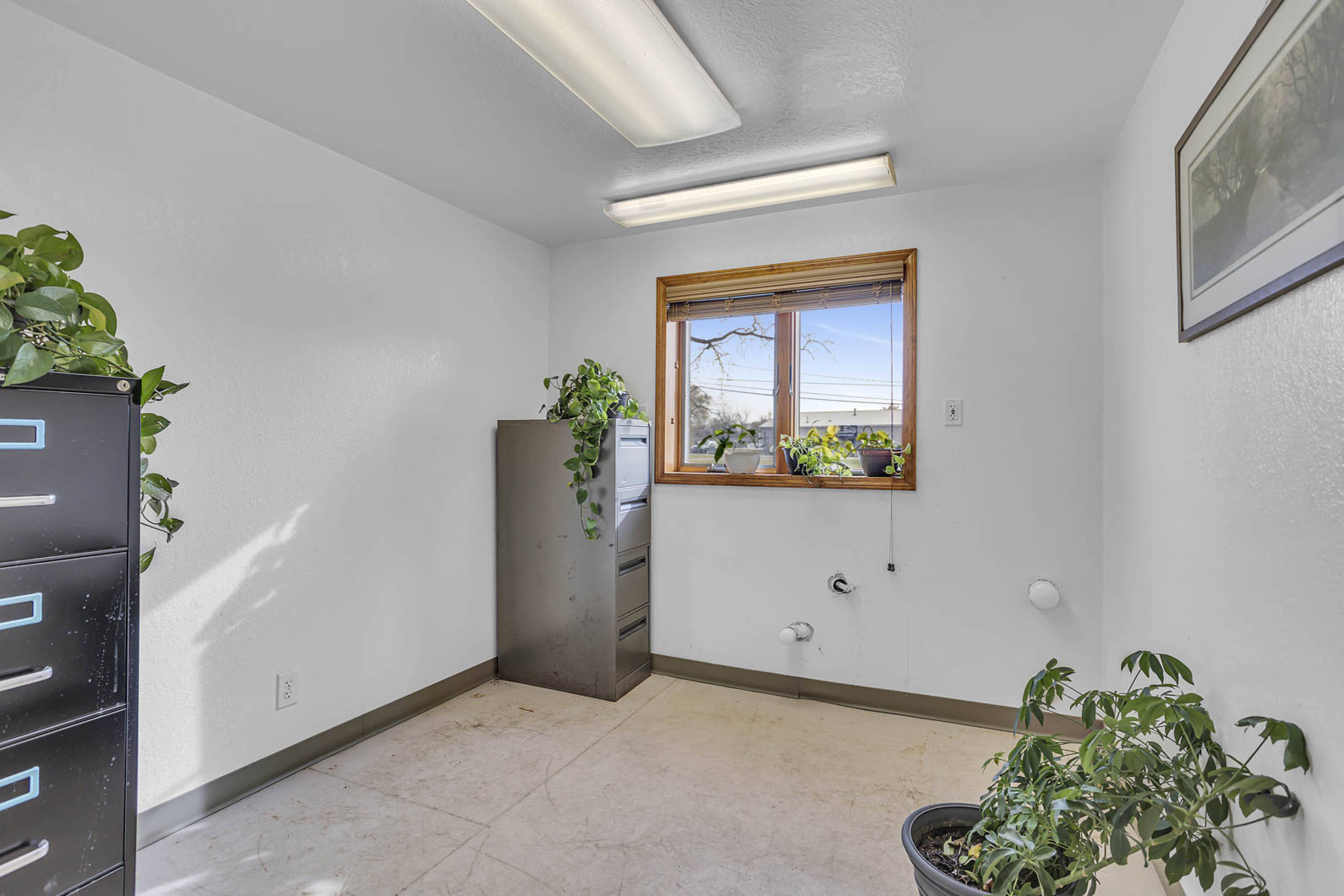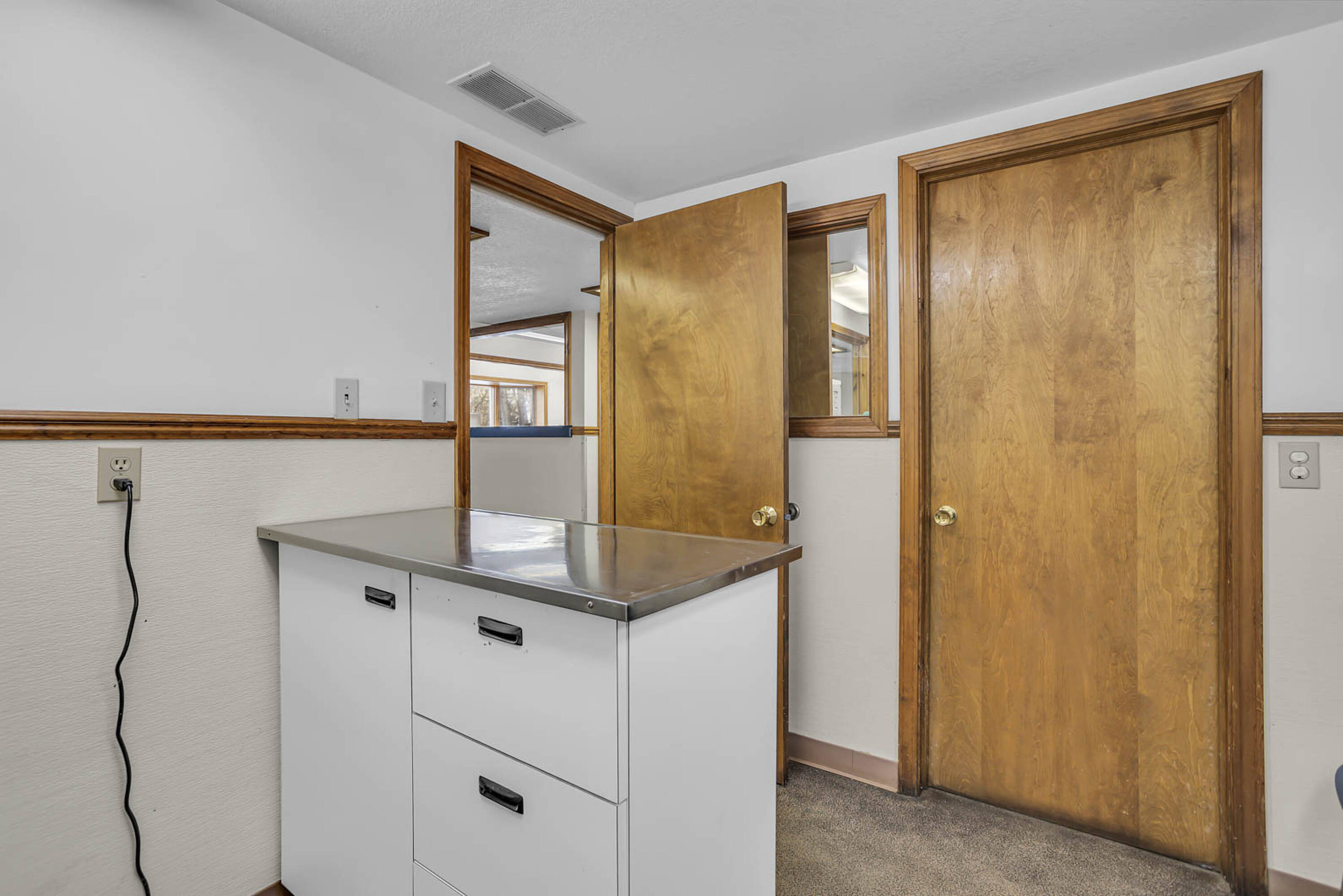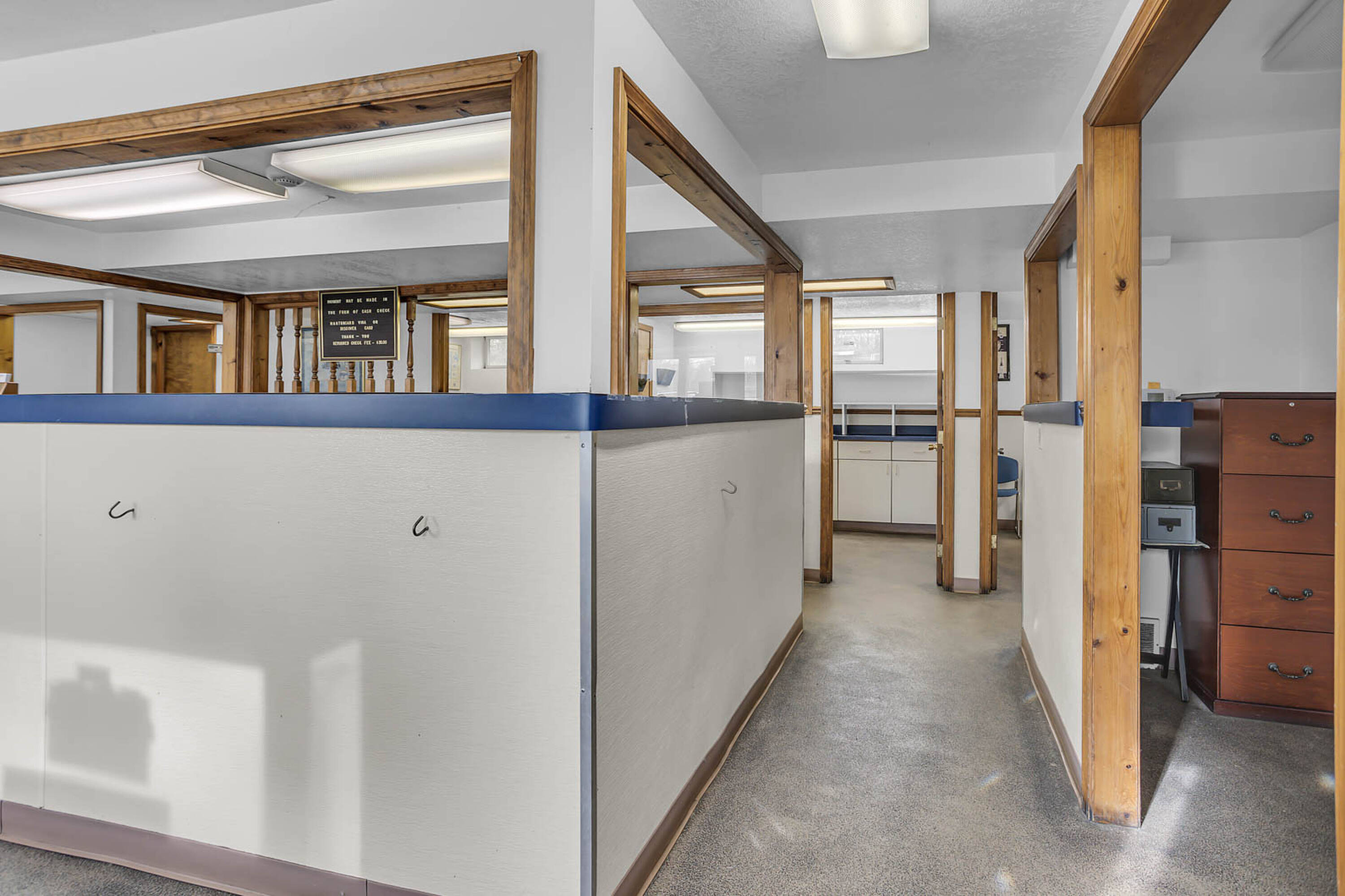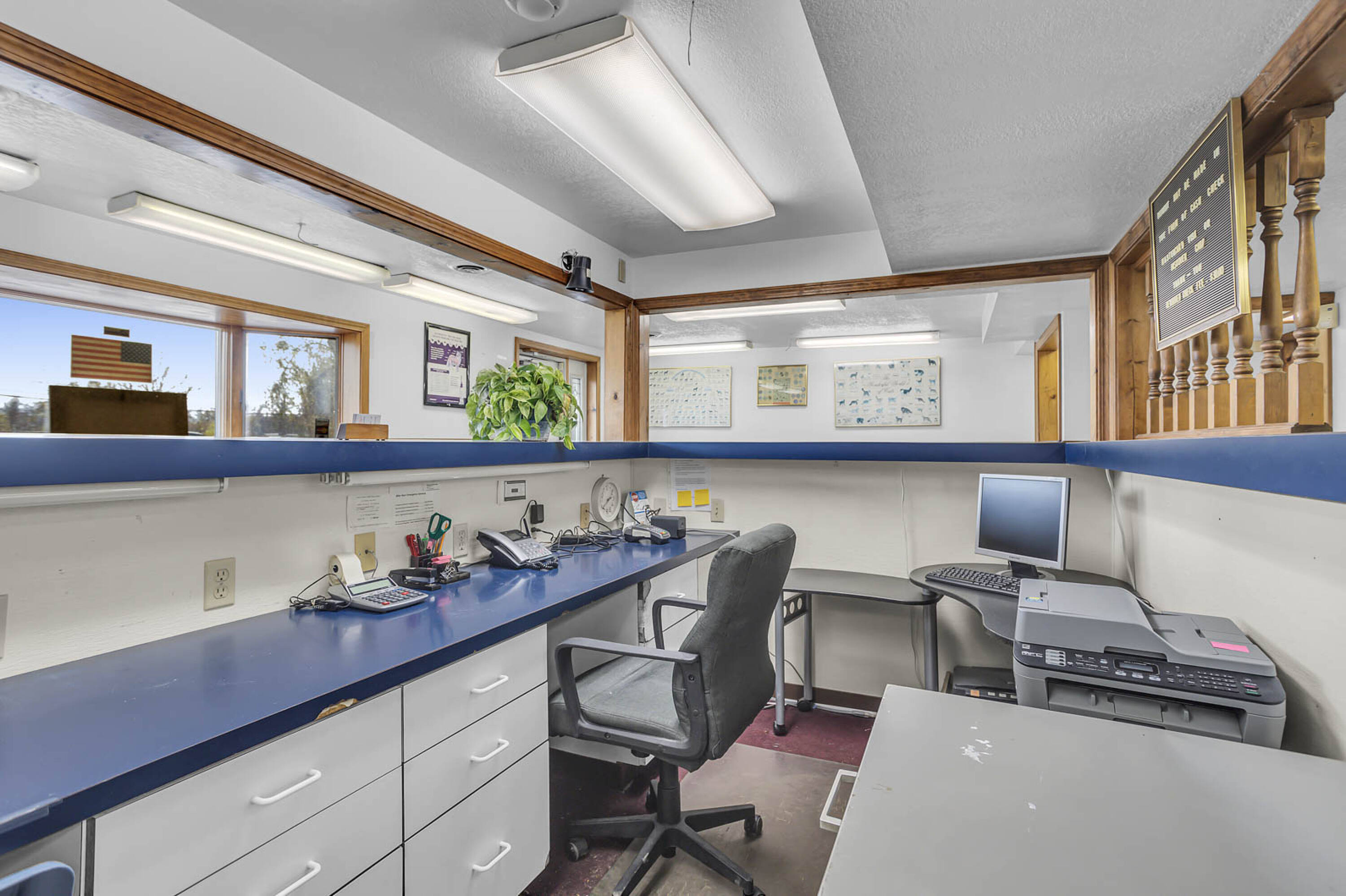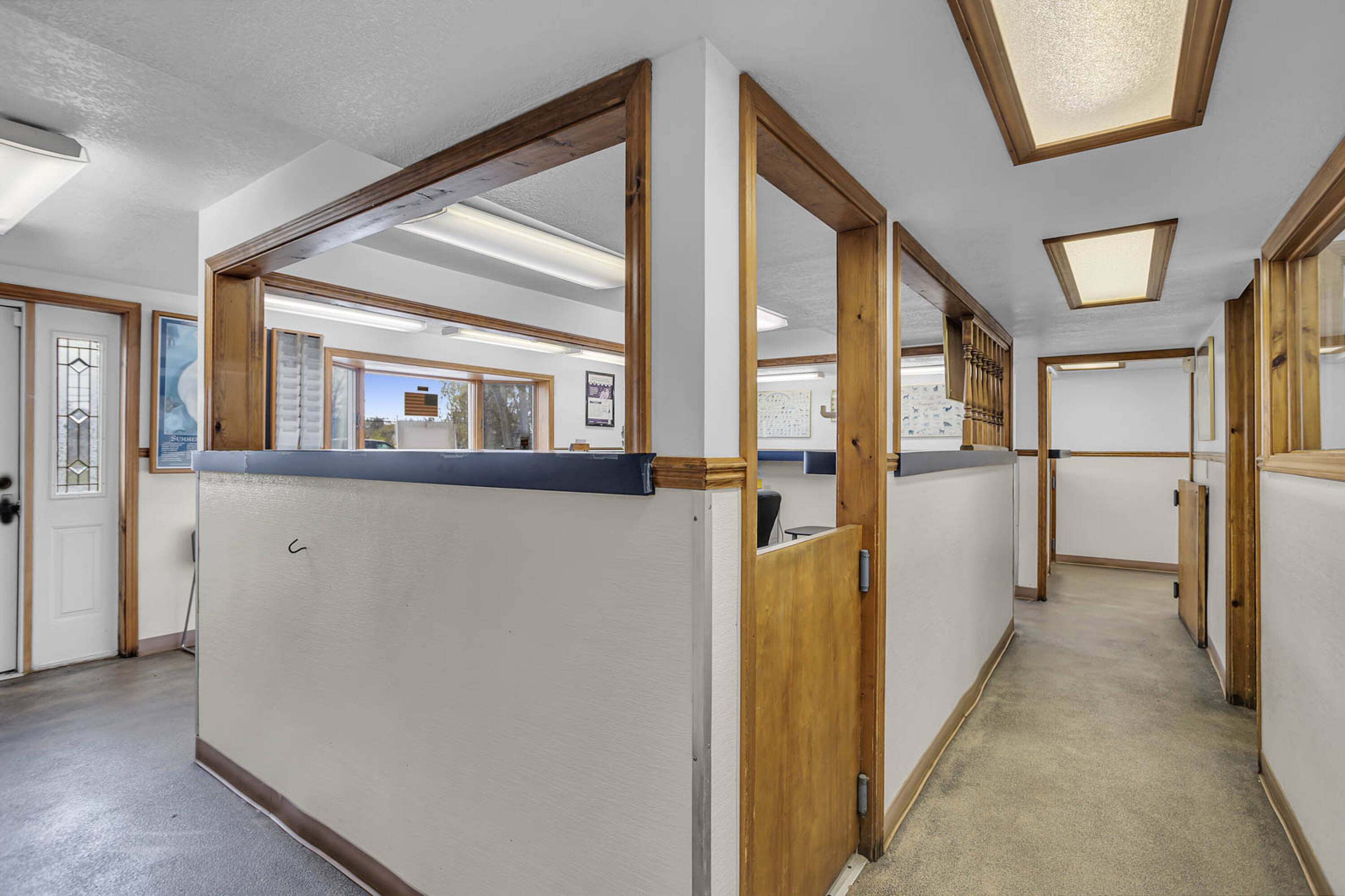 Long-standing veterinary hospital with living quarters and pole barn.