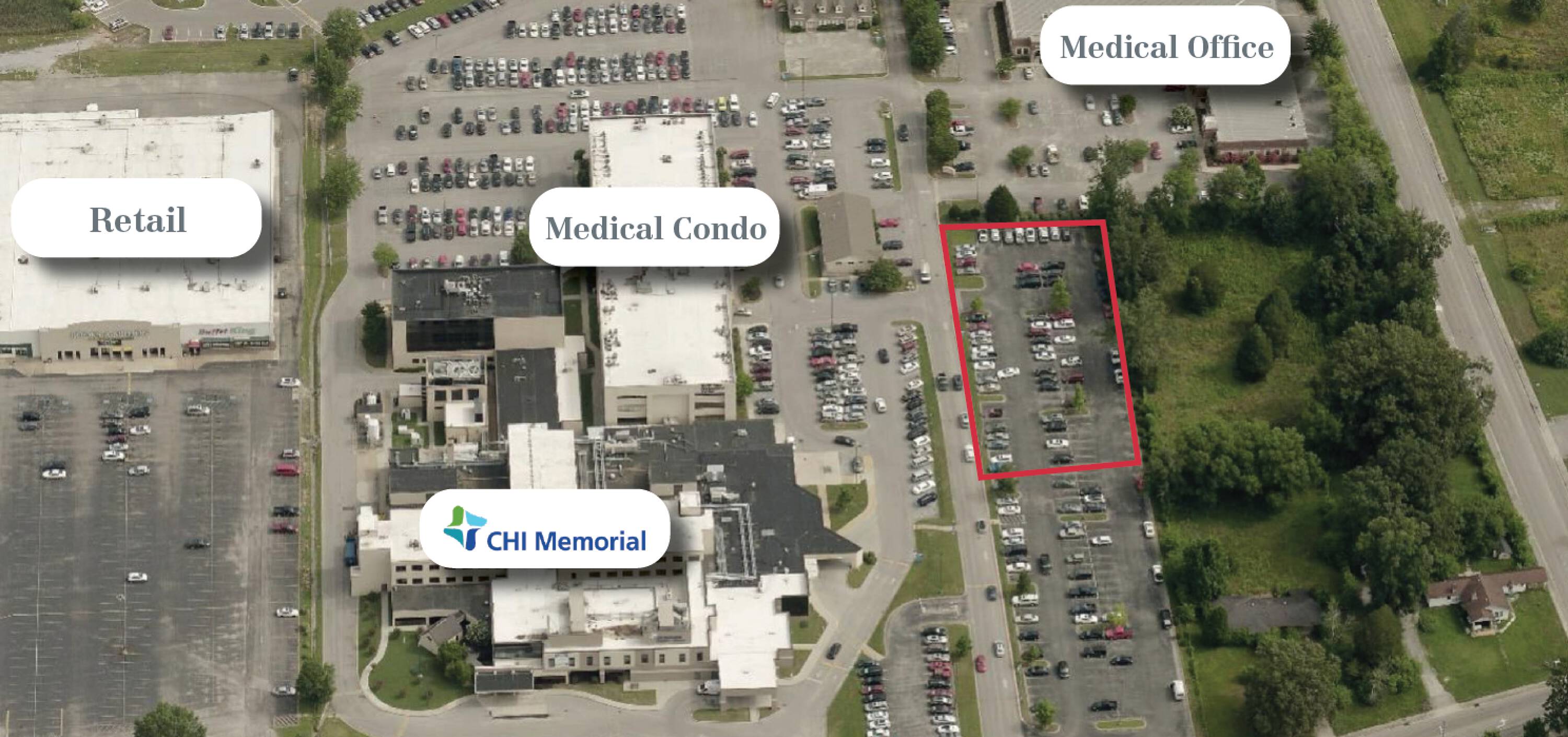 This 0.97-acre parcel of land is currently paved and used as a parking lot. The property's dimensions are approximately 323 feet by 130 feet by 322 feet by 131 feet. It is located off the intersection of Highway 153 and Hamill Road. Situated at 5020 Old Godsey Lane, the site neighbors Memorial Hospital of Hixson and the Hamill Professional Center, making it an ideal location for medical or office development.
