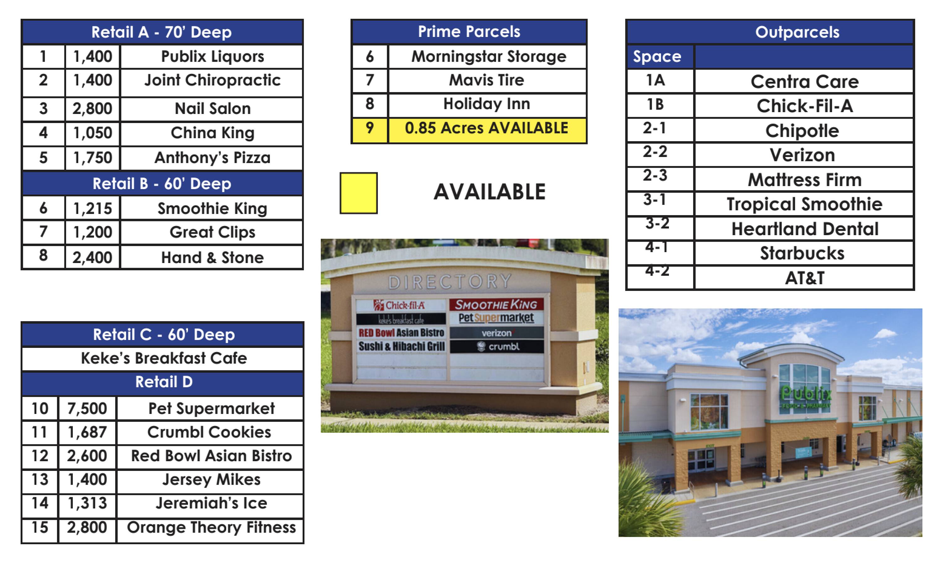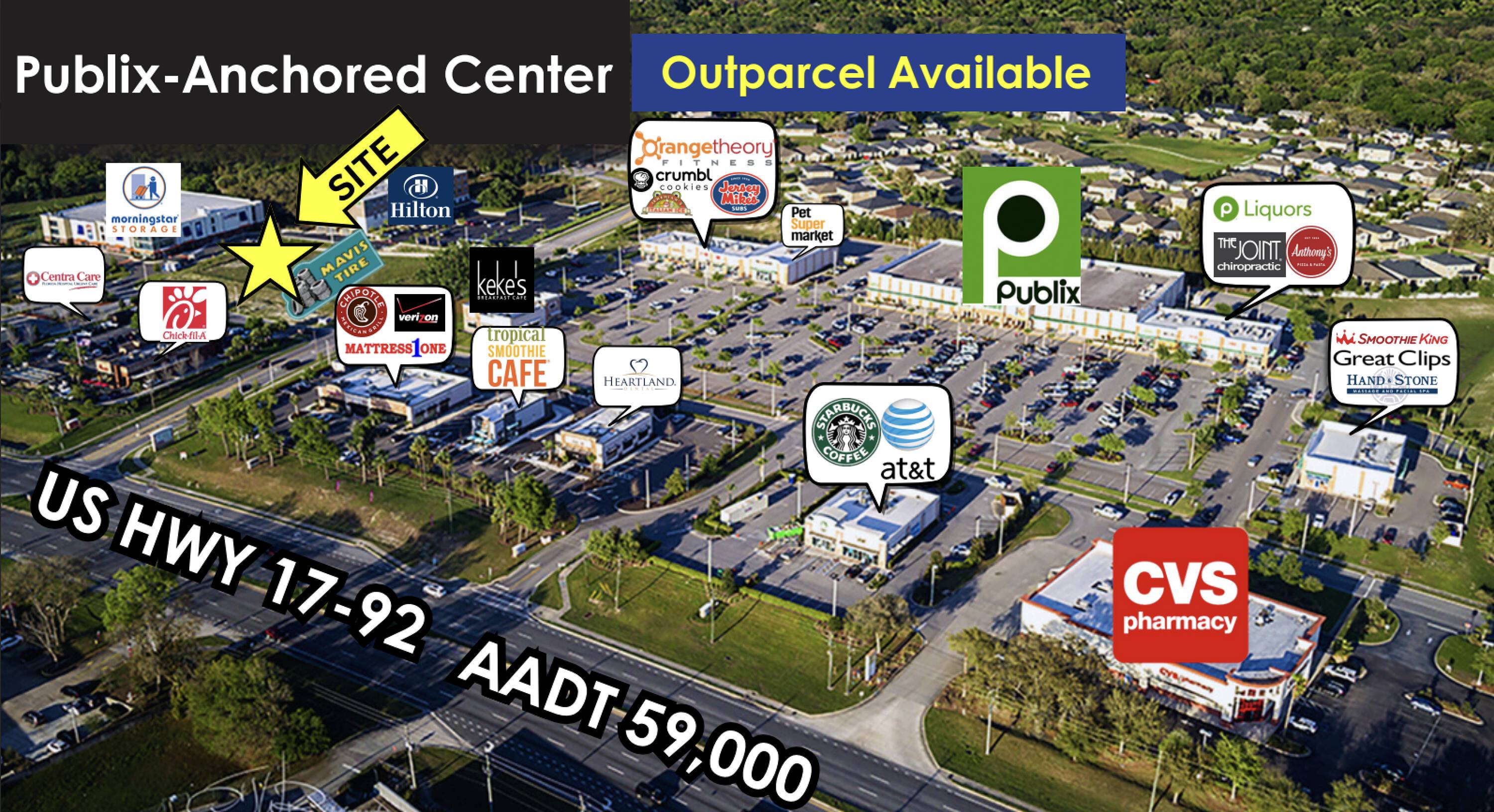 This property features: Pad‑ready outparcel (.85 AC) available within a high‑volume Publix center.; Excellent demographics and location in a well‑established, high‑income neighborhood.; High foot traffic location.