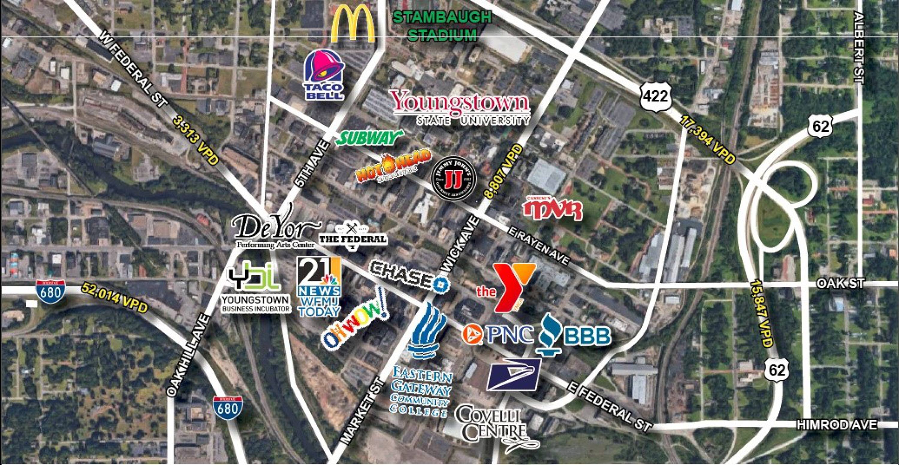 Located in revitalizing downtown Youngstown, near major landmarks.