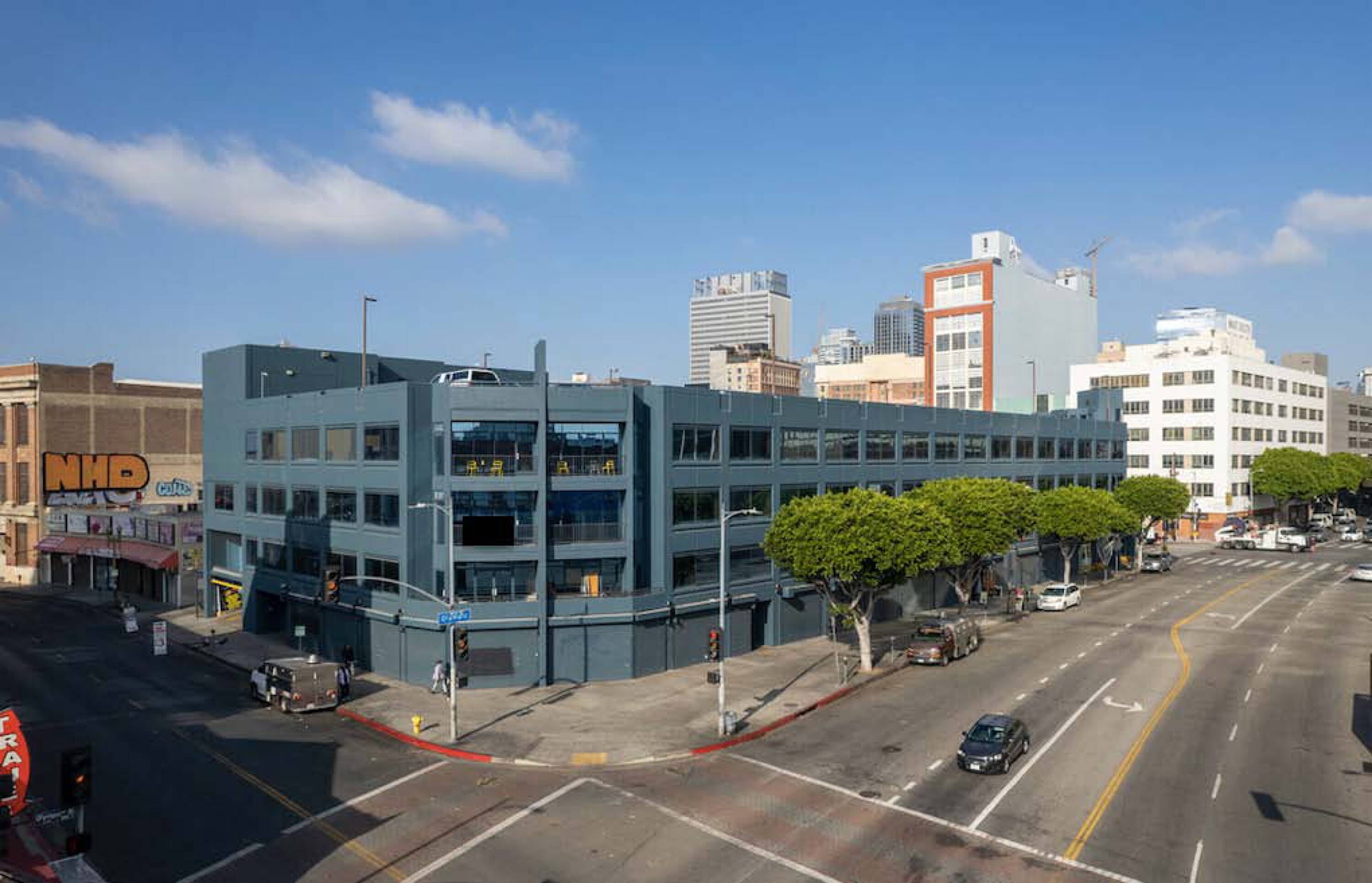 Signalized corner location on Olympic Blvd and Los Angeles Street.