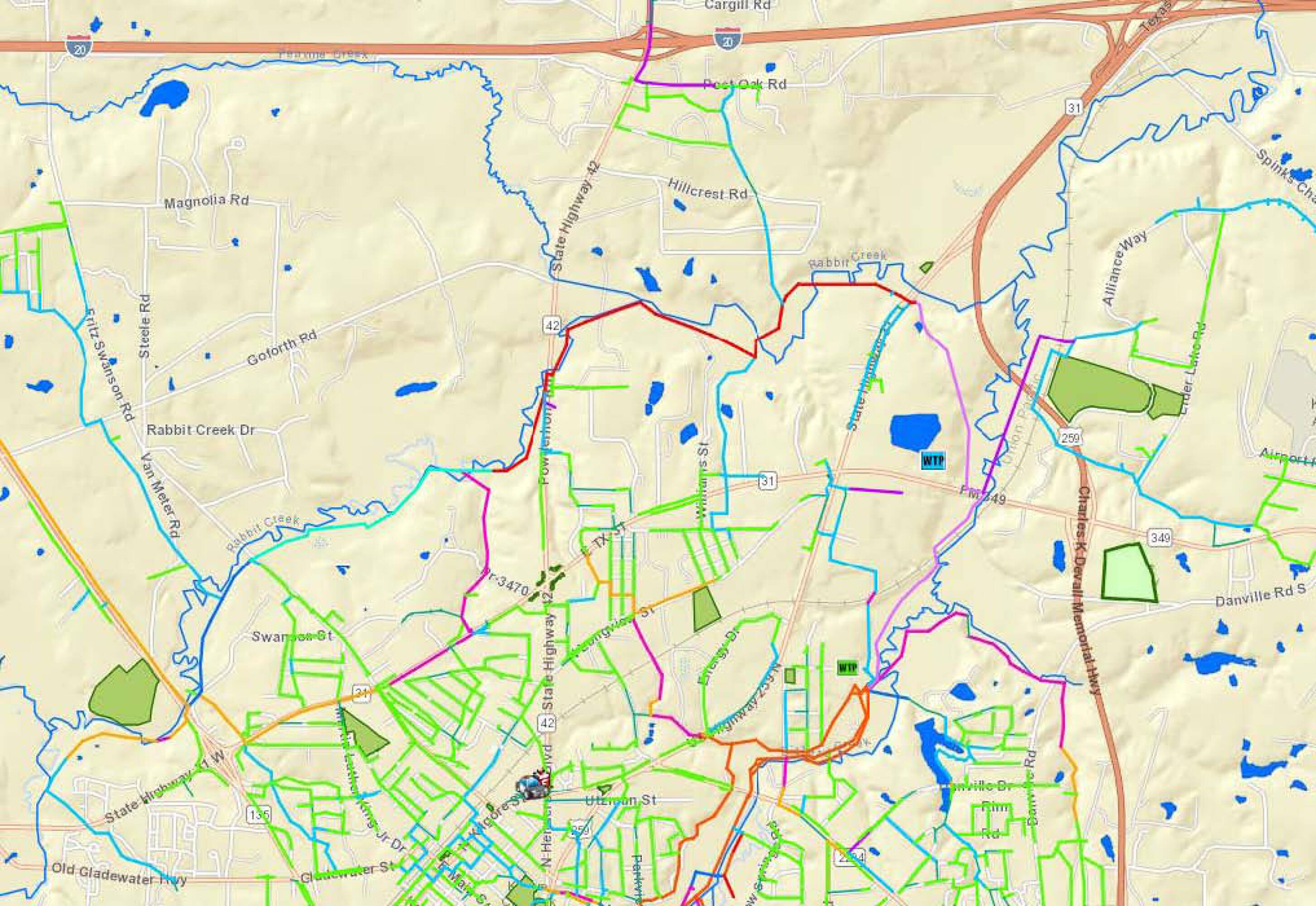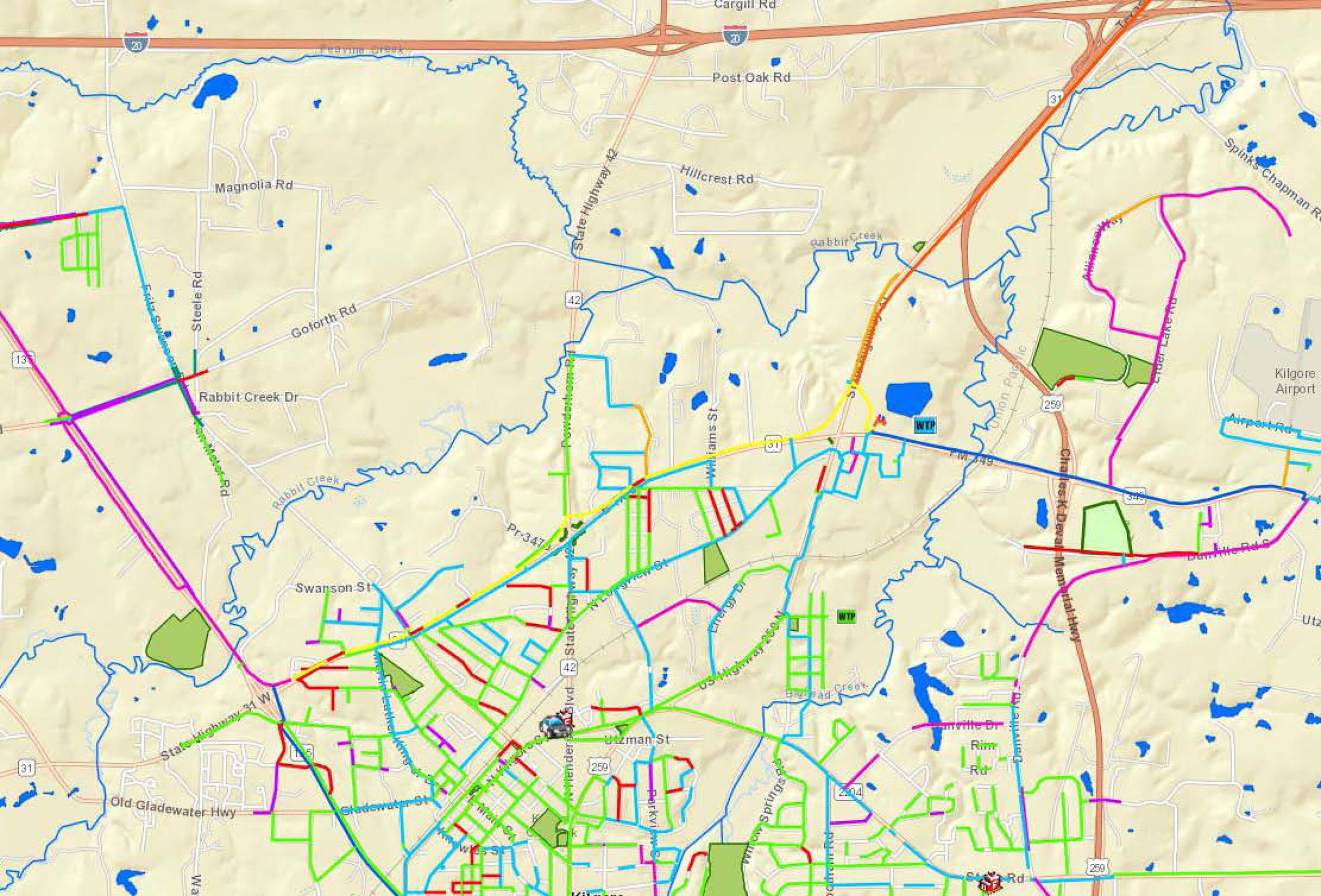 Land available near Highway 42 and I-20 in Kilgore, Texas.