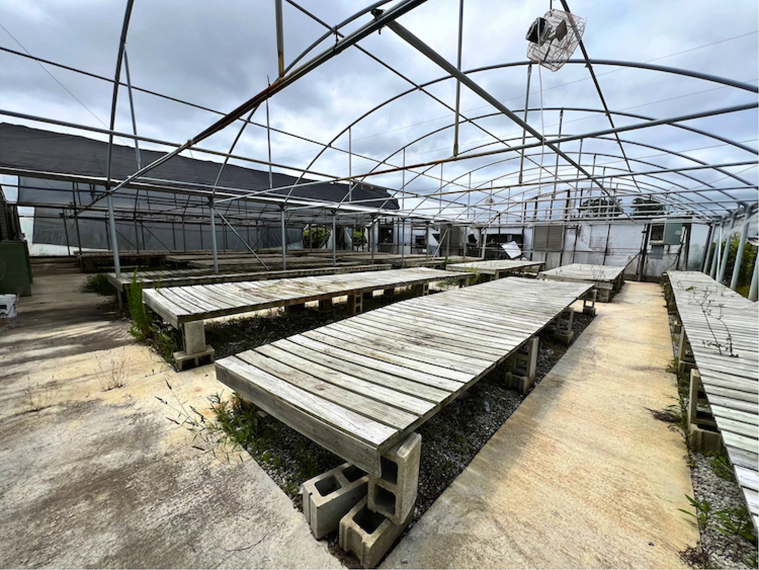 2.22 acres with warehouse, mixed-use building, and greenhouse.