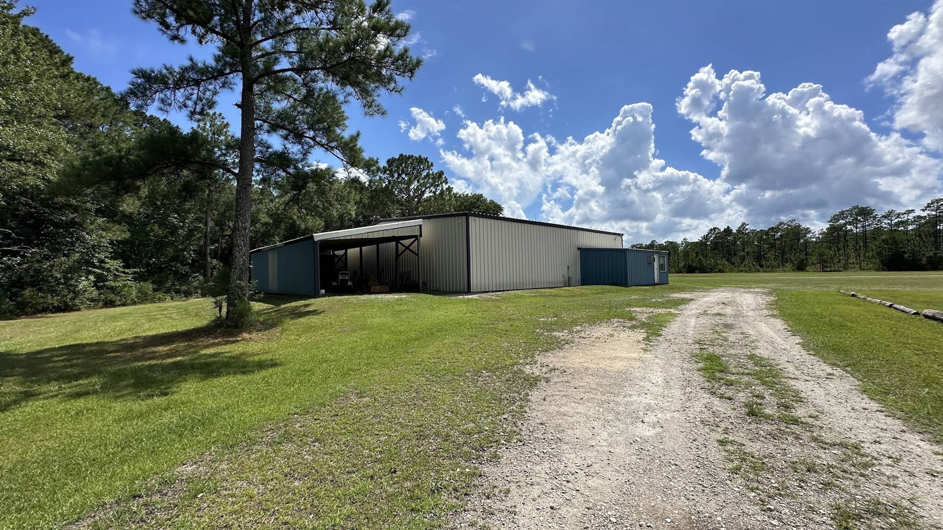 130-acre airpark with hangars and runway access.
