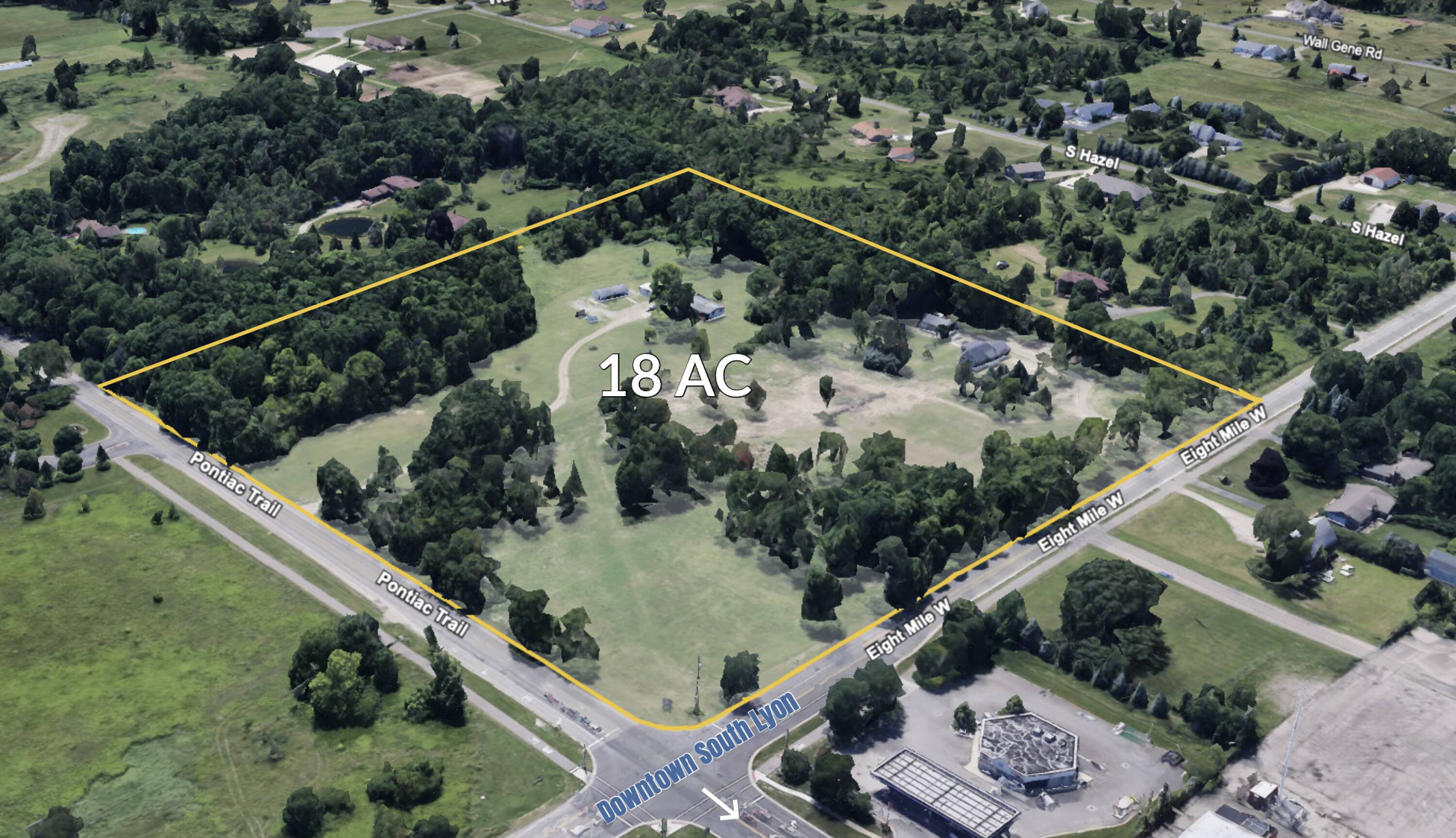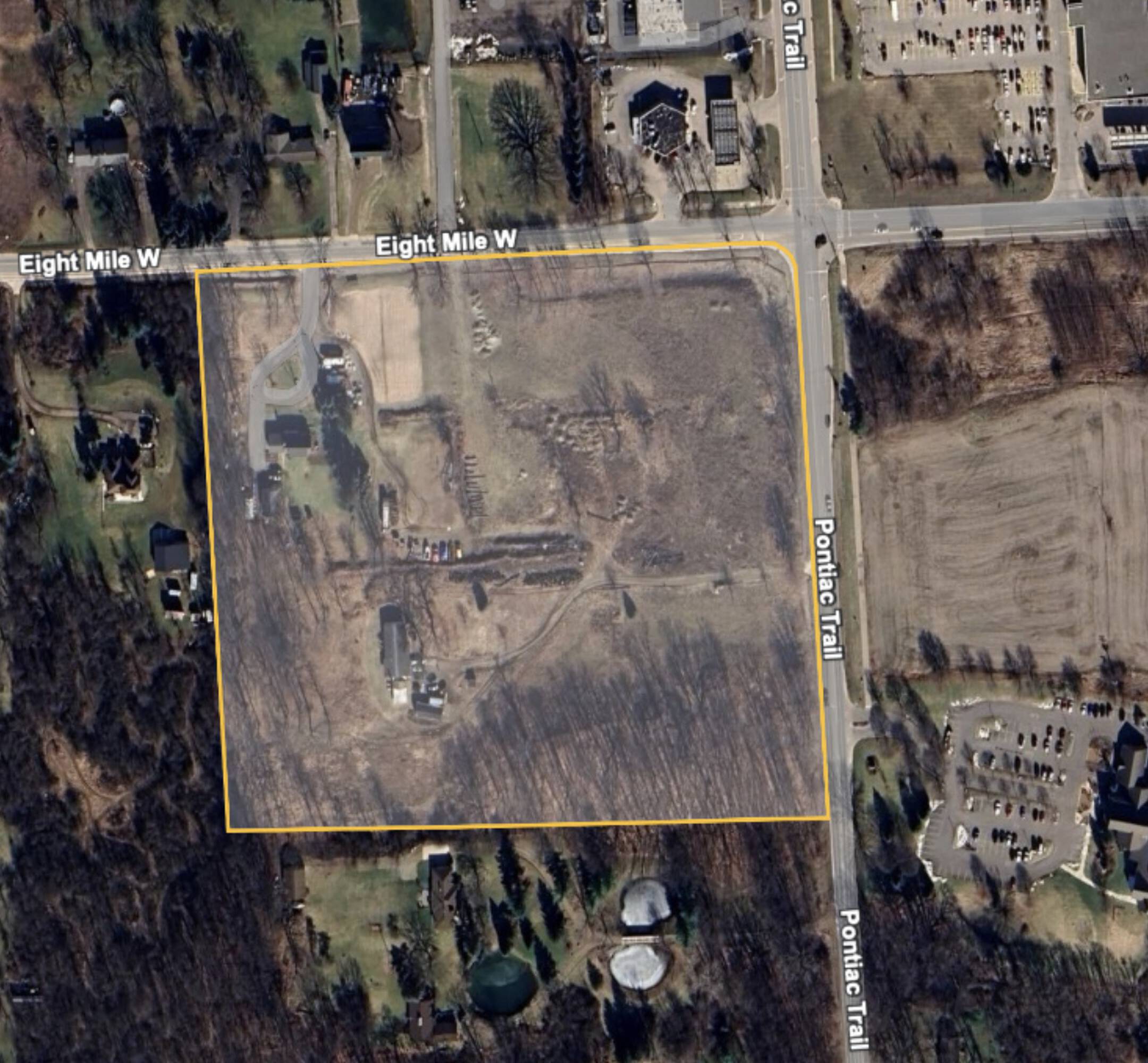 This property features: Divisible or combined up to 17.82 acres offering flexible development options.; **837’ frontage along Eight Mile Road providing excellent visibility.**; 828' frontage along Pontiac Trail offering additional access and exposure.