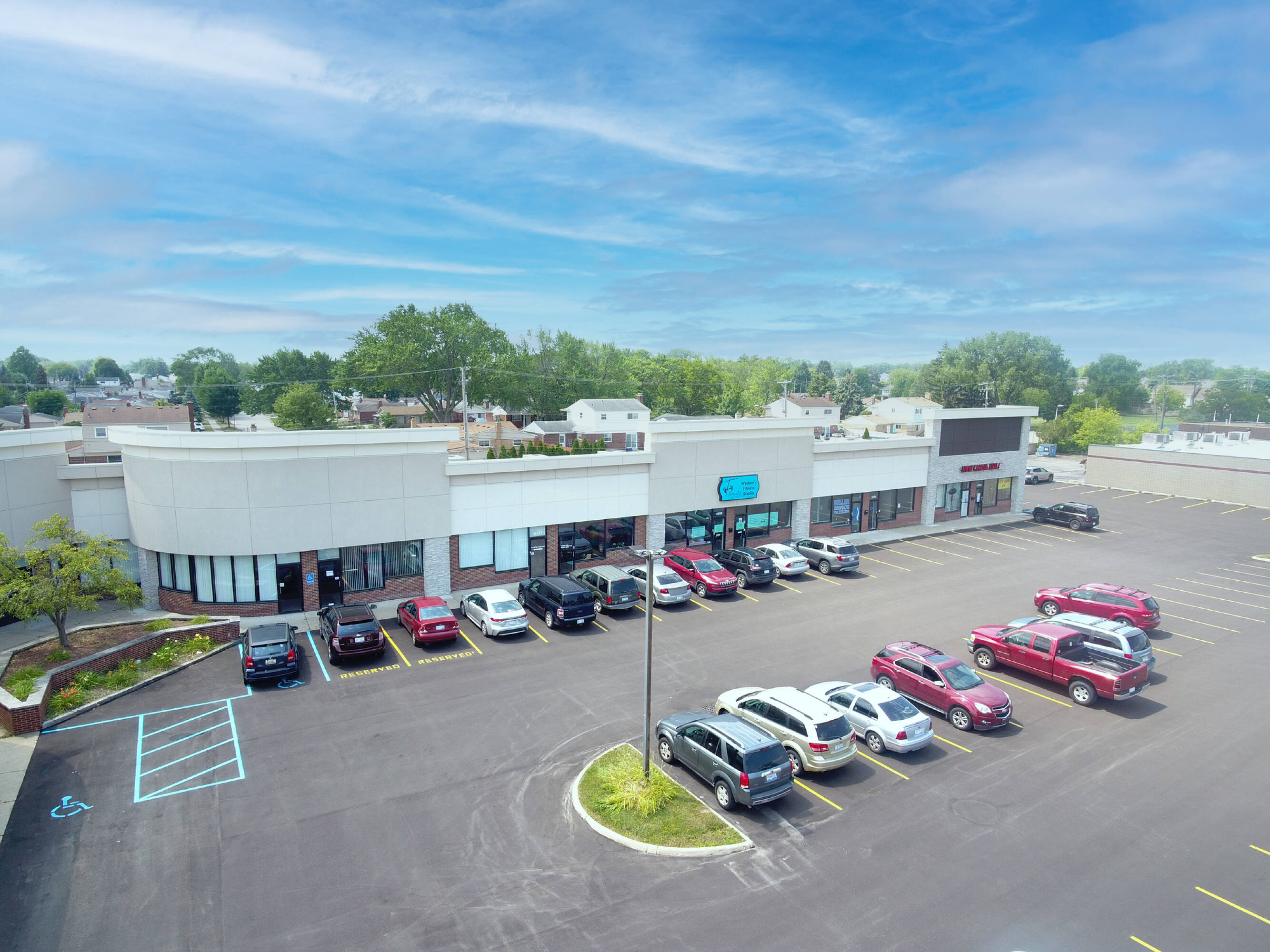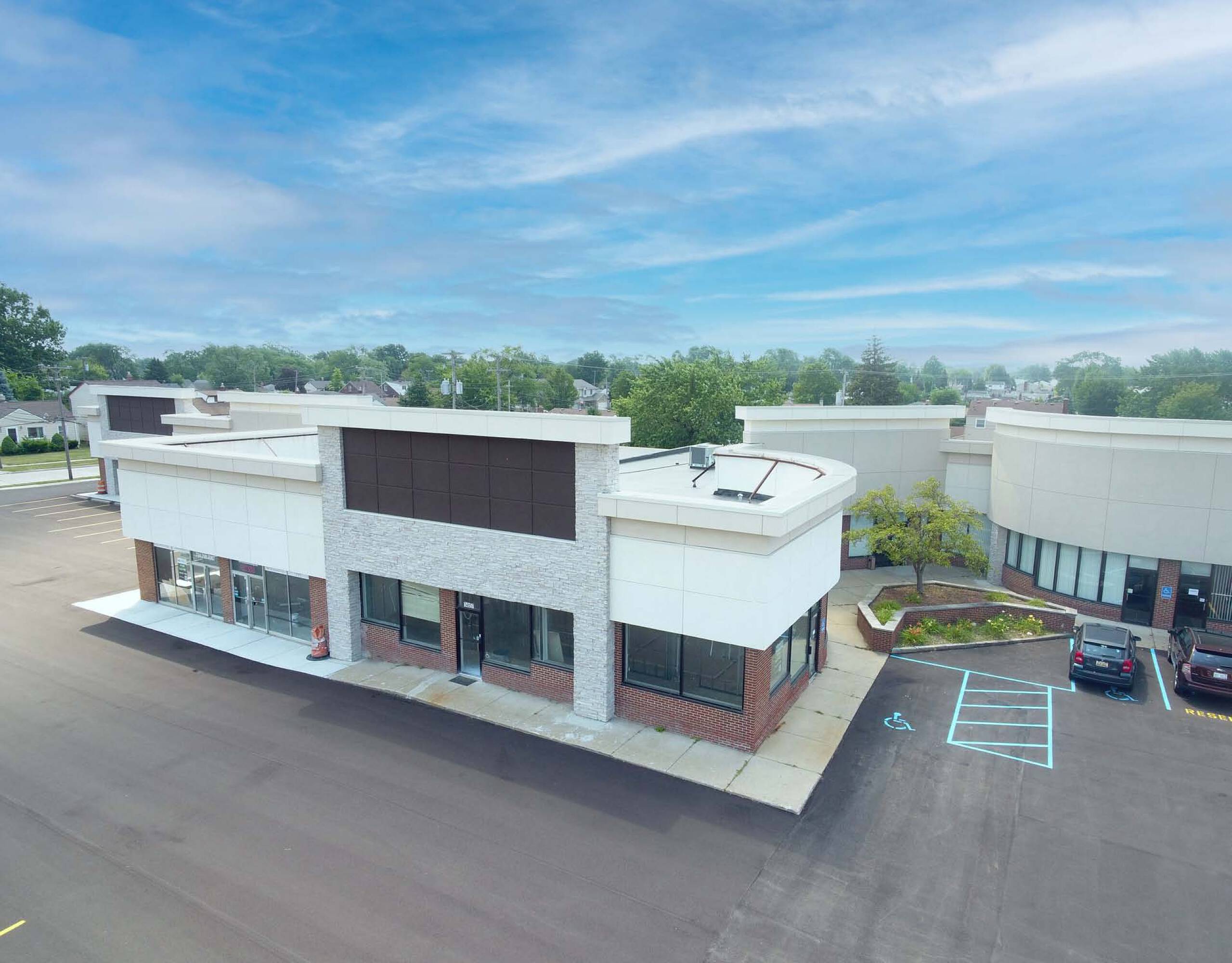High-traffic commercial space with ample parking in Southgate, Michigan.