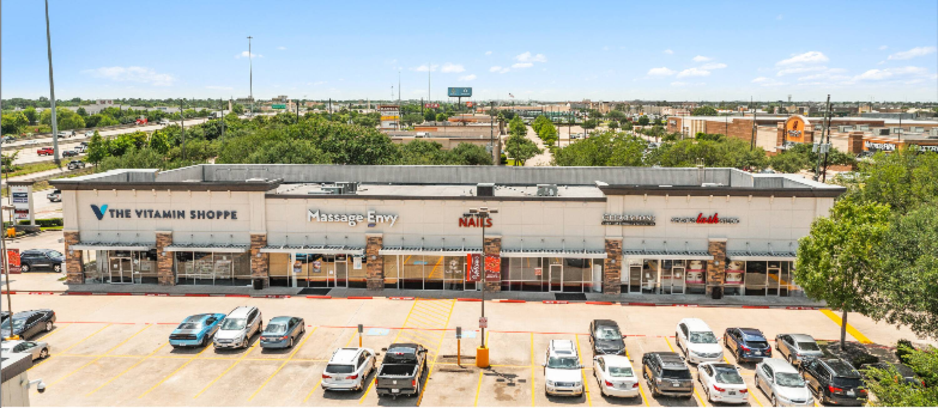 Easily accessible shopping center space for rent.