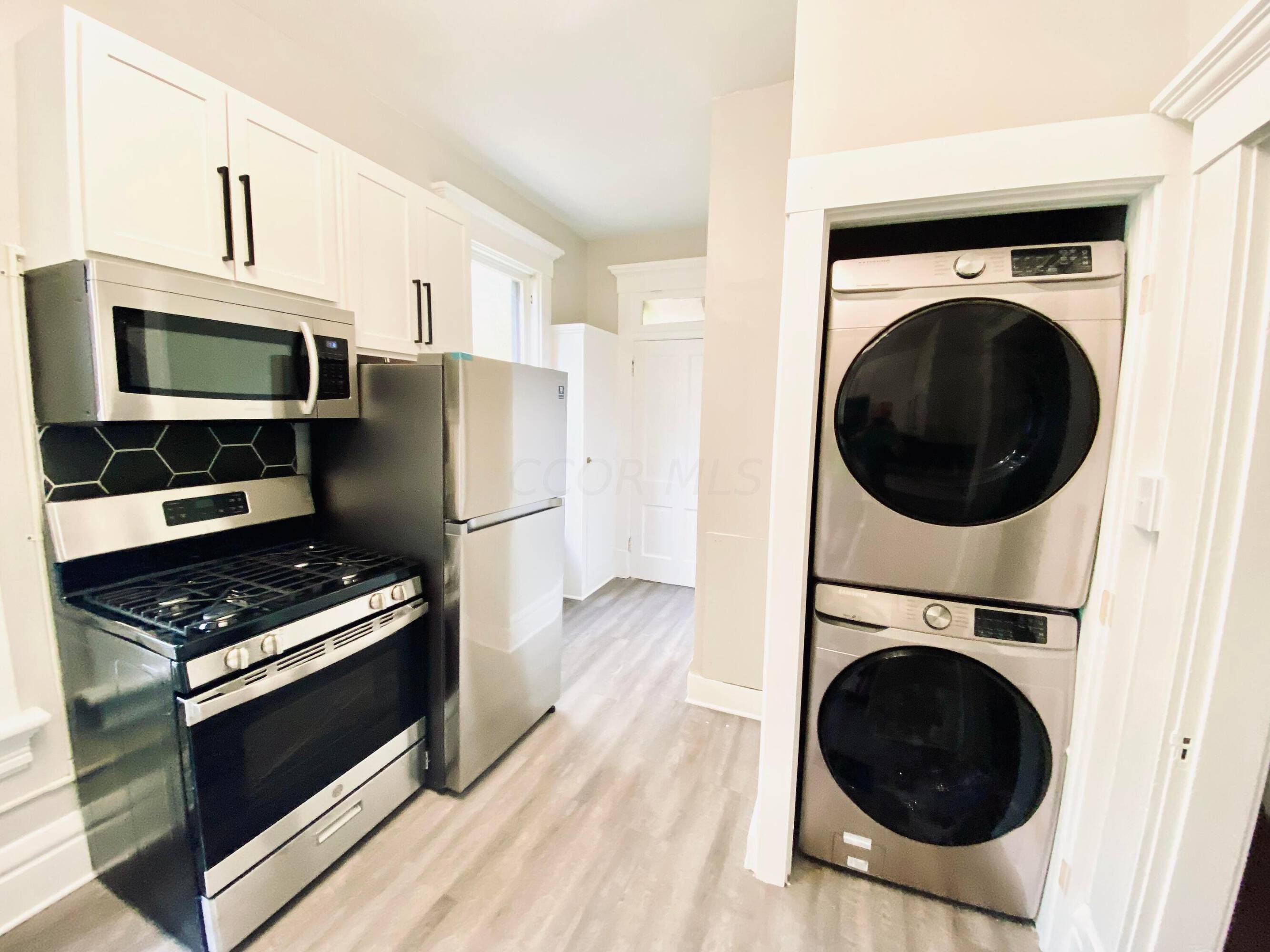 Four-unit property with high ceilings, natural light, and oversized garage.