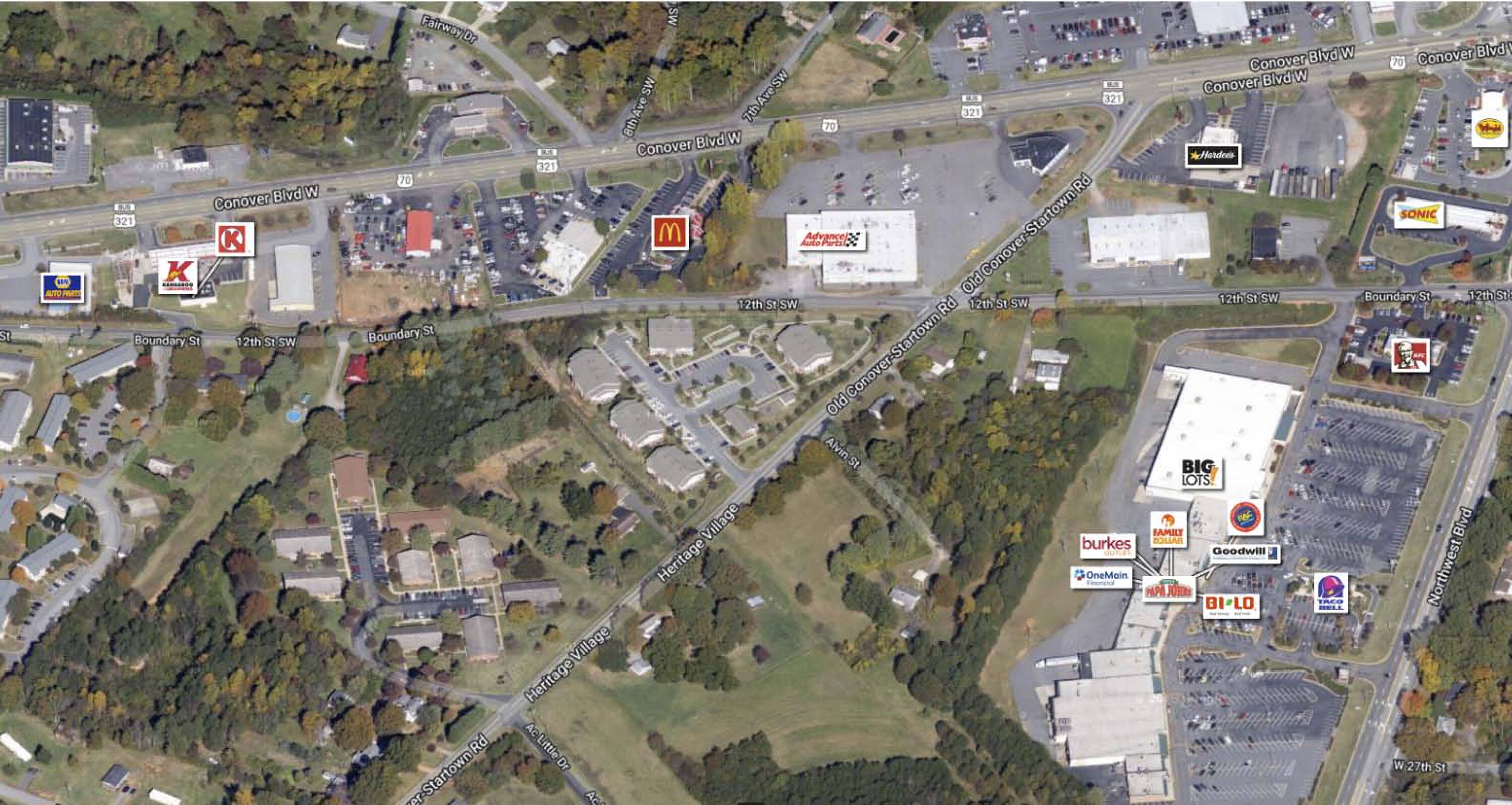 Several retail spaces are available for lease in the Marketplace Center, constructed in 1988 and situated on approximately 15.80 acres in Newton, NC. The property is currently occupied by a mix of national and local tenants, including Planet Fitness, Big Lots, Bealls, Rent-A-Center, and Papa Johns. Newton is located in Catawba County, within the Hickory Metropolitan Area, and features a diverse industrial base encompassing fiber optic cable, automotive parts, baked goods, medical supplies, and telecommunications technology, alongside traditional industries like furniture and textiles. The location benefits from major transportation routes, including Interstate 40, US Highway 321, US Highway 70, NC Highway 70, North Carolina Highway 10 and 16, the Hickory Regional Airport (12 miles away), and the Charlotte-Douglas International Airport (38 miles away). Newton's location in Catawba County provides accessibility to Charlotte and Hickory, while maintaining the advantages of a smaller town. The Marketplace Center benefits from approximately 27,000 vehicles passing by each day, resulting in over 1,000,000 annual visits. Surrounding businesses include Sonic Drive-In, Bojangles', Walgreens, Hardee's, and Advance Auto Parts, as well as North Newton Elementary School and Conover City Park. Additional points of interest near Marketplace Center include Walmart Neighborhood Market, Southern Furniture Company, WestRock Conover, NC Works Career Center, Lee Industries, and the Hickory American Legion Fairgrounds.
