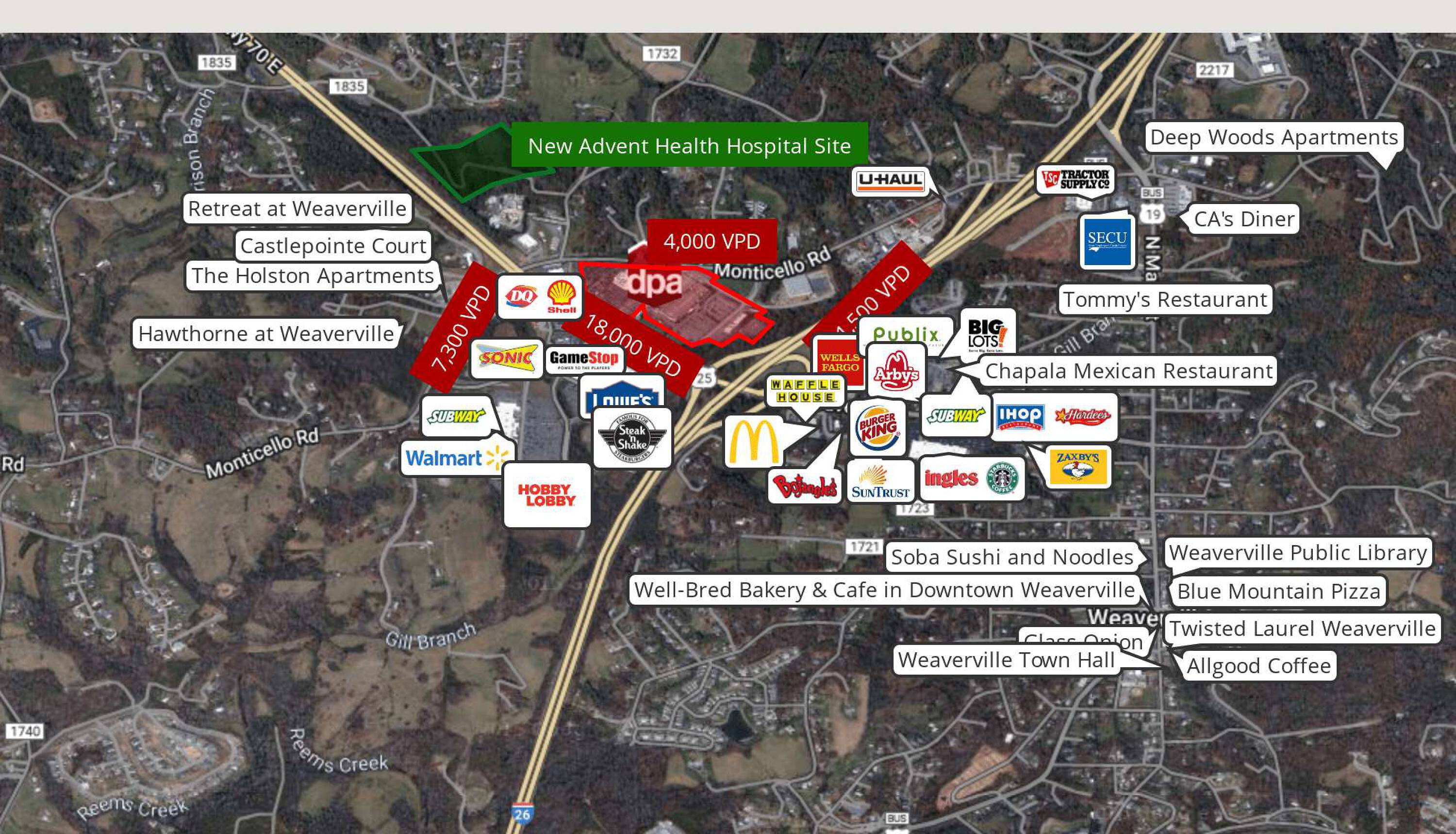 This property features: Excellent accessibility with exposure to I‑26 and US Hwy 25N/70W.; Variety of office, warehouse, distribution, and manufacturing spaces available.; Located in Weaverville, North Carolina, just 15 minutes to downtown Asheville.