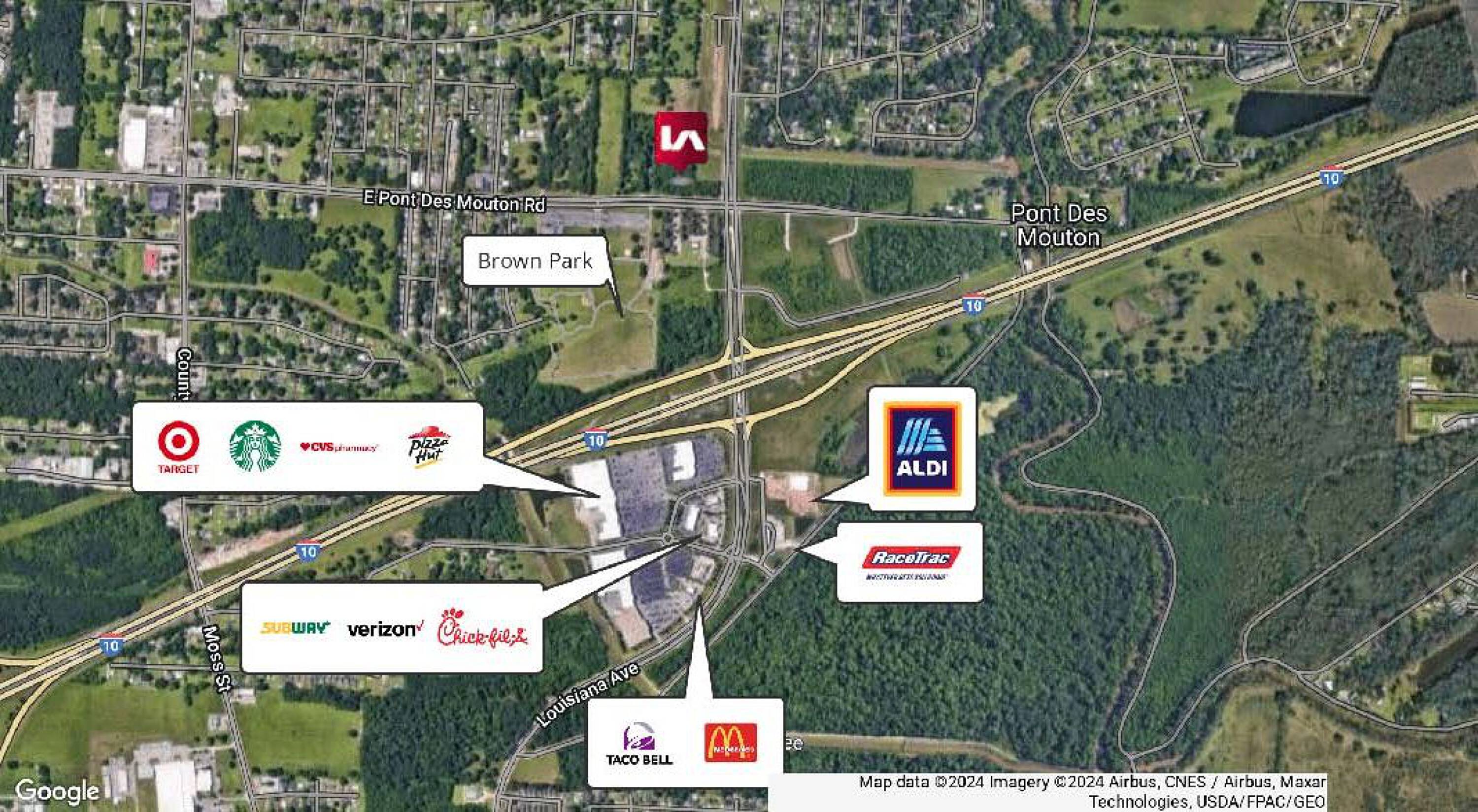 The subject property is a development totaling approximately 27 acres, situated at the signalized intersection of E Pont Des Mouton and Louisiana Avenue. Brown Park, located directly across E Pont Des Mouton, is undergoing a multi-million dollar renovation, expected to be completed in December 2024. The renovation includes the addition of several tournament-quality baseball fields designed to attract regional and national tournaments. In addition to the I-10 and I-49 traffic, which sees a combined total of over 114,000 vehicles per day, Brown Park is expected to draw regional and national traffic to the area. Parcels will vary in size, ranging from large tracts to smaller tracts less than 1 acre, suitable for restaurants and quick-service restaurants. The parcels will be available for sale, build-to-suit, or ground lease.