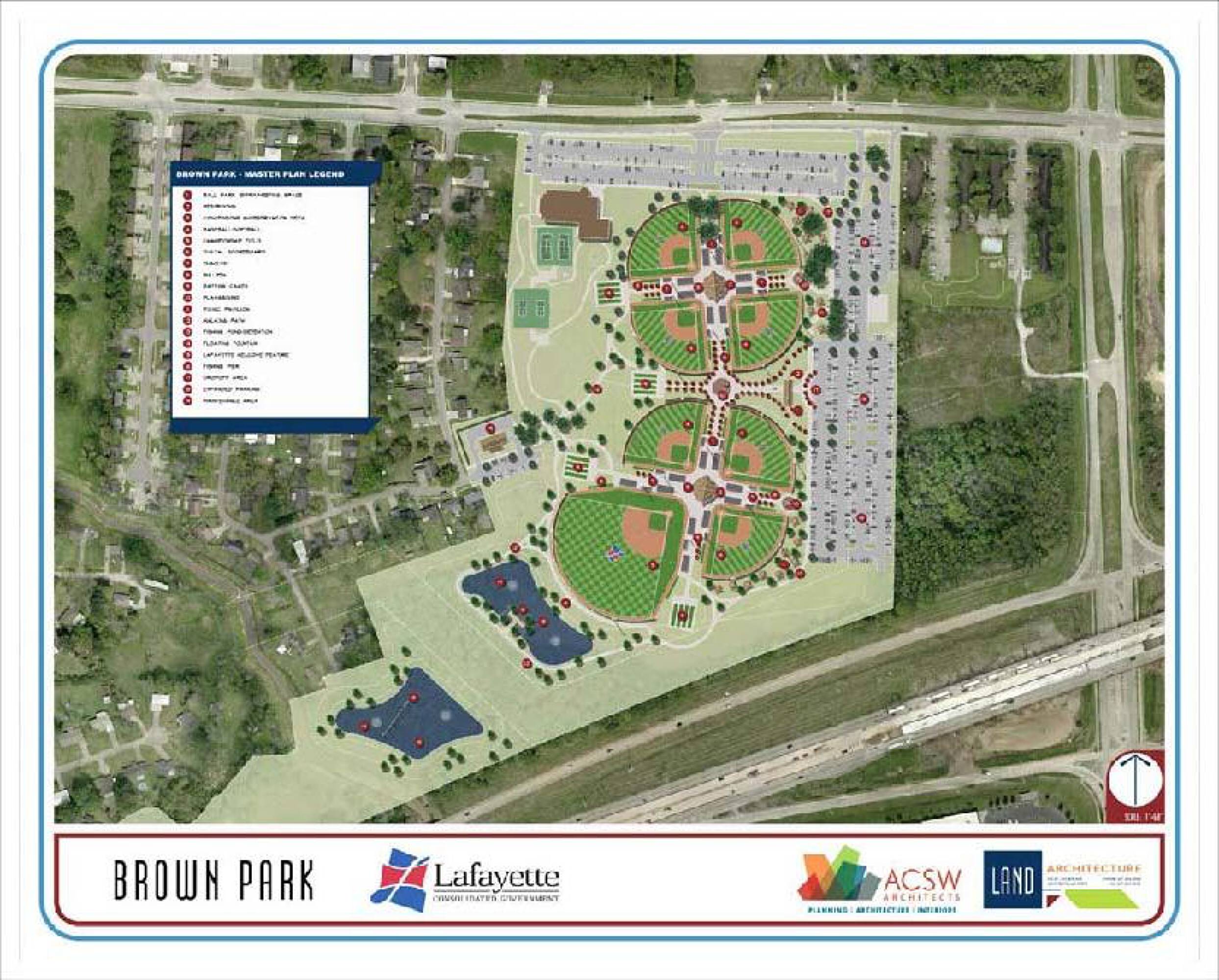 This property features: Located at a **signalized intersection of E Pont Des Mouton and Louisiana Avenue.**; Adjacent to Brown Park, undergoing multi‑million dollar renovation with tournament‑quality baseball fields.; Brown Park renovation completion estimated for December 2024, attracting regional and national tournaments.