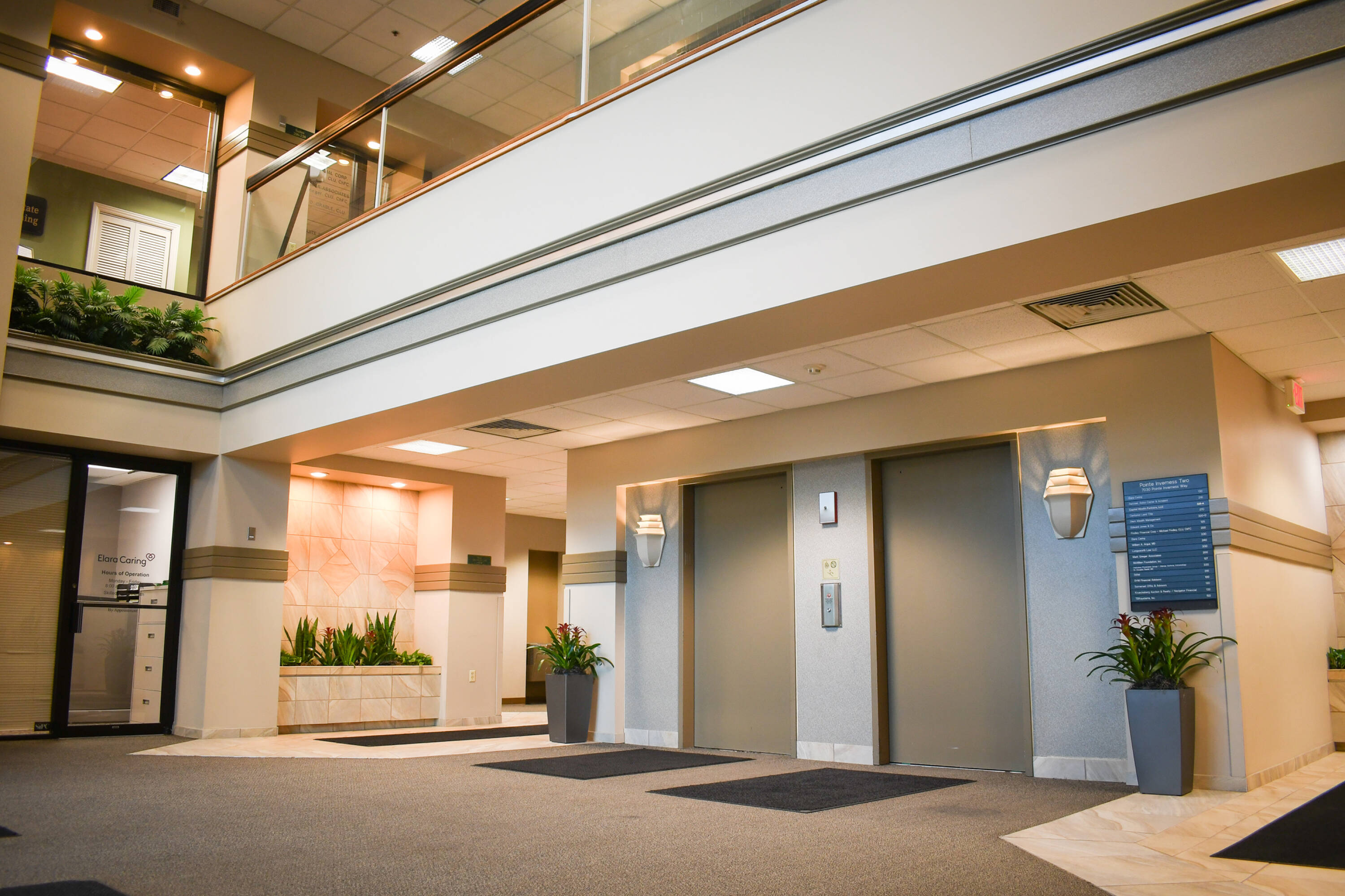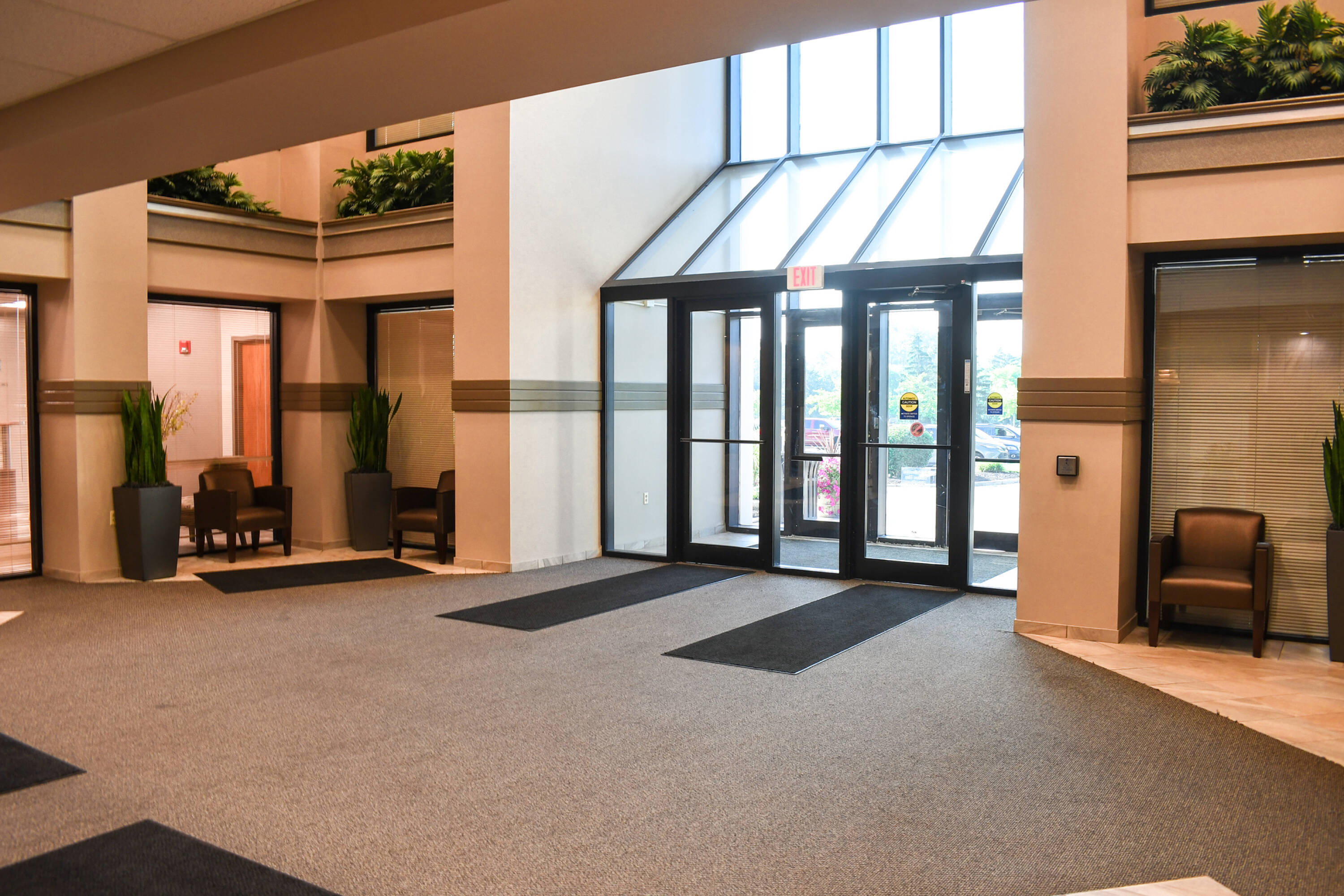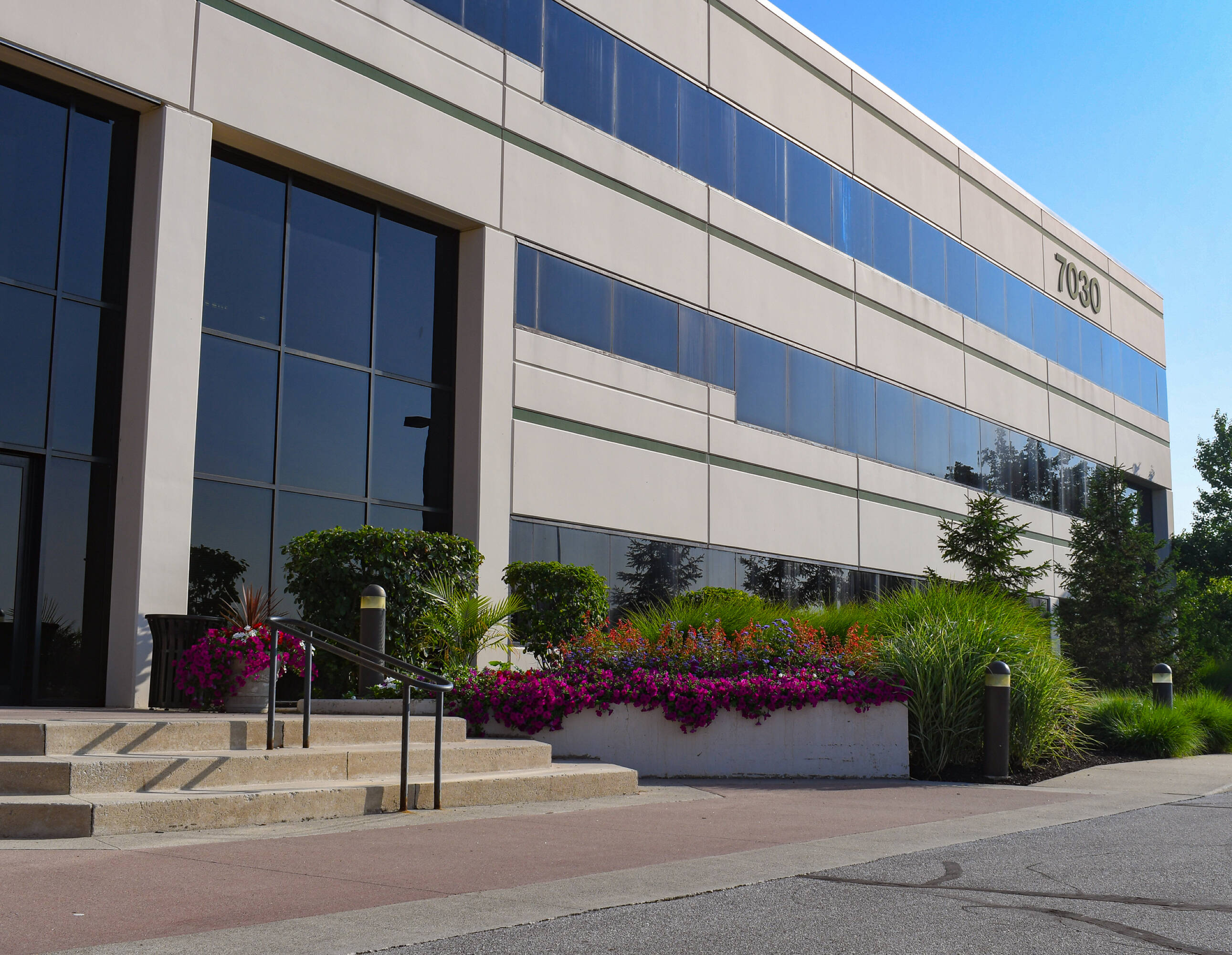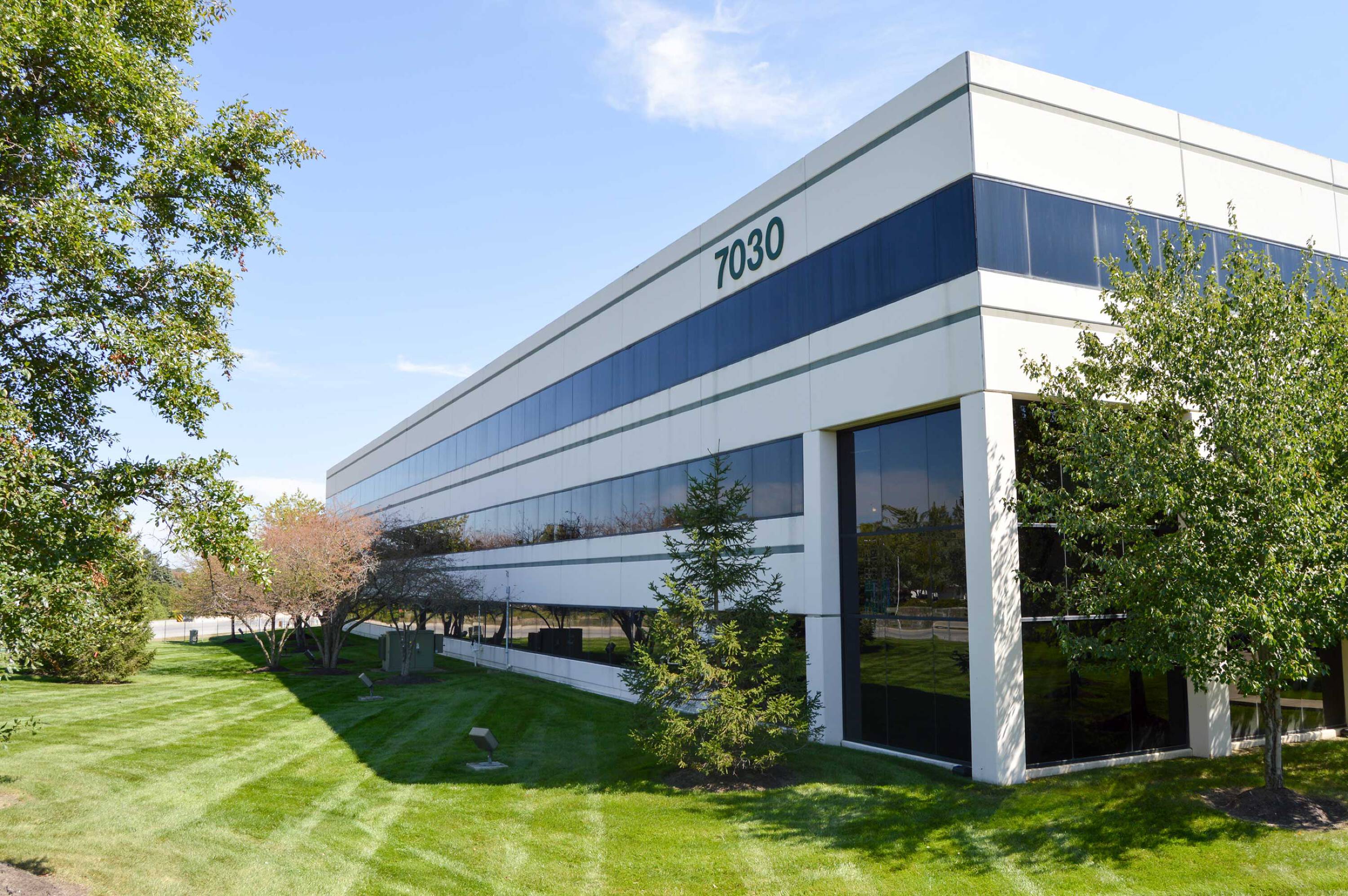 Three-story office building in southwest Fort Wayne with I-69 visibility.