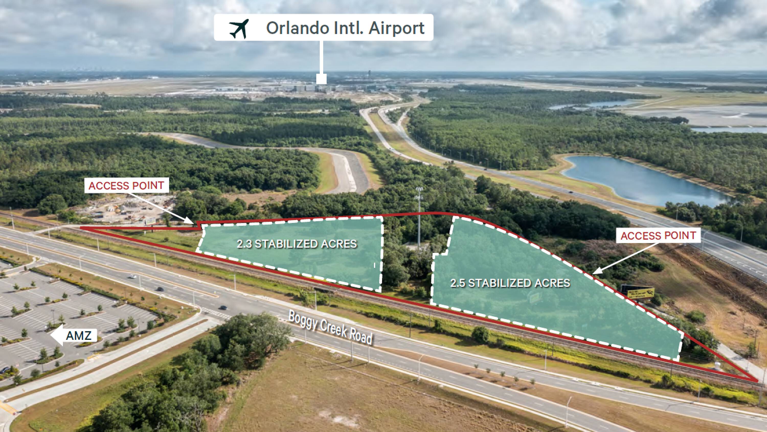 Parking lot near Amazon, airport, and major transportation routes.