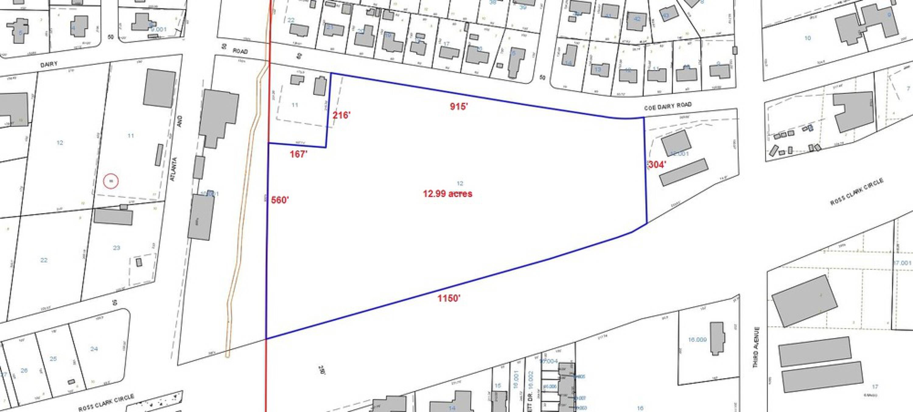Land with frontage on Ross Clark Circle and Coe Dairy Road.