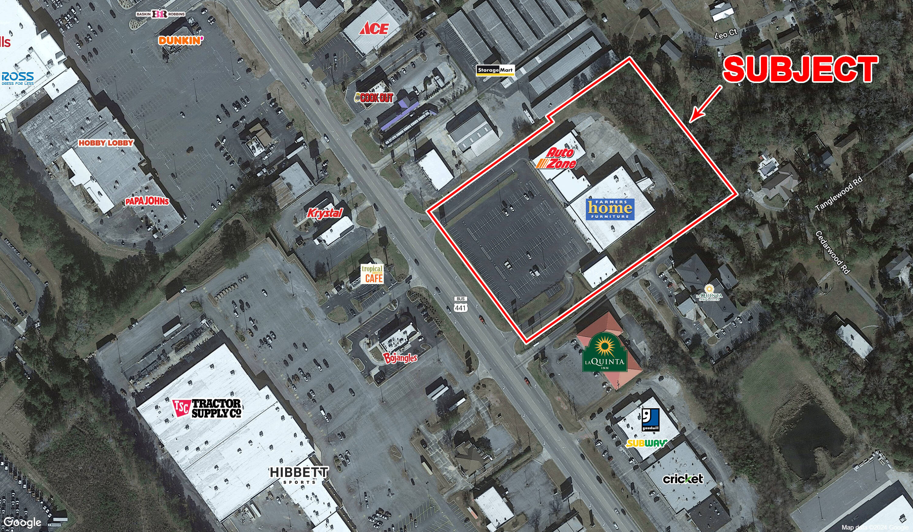 Retail and office suites available in high-traffic Milledgeville plaza.