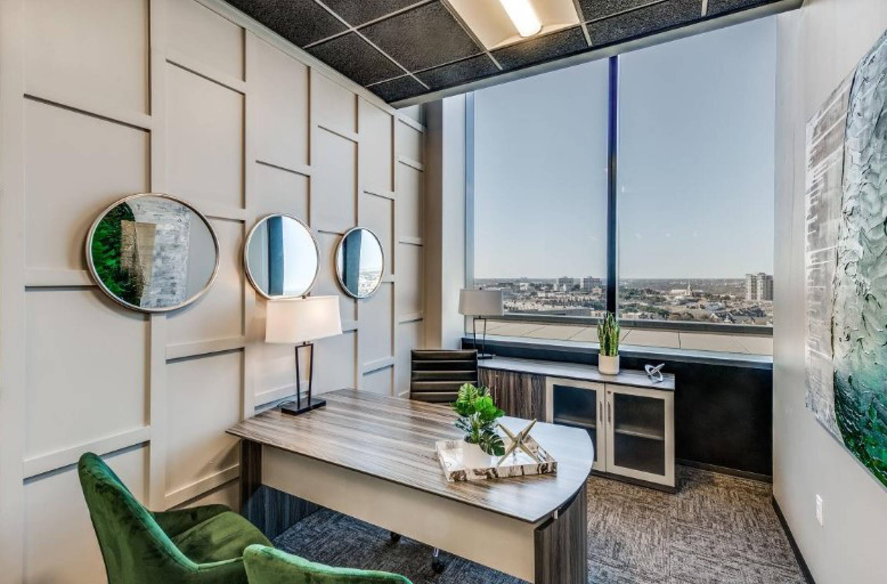 Fully-furnished office space with shared amenities and utilities included.