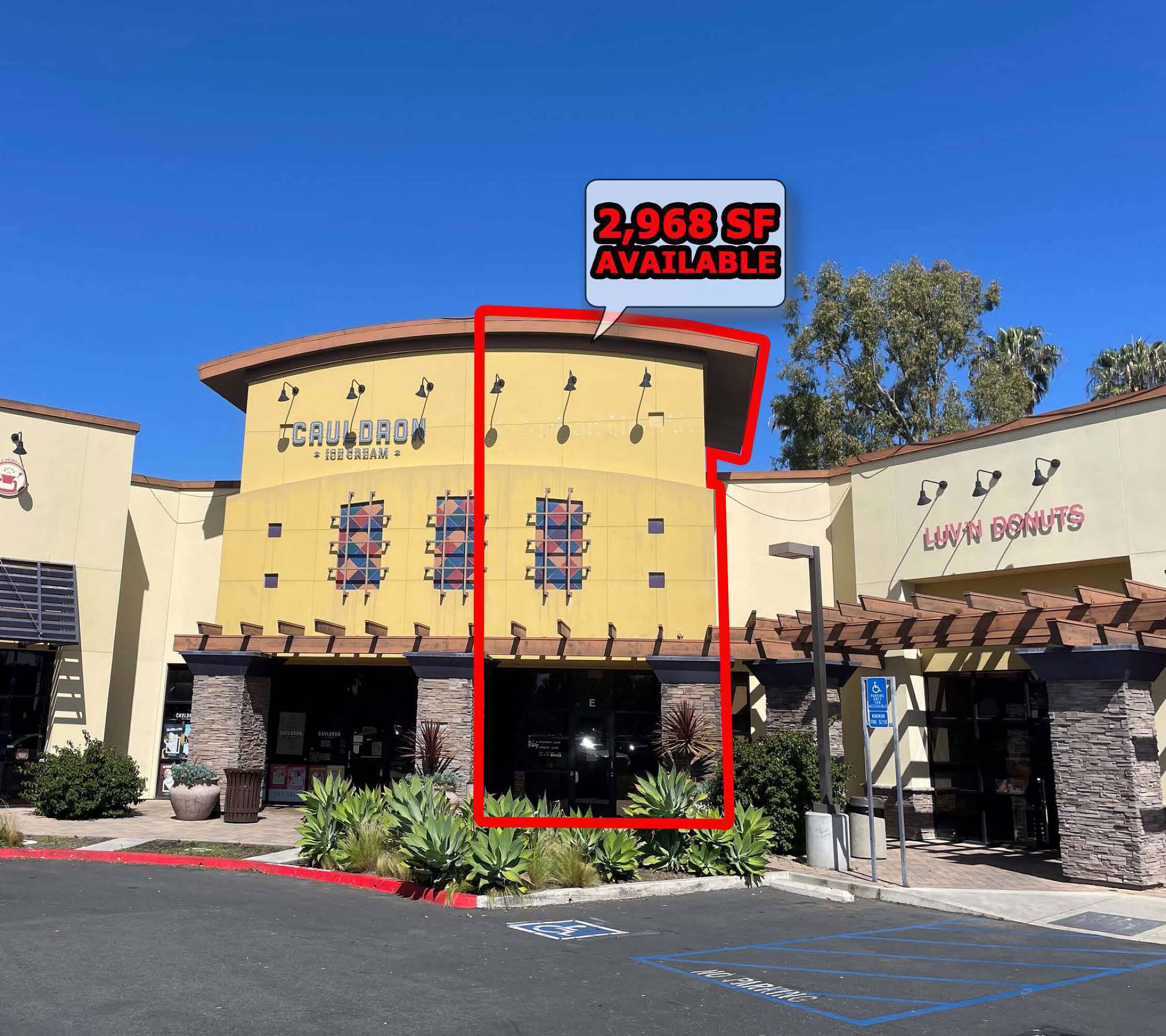 Available for lease are a 2,968-square-foot retail or medical space and a 1,731-square-foot retail space. The property is located near South Coast Plaza, at the corner of MacArthur Boulevard and Plaza Drive, with a daily traffic count exceeding 34,000 vehicles.
