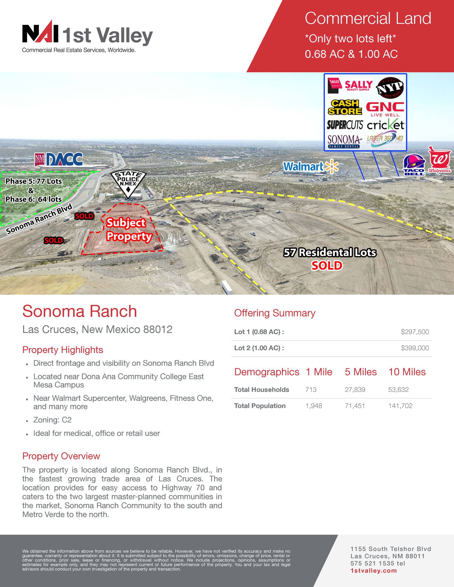 The property is situated along Sonoma Ranch Blvd. in the fastest-growing trade area of Las Cruces. Its location facilitates convenient access to Highway 70 and serves the Sonoma Ranch Community to the south and Metro Verde to the north.