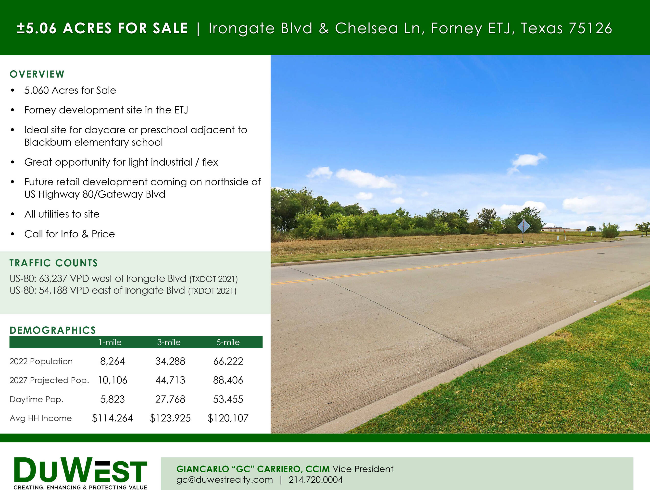 5.060-acre site suitable for daycare, light industrial, or flex space.