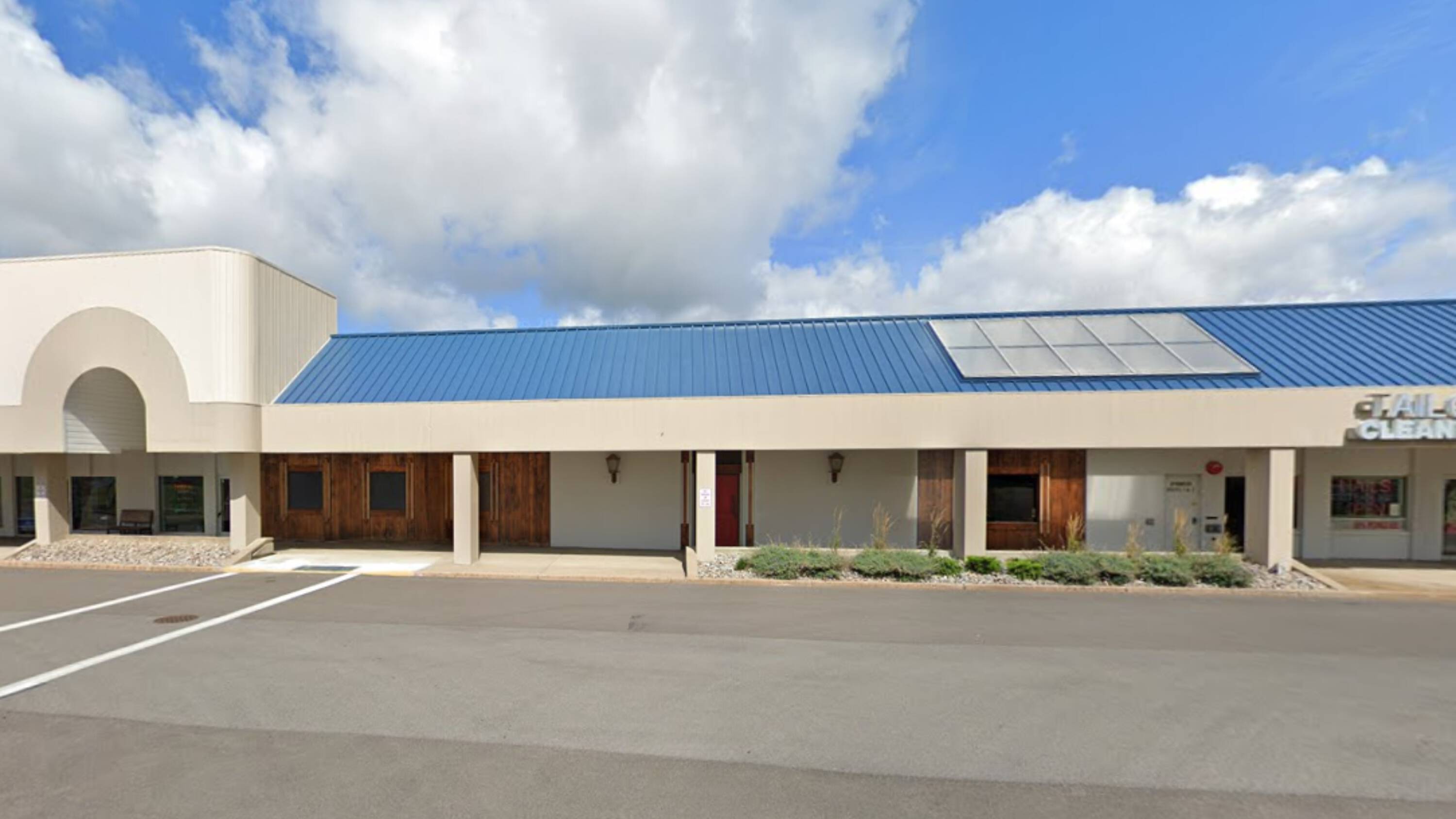 Neighborhood shopping center with spaces for lease.