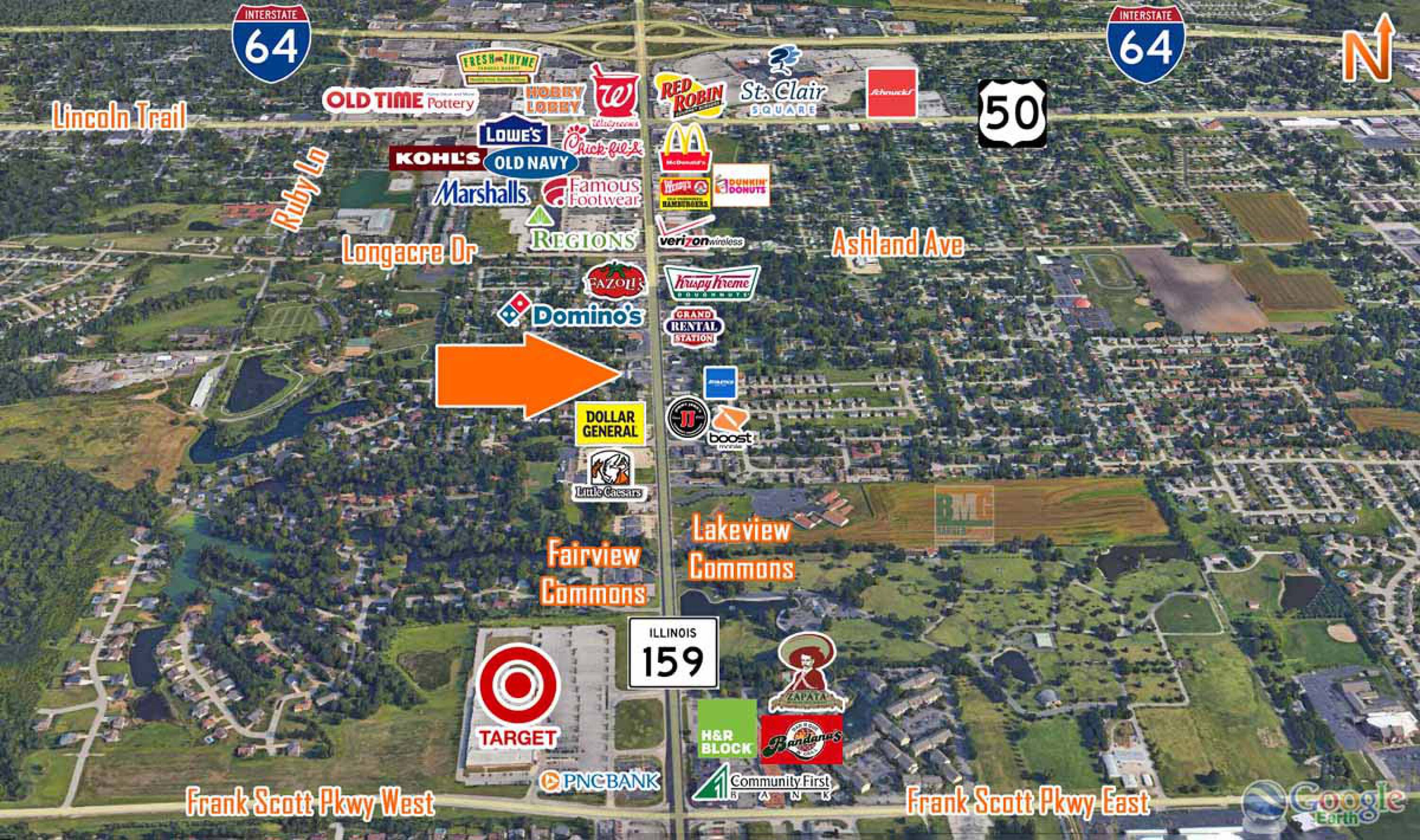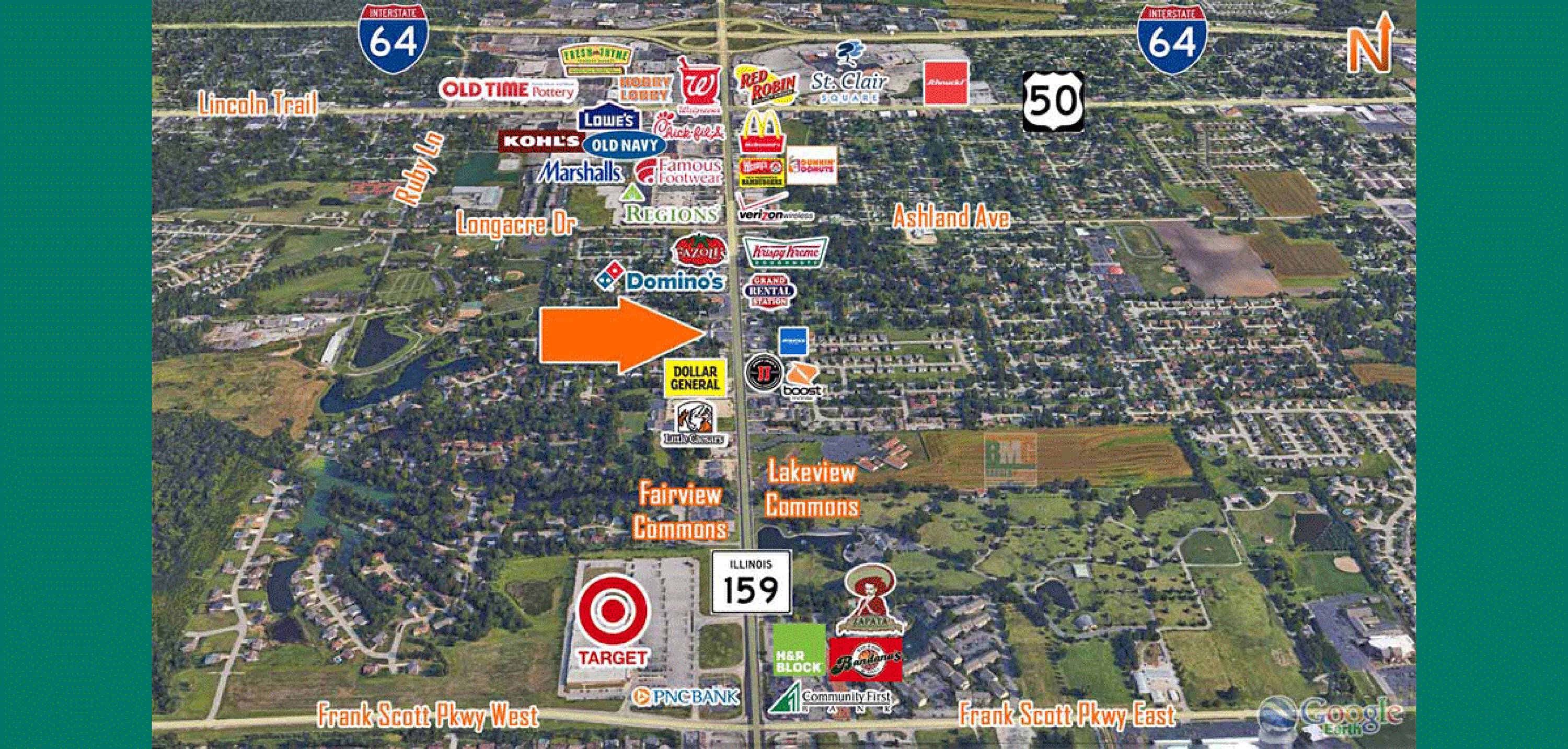 This property features: 2.09 acre redevelopment site; Boasting 382' of frontage on North Illinois (IL‑159); Located south of St. Clair Square