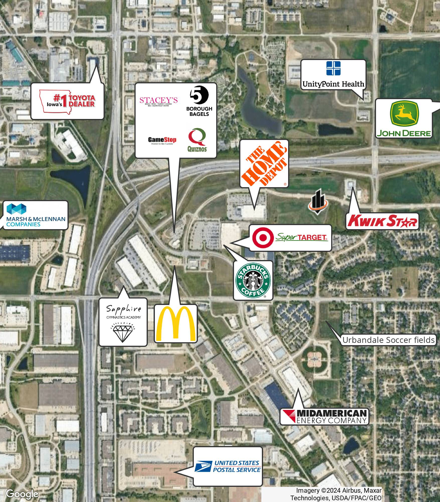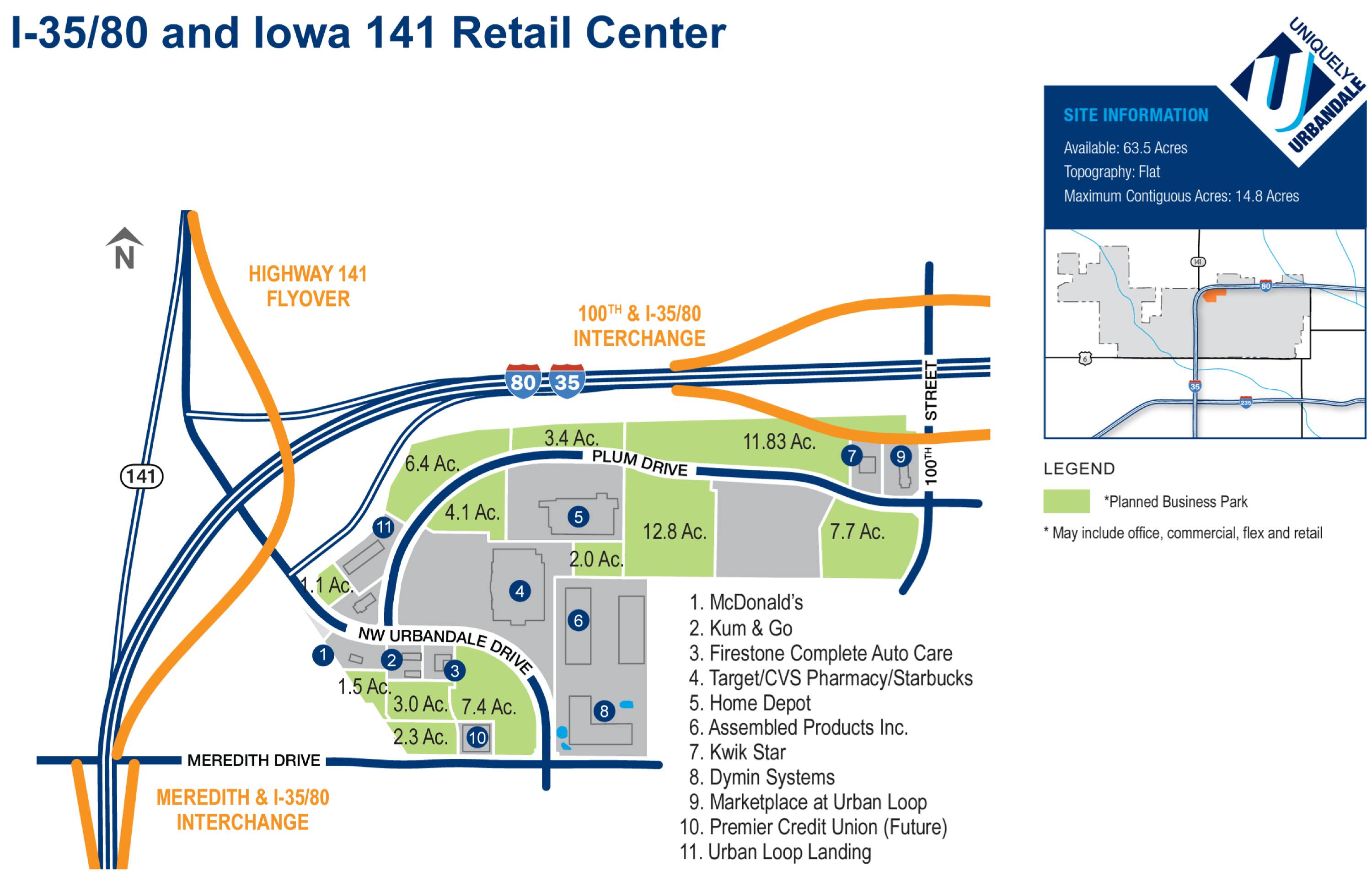 This property features: Located within Urbandale's "Urban Loop" economic development area.; High visibility and accessibility due to location along Interstate Highway 35/80.; Proximity to major retailers like Super Target and Home Depot.