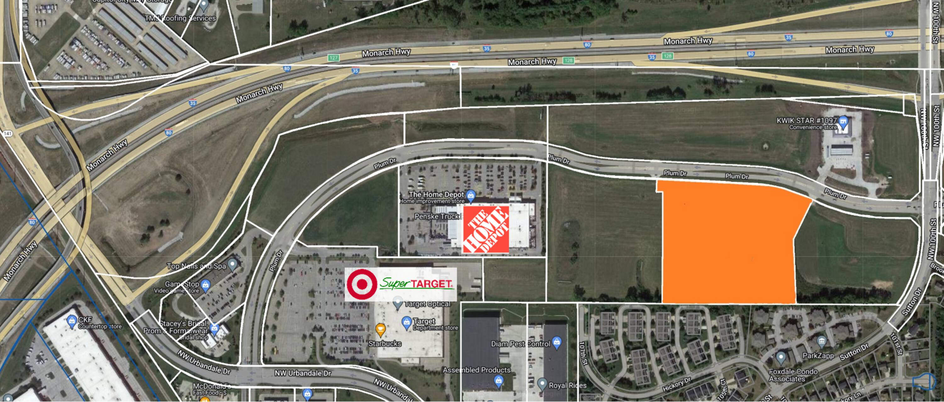 This commercial land is located within Urbandale's "Urban Loop" development, a four-square-mile economic development area connected by six miles of Interstate Highway 35/80 between Merle Hay Road and Hickman Road. The site is positioned among notable retailers including Super Target, Home Depot, McDonalds, and Stacey's Bridal, Prom & Formalwear.