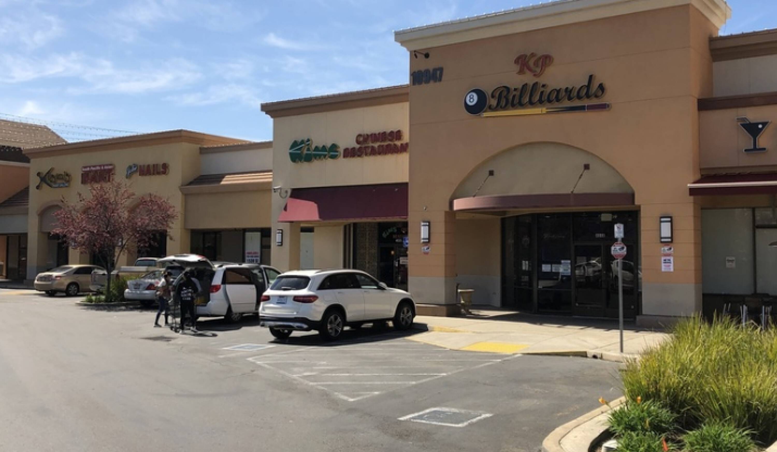 Neighborhood shopping center with diverse retail and food options.