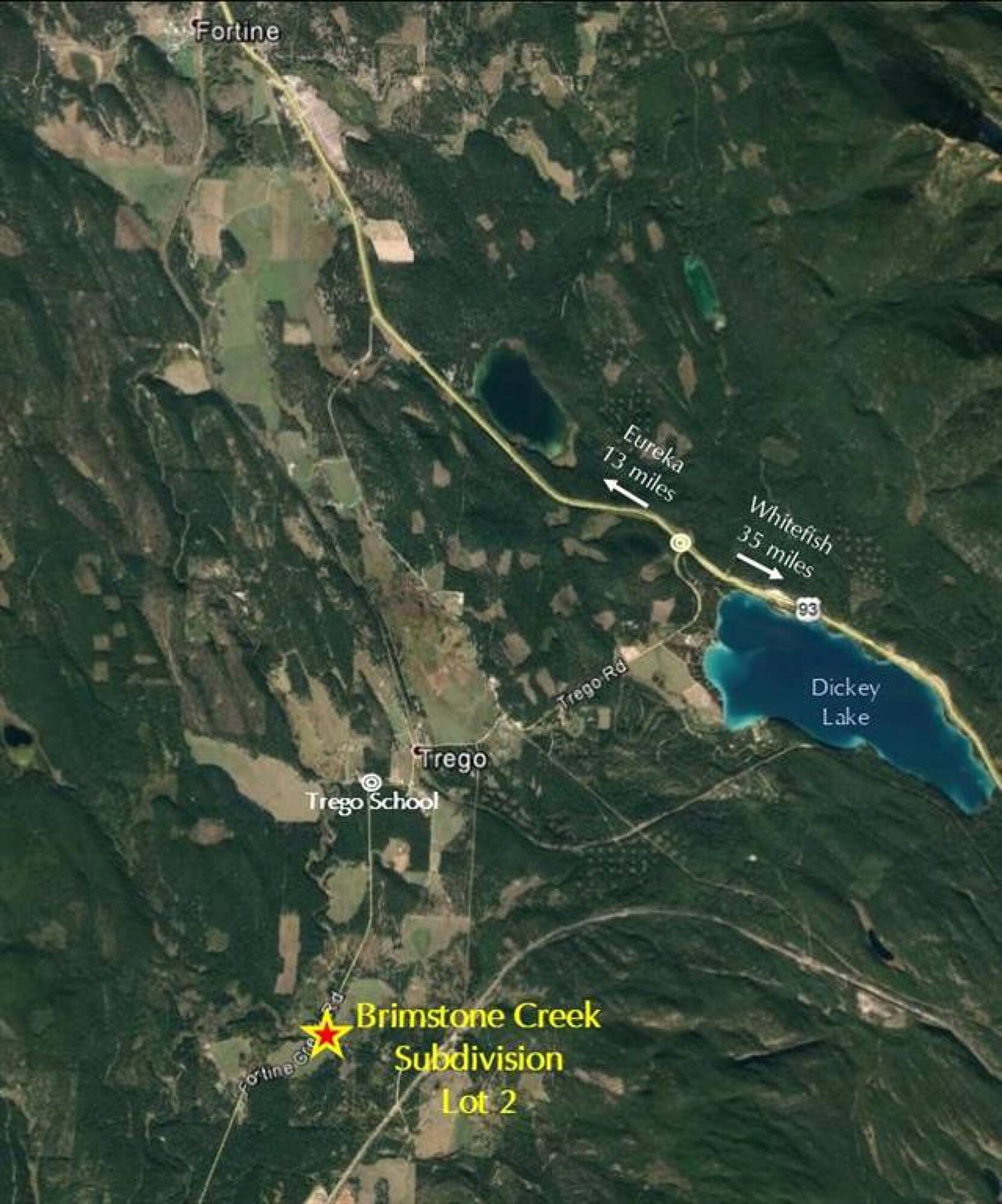The property is located at Lot 2 Brimstone Creek Road Trego, MT.