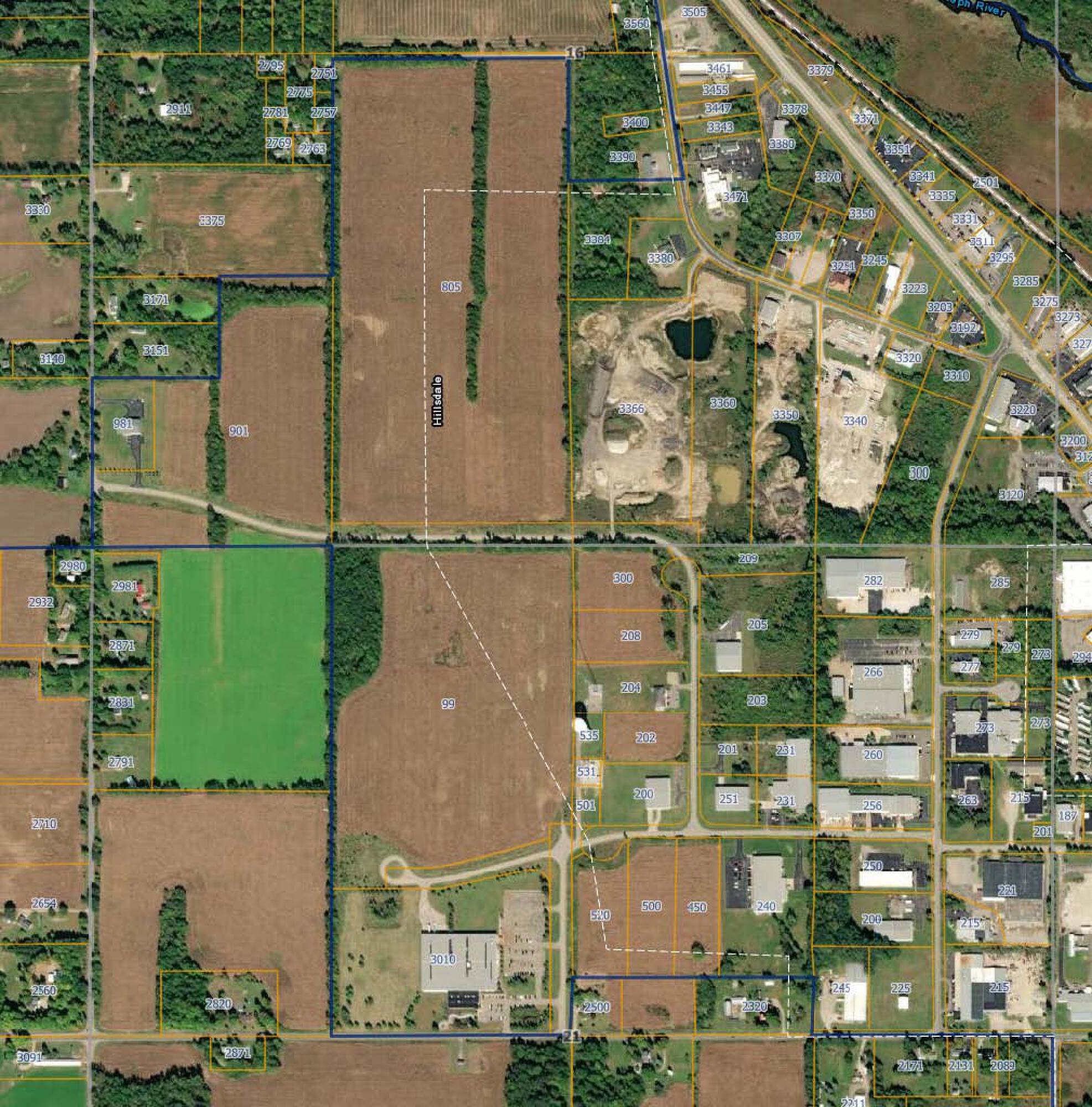 Industrial zoned land with utilities, near highways and airport.