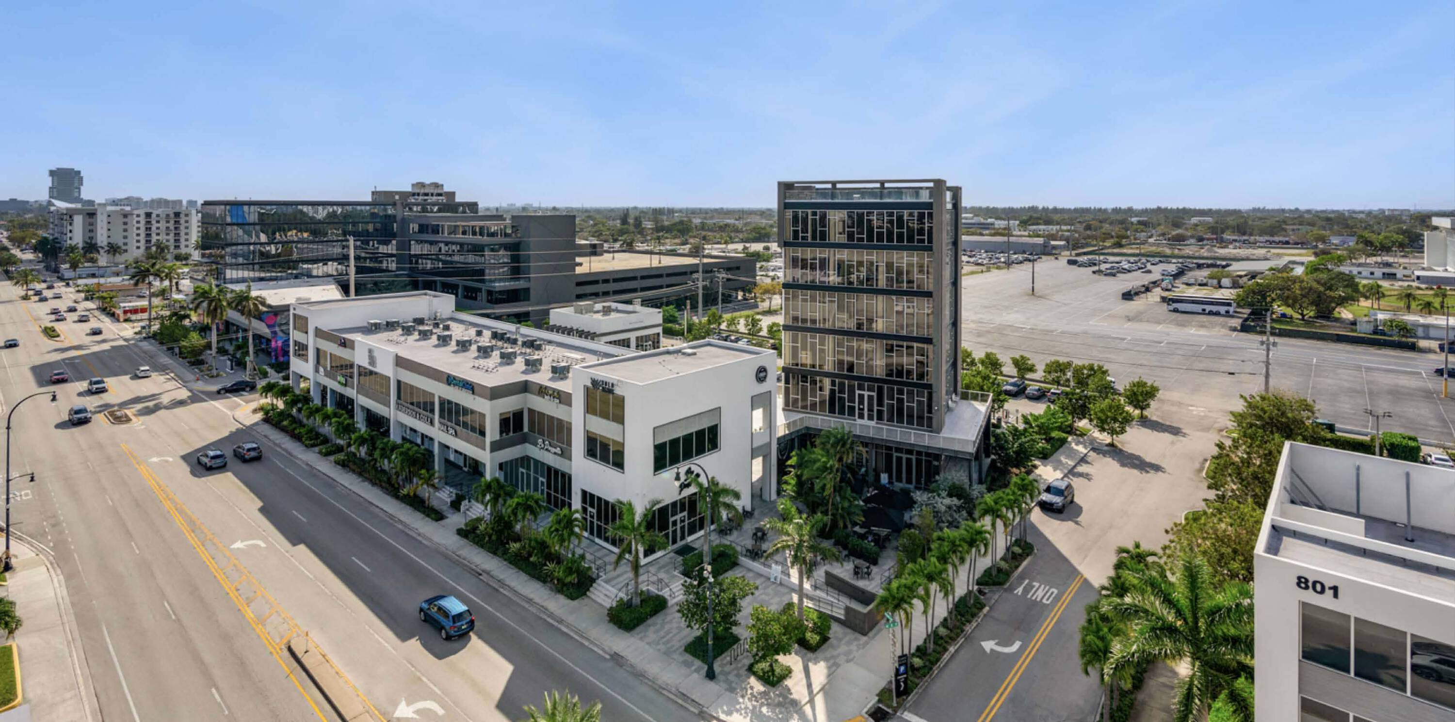 Vibrant mixed-use property with dining, entertainment, and professional services.