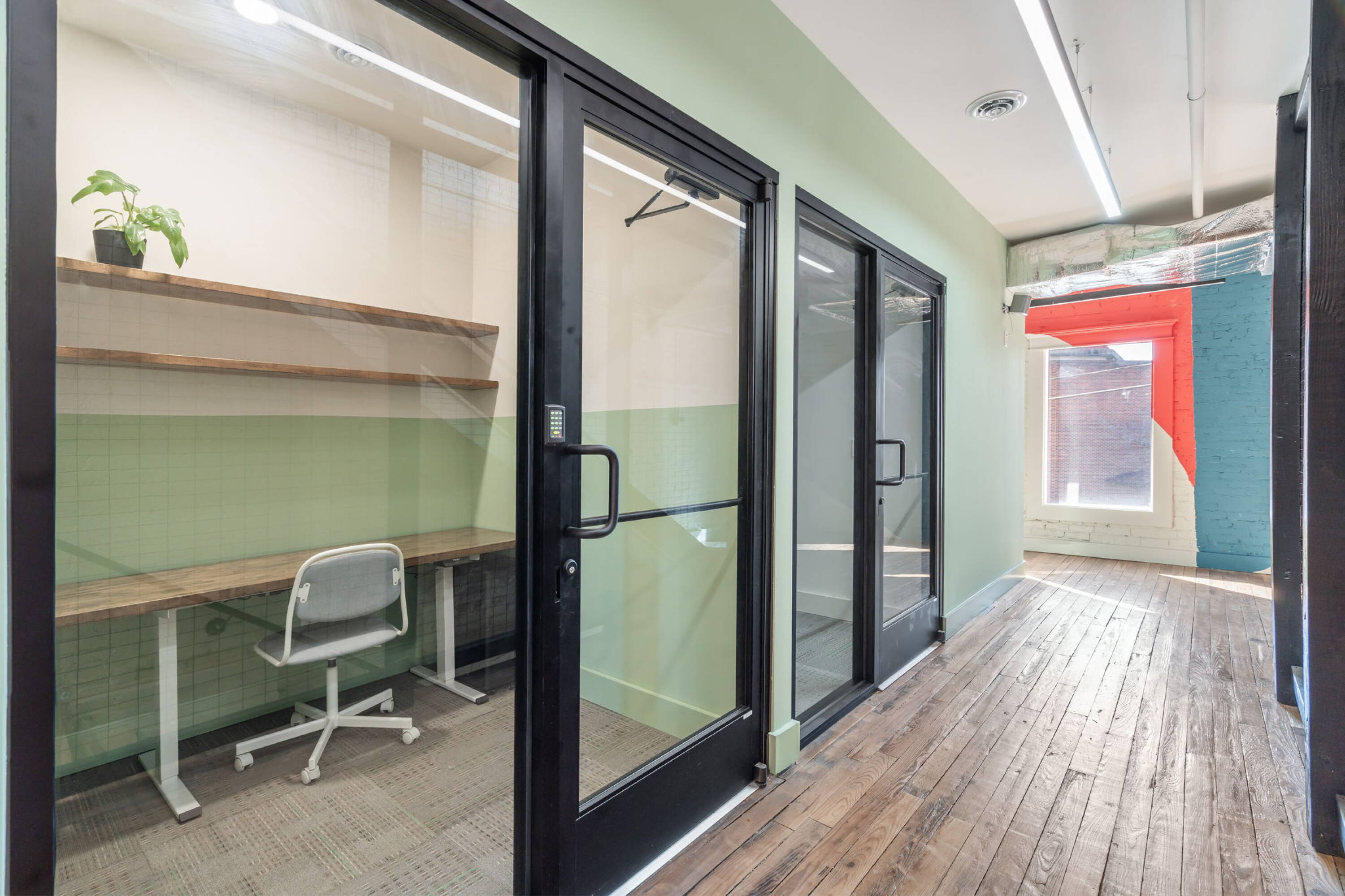 This full-service, all-inclusive office space offers a collaborative co-working environment. It includes Wi-Fi, utilities, access to shared kitchen and bathrooms, a conference room, and an event space. The workspace provides 24/7 access. An on-site Airbnb is available for visiting friends, family, clients, or coworkers. The property is located within walking distance of restaurants, a brewery, and grocery stores.